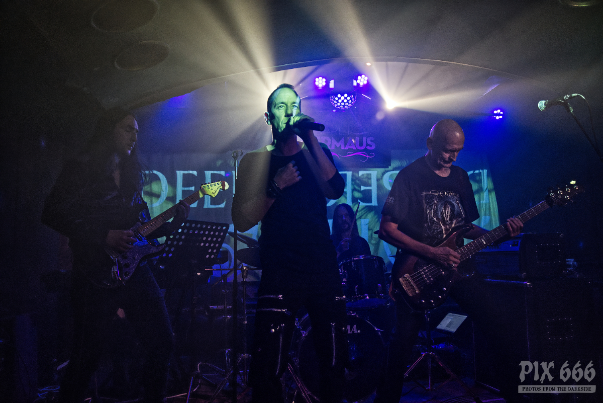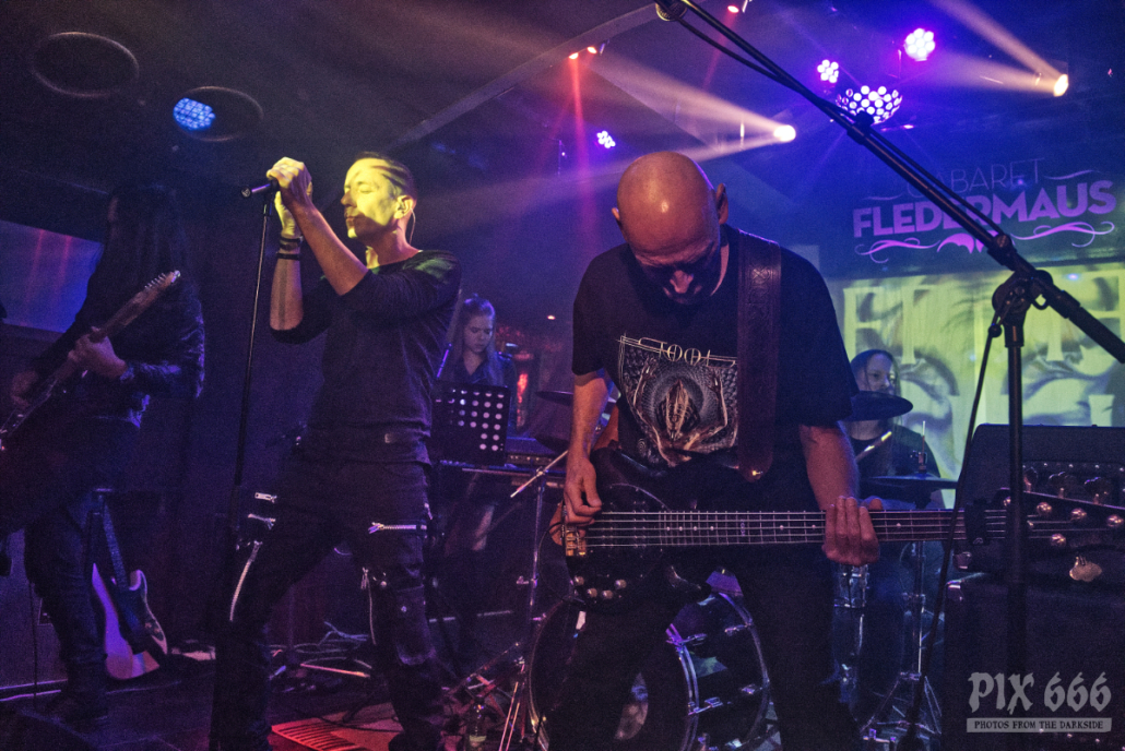 Der Auftritt der beliebten niederösterreichischen Band Deeper You wurde dann fast zu einem ‚Midnight Special‘ – die Show begann 22.45 Uhr mit einem Intro. Die Band wird immer wieder gern von Szenegrößen als Supportband auserwählt, so spielten sie im vergangenen Oktober in der ausverkauften ((Szene)) als Einheizer für Diary Of Dreams – in diesem Jahr im Dezember werden sie für die italienische Kultband Kirlian Camera den Abend im Replugged eröffnen -doch heute Abend gehörte die Bühne im Cabaret Fledermaus ganz allein Deeper You.