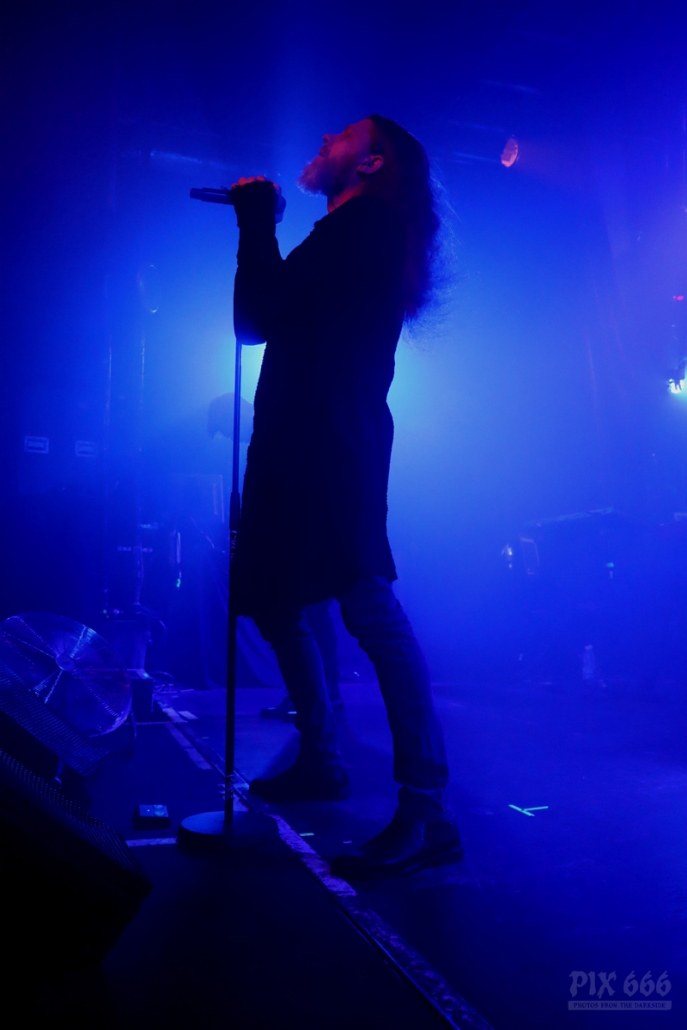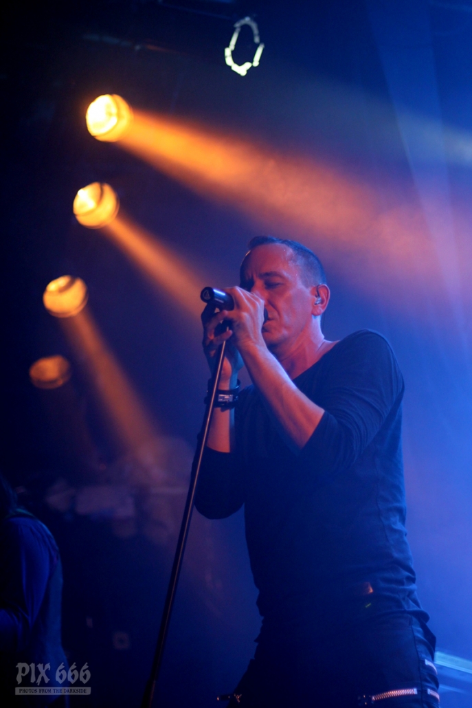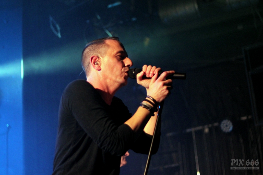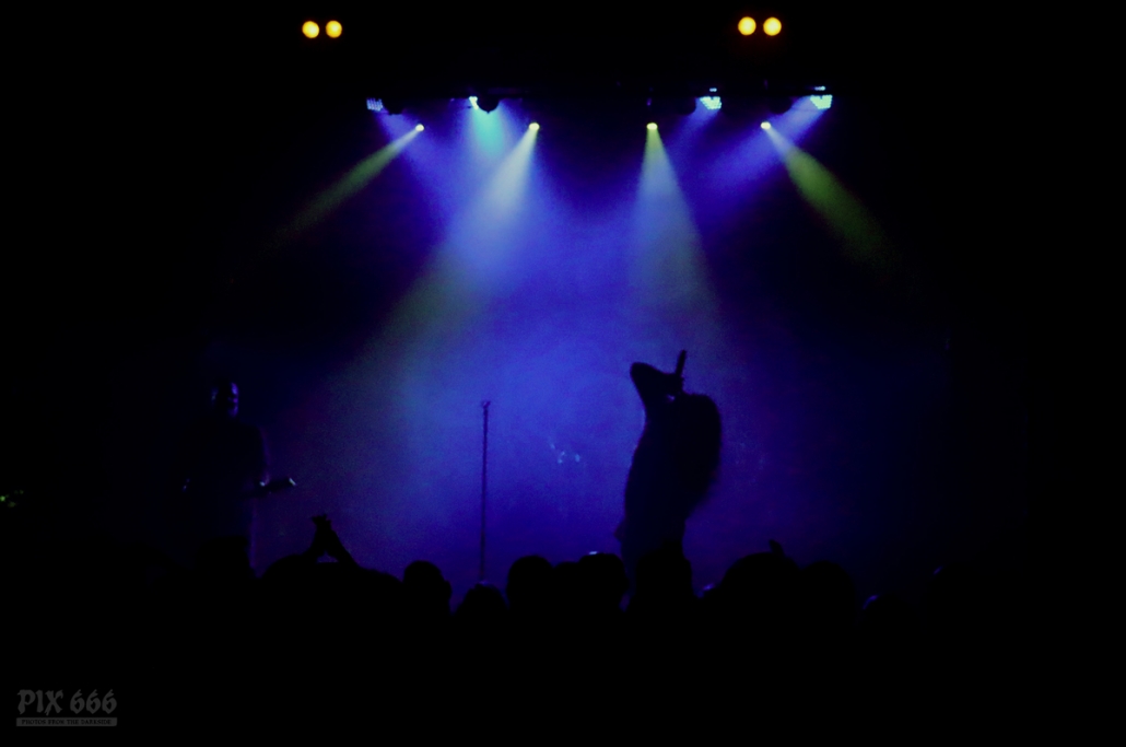 Später gab es ein paar Scherze über den vielen Nebel auf der Bühne, aber ich glaube Diary Of Dreams haben es nicht annähernd nötig, sich hinter einer Nebelwand zu verstecken, ganz im Gegenteil. Aber irgendwie passte das Bühnenbild genau zum heutigen Wetter in Wien. Bei ‚The Curse‘ ging dann wieder richtig die Post ab – „Noch ein paar Hände mehr – Ihr könnt das“.