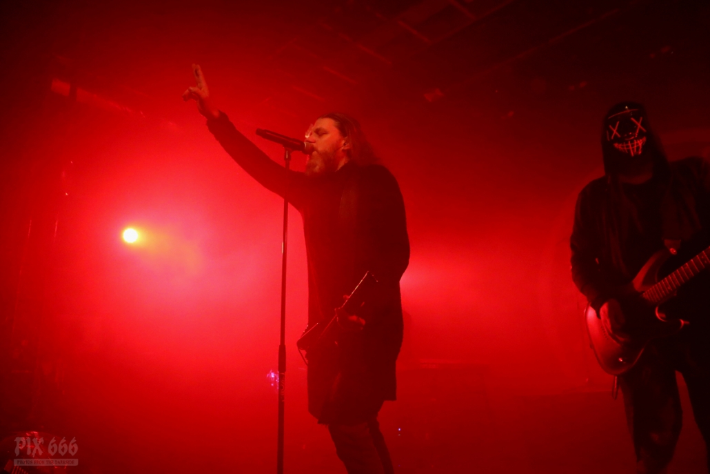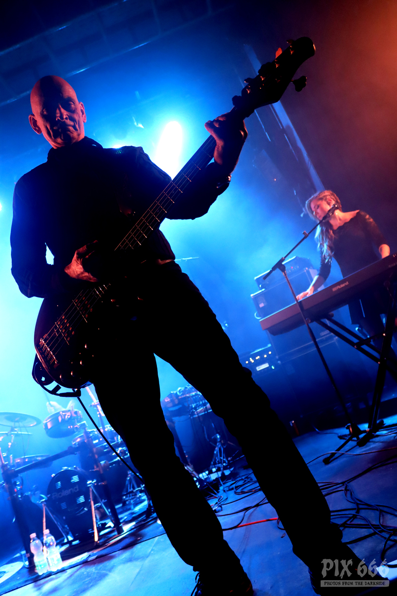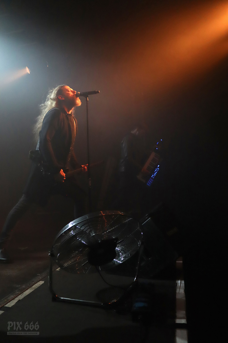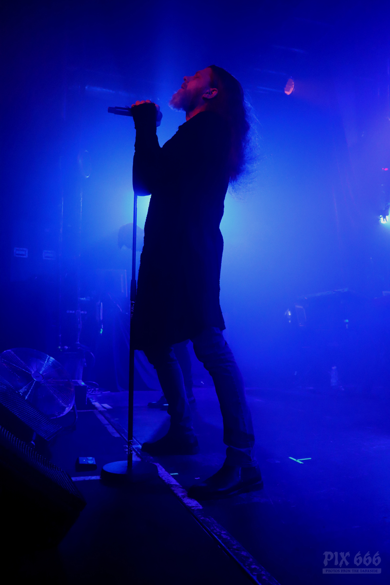 Dann gab es noch eine Ansprache von Adrian über die Situation bei Diary Of Dreams, aber auch eine Situation, die viele sogenannte ‚Kleine‘ Bands betrifft – eine Bitte, Tickets im Vorverkauf zu kaufen und somit die Bands zu unterstützen. Auch wir von Pix666 haben es in diesem Jahr schon erlebt, dass geplante Konzerte wieder abgesagt worden sind – aber nicht mehr aufgrund von Corona-Beschränkungen, sondern weil kaum jemand Tickets gekauft hat. Ich selbst glaube, wir befinden uns da gerade in einem bösen Teufelskreis – viele Leute gehen 10 mal zu Rammstein, haben schon eine Handvoll Tickets für Depeche Mode vorbestellt und vergessen dabei die Basis, die kleinen Bands, bei denen man hautnah am Geschehen dran ist und hundert mal mehr Spaß hat, als in einem Stadion, hundertfünfzig Meter entfernt von der Bühne. (so, das musste heute mal sein)