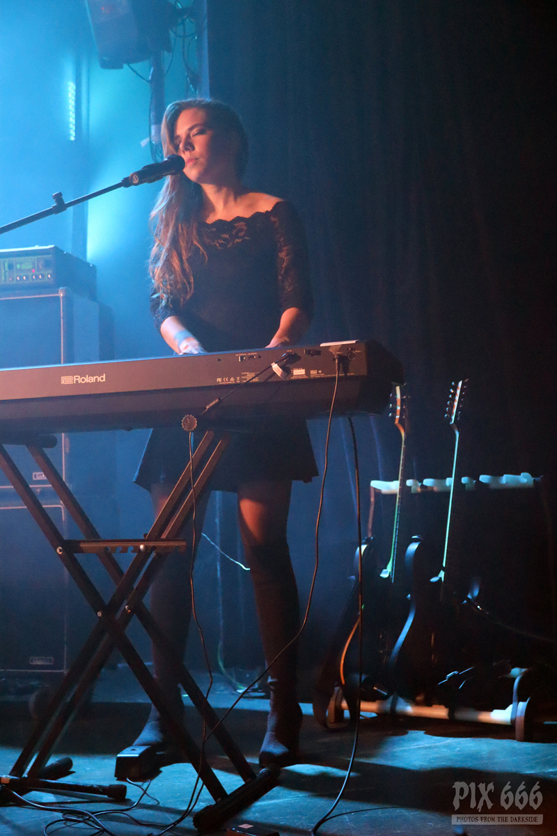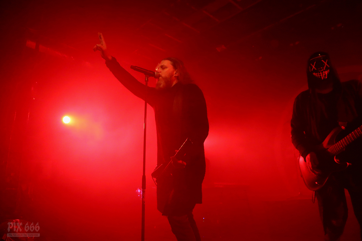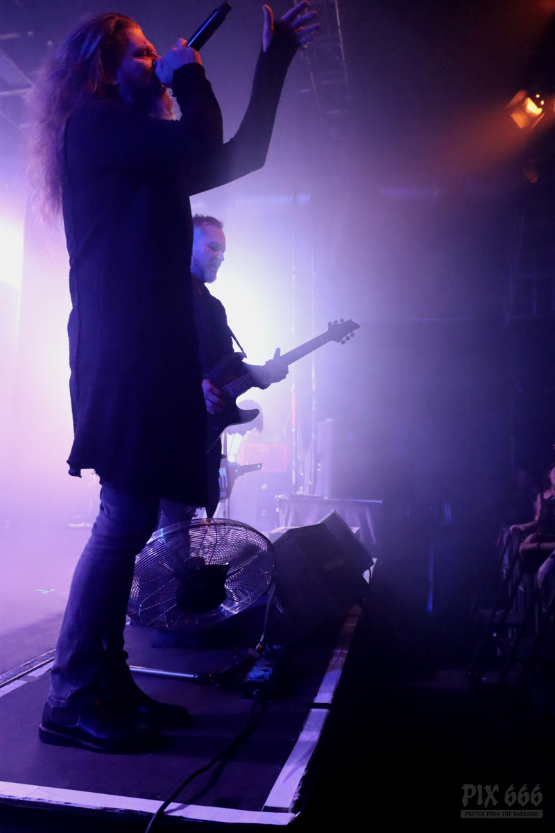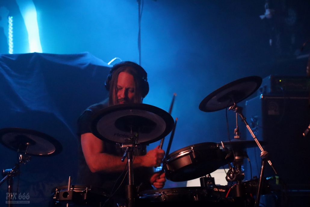 Dann gab es noch eine Ansprache von Adrian über die Situation bei Diary Of Dreams, aber auch eine Situation, die viele sogenannte ‚Kleine‘ Bands betrifft – eine Bitte, Tickets im Vorverkauf zu kaufen und somit die Bands zu unterstützen. Auch wir von Pix666 haben es in diesem Jahr schon erlebt, dass geplante Konzerte wieder abgesagt worden sind – aber nicht mehr aufgrund von Corona-Beschränkungen, sondern weil kaum jemand Tickets gekauft hat. Ich selbst glaube, wir befinden uns da gerade in einem bösen Teufelskreis – viele Leute gehen 10 mal zu Rammstein, haben schon eine Handvoll Tickets für Depeche Mode vorbestellt und vergessen dabei die Basis, die kleinen Bands, bei denen man hautnah am Geschehen dran ist und hundert mal mehr Spaß hat, als in einem Stadion, hundertfünfzig Meter entfernt von der Bühne. (so, das musste heute mal sein)