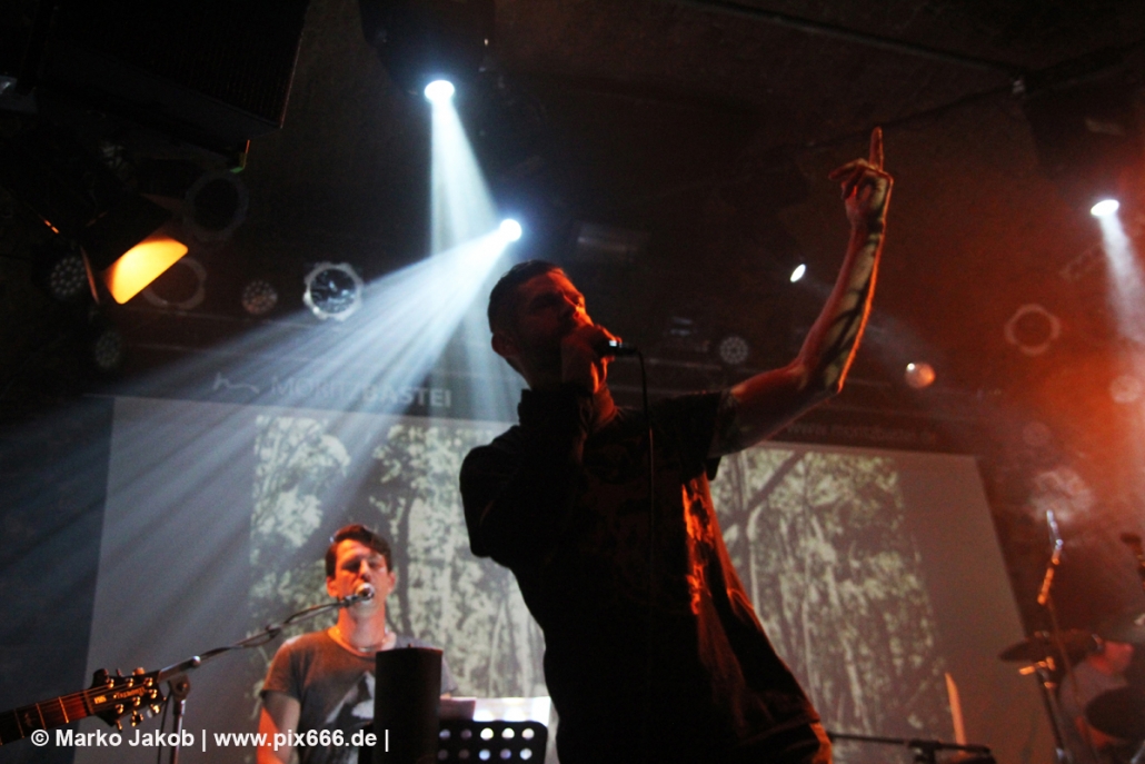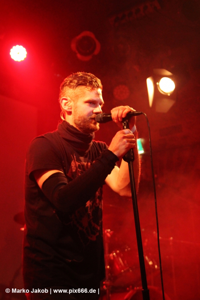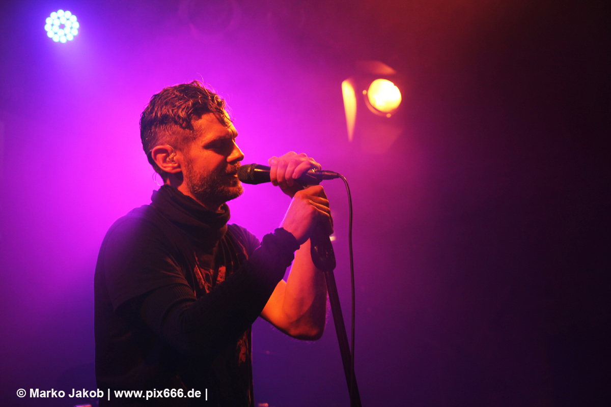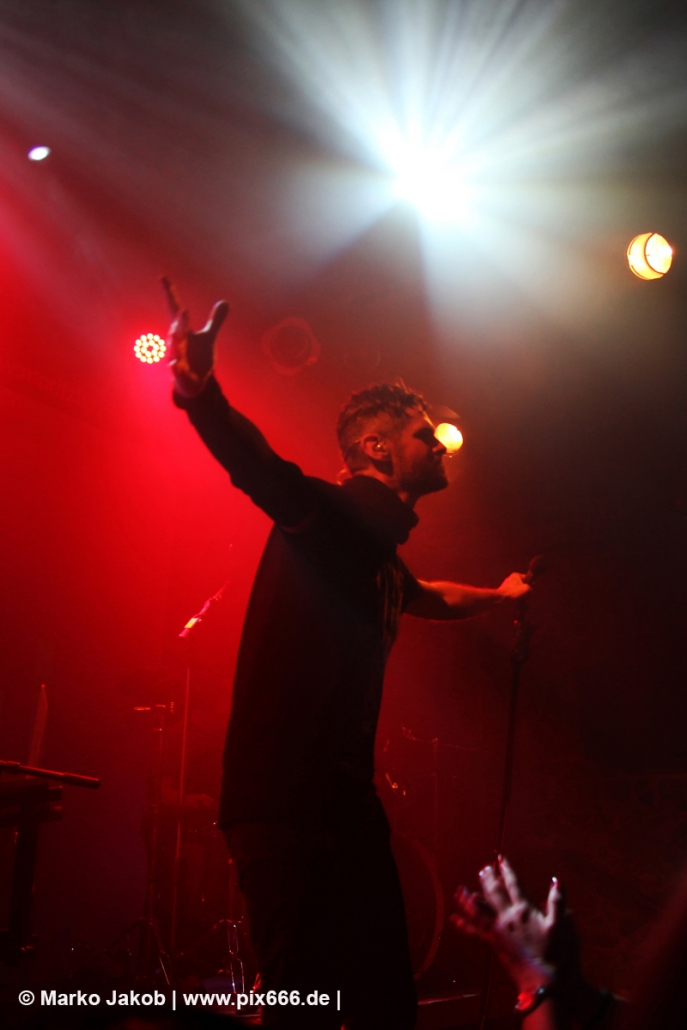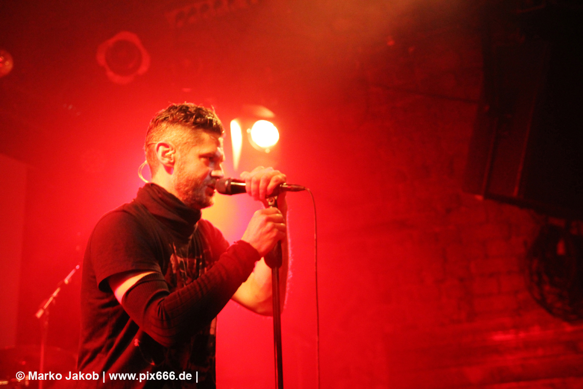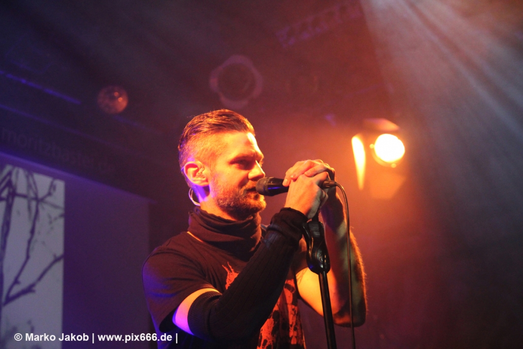 Torben erzählte dann, dass sich die Band vor Konzerten öfter mal zusammensetzt, und überlegt, welche Songs, die man selten oder gar nicht live gespielt hat, mit in das Set genommen werden könnten. Diesmal erhielten sie bei der Auswahl Hilfe von Vasi Vallis von Frozen Plasma, der sagte, ‚The Convenient Of Being Absent‘ ist euer bester Song. Thorben widmete den Song vom Album ‚The Art of Creating Confusing Spirits‘ aus dem Jahre 2002 seinem vor kurzem verstorbenen Hund. Das war ein wirklich trauriger Moment an diesem Konzertabend. Es ging mit einem weiteren ruhigen Song weiter – ‚Summit‘ aus dem Jahr 2013. Es folgten später mit ‚Exit The Grey‘ und ‚Synthesize Me‘ wieder schnellere Stücke und man hatte das Gefühl, es finde schon die Aftershow Disco statt. Die Fans in der prall gefüllten Moritzbastei tanzten fast alle pausenlos, soweit dies der Platz zugelassen hat. Nach dem Song ‚Off’ vom aktuellen Album war dann das reguläre Set vorbei. Der Jubel des Publikums war unbeschreiblich. Die Stimmung am Vortag in Nürnberg soll schon toll gewesen sein, aber Leipzig war nochmal eine Liga besser – das grenzte schon fast an den Bereich ‚mehr geht nicht‘.