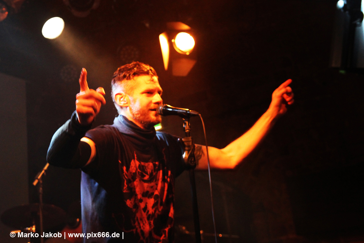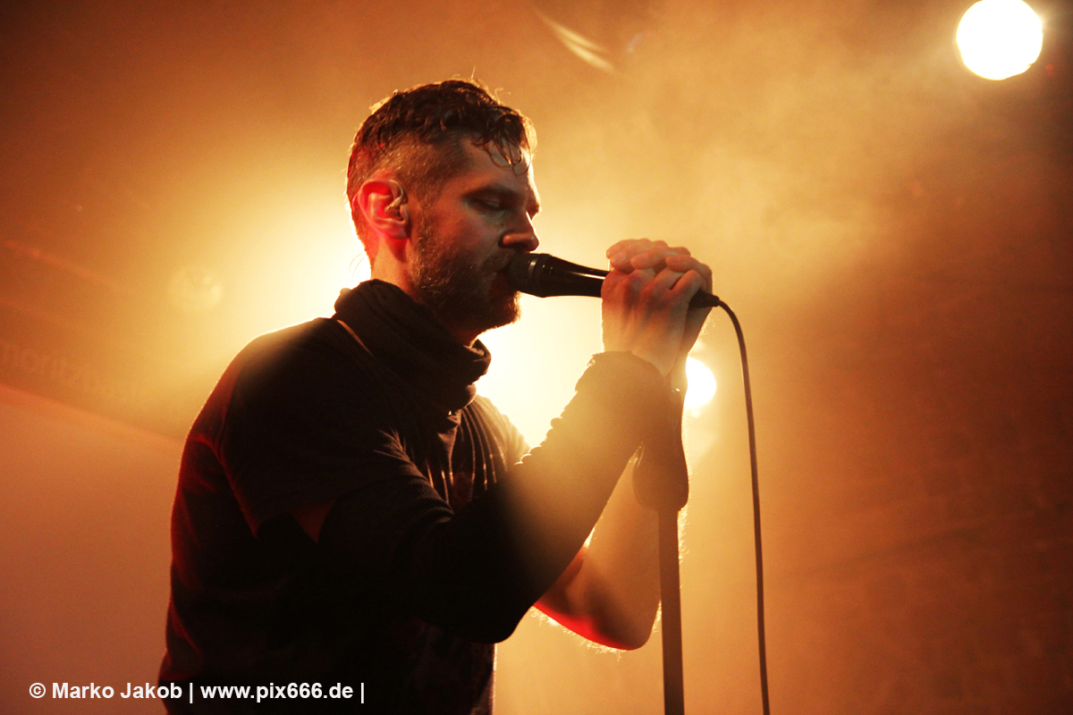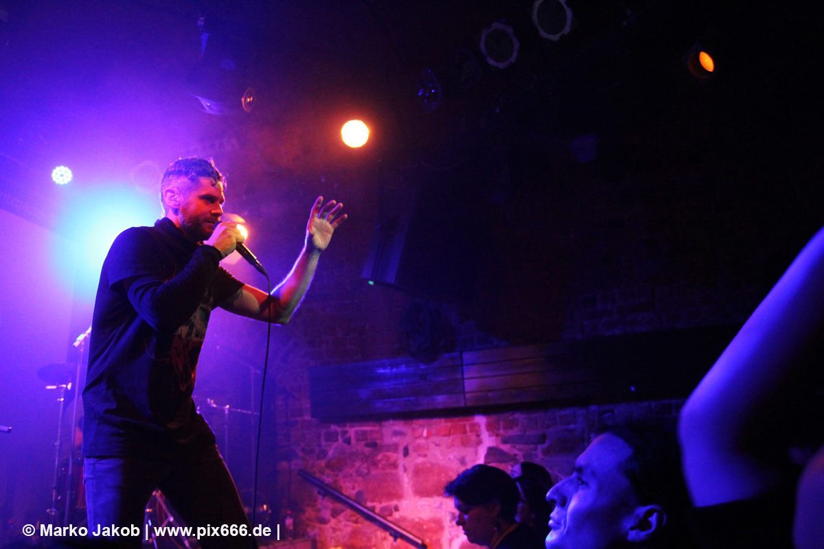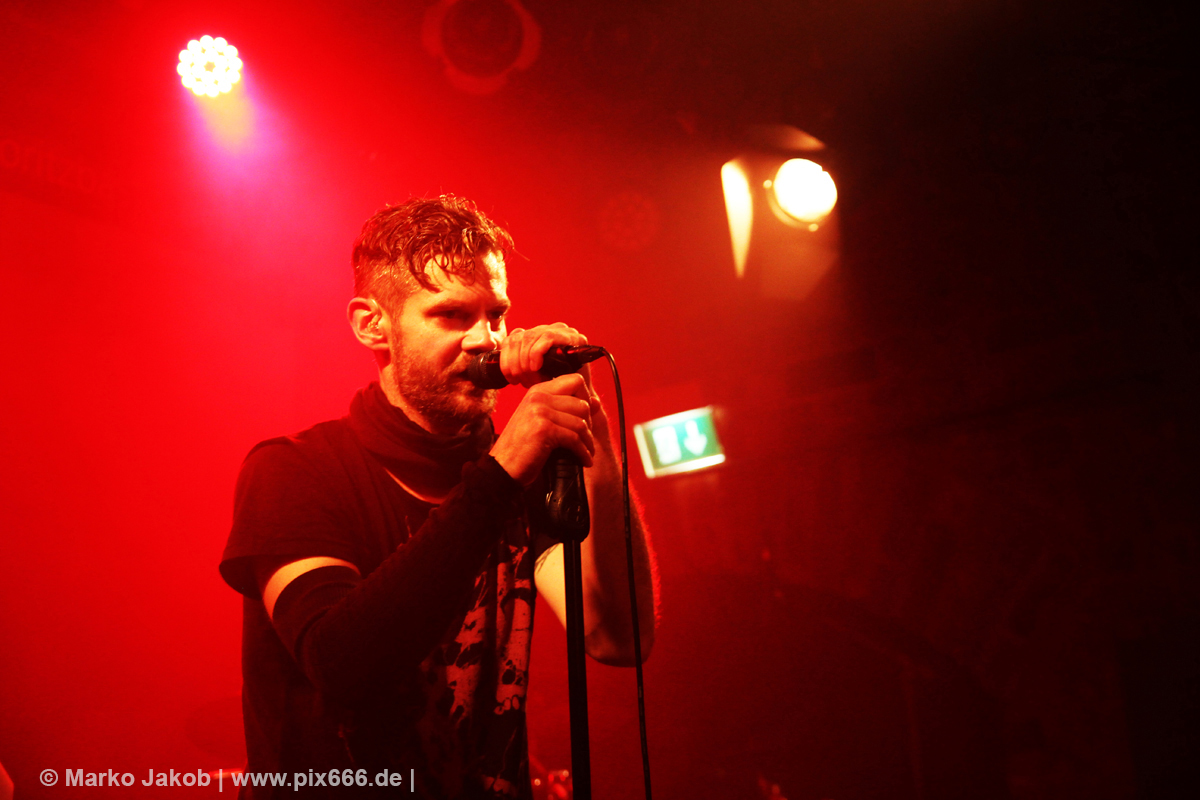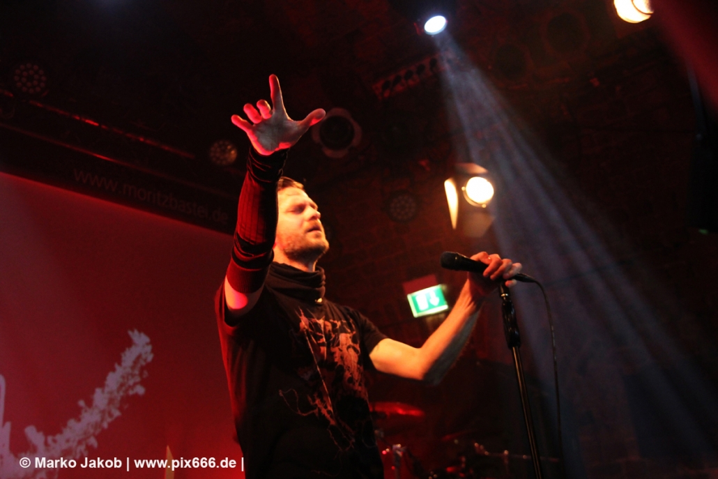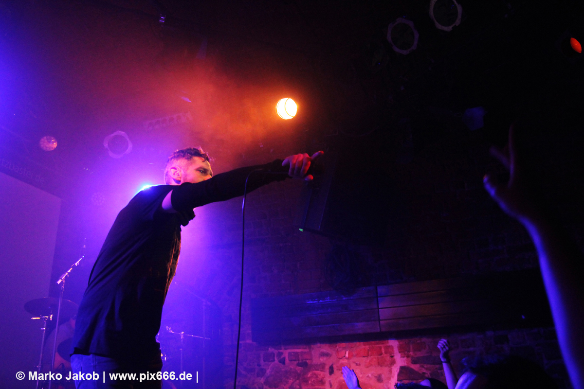 Torben erzählte dann, dass sich die Band vor Konzerten öfter mal zusammensetzt, und überlegt, welche Songs, die man selten oder gar nicht live gespielt hat, mit in das Set genommen werden könnten. Diesmal erhielten sie bei der Auswahl Hilfe von Vasi Vallis von Frozen Plasma, der sagte, ‚The Convenient Of Being Absent‘ ist euer bester Song. Thorben widmete den Song vom Album ‚The Art of Creating Confusing Spirits‘ aus dem Jahre 2002 seinem vor kurzem verstorbenen Hund. Das war ein wirklich trauriger Moment an diesem Konzertabend. Es ging mit einem weiteren ruhigen Song weiter – ‚Summit‘ aus dem Jahr 2013. Es folgten später mit ‚Exit The Grey‘ und ‚Synthesize Me‘ wieder schnellere Stücke und man hatte das Gefühl, es finde schon die Aftershow Disco statt. Die Fans in der prall gefüllten Moritzbastei tanzten fast alle pausenlos, soweit dies der Platz zugelassen hat. Nach dem Song ‚Off’ vom aktuellen Album war dann das reguläre Set vorbei. Der Jubel des Publikums war unbeschreiblich. Die Stimmung am Vortag in Nürnberg soll schon toll gewesen sein, aber Leipzig war nochmal eine Liga besser – das grenzte schon fast an den Bereich ‚mehr geht nicht‘.