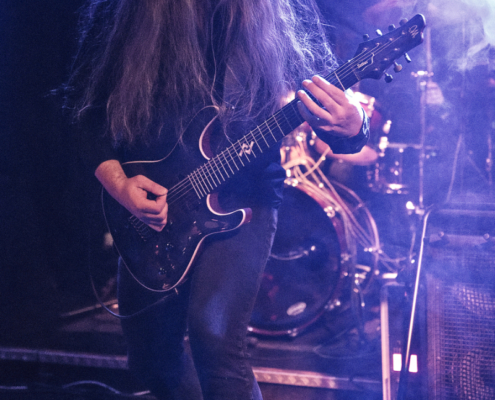 „Die nächste Nummer ist ein bisschen gemütlicher am Anfang – aber nur am Anfang“ – und so war es auch, Zeit zum Ausruhen gab es nicht wirklich. Als nächstes verliehen Nordblut einem deutschen Popschlager Megahit den nötigen Pep – lasst euch mal überraschen, vielleicht wird der Song ja bald veröffentlicht. Die Coverversion kam auf jeden Fall gut an, zumindest wurde damit niemand aus dem Club verscheucht. Weiter ging es mit eigenen Songs – dazu wurde sich erstmal gegenseitig zugeprostet „Hoch die Biere ‚Auf die Ahnen‘“. Eine Zugabe gab es dann auch noch und alle anwesenden erlebten eine unterhaltsame Dreiviertelstunde. Das war Spaß am Dienstag mit geilem Metal, Nebel, düsterem Licht und ein bisschen Humor – so macht das Sinn. „Vielen Dank – wir waren Nordblut und wir treffen uns dann am Merch.“ Wer mehr von Nordblut sehen mag, schaut einfach mal auf der Facebook Seite der Band nach den Tourdaten.