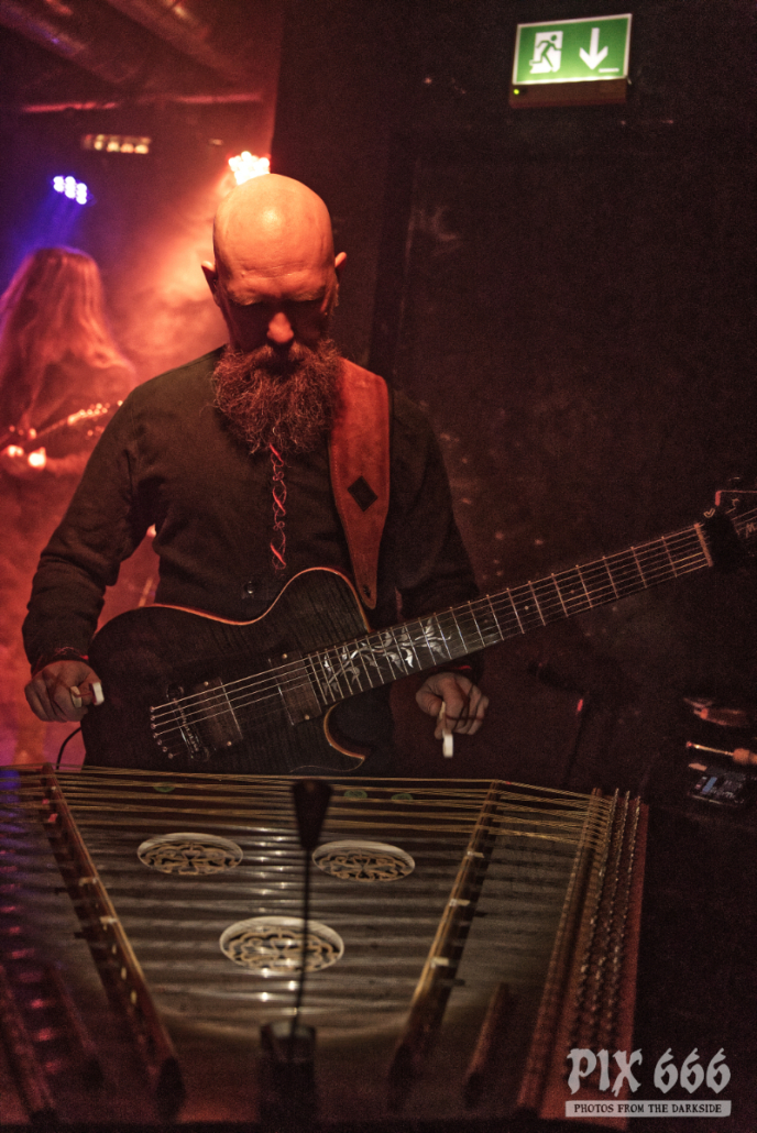 „Wir sind aus Rumänien – aus Siebenbürgen“ begrüßten sie die Fans im sehr gut gefüllten Club. Dordeduh legten mit ‚Timpul întâilor‘ von ihrem aktuellen Album los und bedankten sich danach für den heftigen Applaus auf Deutsch. Die Band aus Timisoara hatte das Escape fest im Griff und sorgte mit ihrem sehr atmosphärischen Sound für eine tolle Stimmung. Die längeren Instrumentalpassagen wurden mit schönen Lichteffekten und Nebel visuell garniert. Ein außergewöhnliches Instrument hatten die Jungs auch dabei, ich hoffe, wir haben richtig recherchiert und es war ein Tambal. Dieses kam bei zwei der Songs zum Einsatz. Harte Riffs, Tempowechsel und eine kräftige Stimme – Dordeduh schmetterte den Wienern Song um Song um die Ohren – und es waren viele gekommen. Die Location war schätzungsweise zu 80% gefüllt – ein perfekter Rahmen für ein Konzert. Beim nächsten Song wurde der Raum wieder von den außergewöhnlich kraftvollen Drumschlägen von Andrei beschallt – der Drummer verwendete spezielle Drumsticks, die man sonst eher von einer Pauke kennt. „Danke fürs Kommen – das hat Spaß gemacht hier“ sagten die Rumänen dann zum Abschied, spielten aber zum Glück noch einen weiteren Titel. Nach dem finalen Song gab es dann einen ziemlich lauten und ausdauernden Applaus für eine super Show. „Danke, dass ihr den Abend mit uns verbracht habt – tschüss meine Freunde“ hiess es dann zum Abschied.