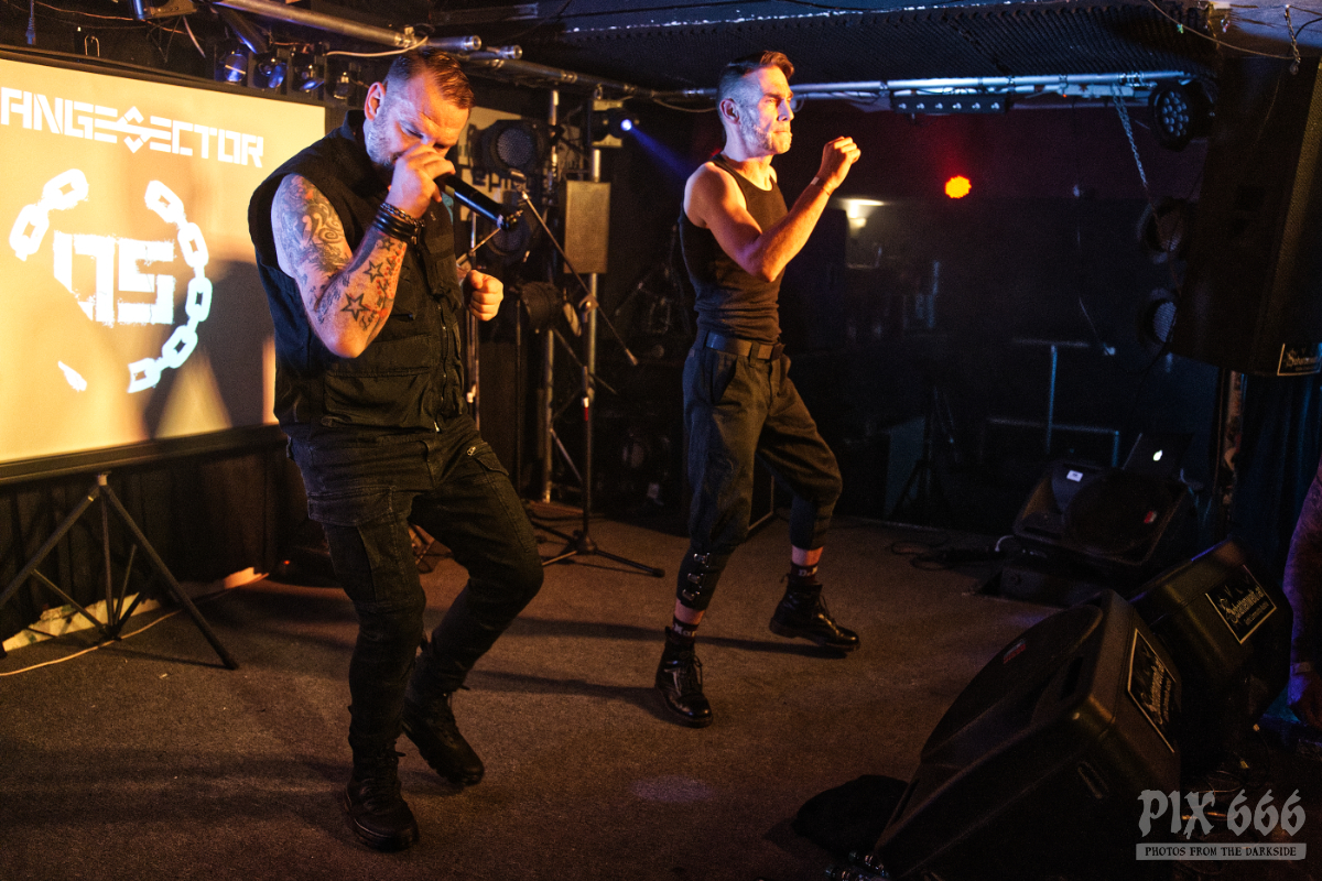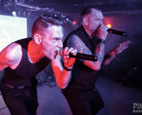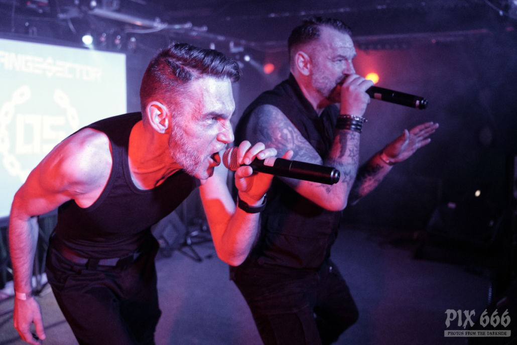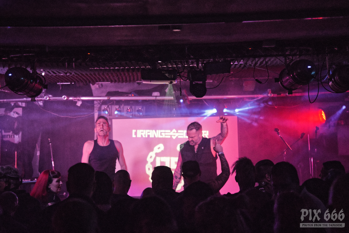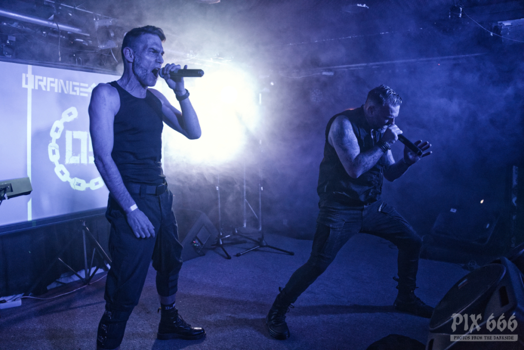 Nun war die Zeit für den Headliner gekommen – eines der EBM Urgesteine war nach Wien gekommen. Die deutsche Band Orange Sector, die die Geschichte des EBM seit über 30 Jahren selbst mitgeschrieben hat brauchte keine Anlaufzeit, um die Fans im Replugged auf Betriebstemperatur zu bringen. Nach wenigen Songs war das Publikum in den ersten Reihen dann sogar so wild, dass es zu einer Unterbrechung kommen musste. Keine Panik – verletzt wurde niemand, aber die Monitorbox wurde mitgerissen und der Stecker musste erst wieder fixiert werden. Nach der kurzen Pause ging es im gleichen Tempo weiter, die etwa 100 EBM Fans brachten die Location zum Wackeln und sorgten für eine einmalige Stimmung. Bei Orange Sector gab es quasi Tanzgarantie auf Rezept – da stand wirklich keiner mehr still und alle beteiligten sich an einer wahren Tanzorgie. Das war genau die Partystimmung, die das Festival zum Abschied verdient hatte. Und weiter ging es mit ‚Der Sturm‘ und es wurde fleißig weiter gestampft. ‚Tanzbefehl‘ hieß es als Nächstes – aber das mit dem Tanzen geschah hier in der Tat alles absolut freiwillig und mit totaler Hingabe. Dann verabschiedeten sich die Jungs: „Wien – Vielen Dank ,danke schön“. Aber nach dem die Fans noch Nachschlag wollten und lautstark nach einer Zugabe grölten, kam von der Bühne ein lässiges „Okay“ zurück. Und weiter ging der wilde Ritt mit Tempo und Energie. ‚Für immer‘ – dieser 30 Jahre alte Klassiker funktioniert einfach immer noch – und wird es wahrscheinlich ‚für immer‘ tun.