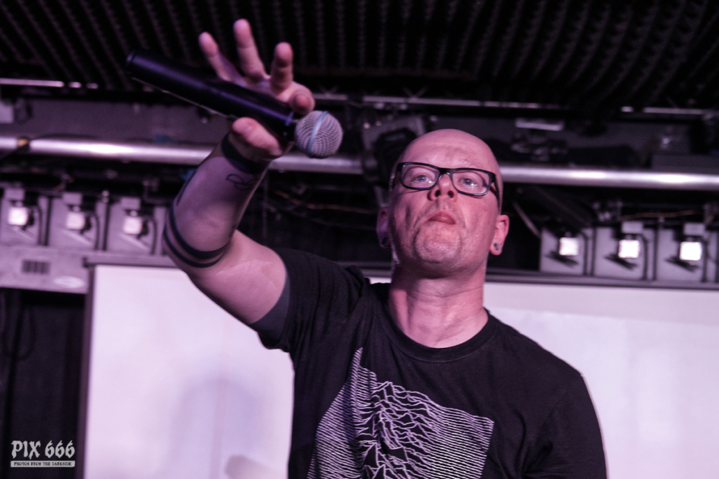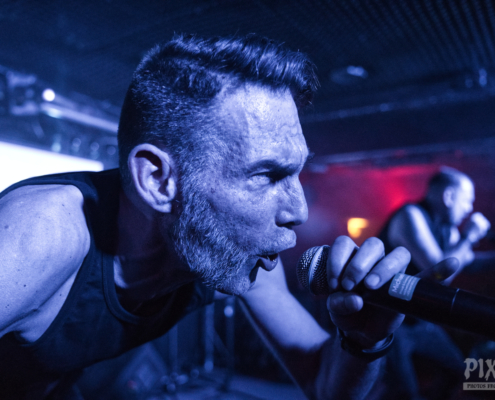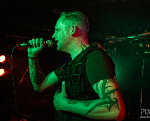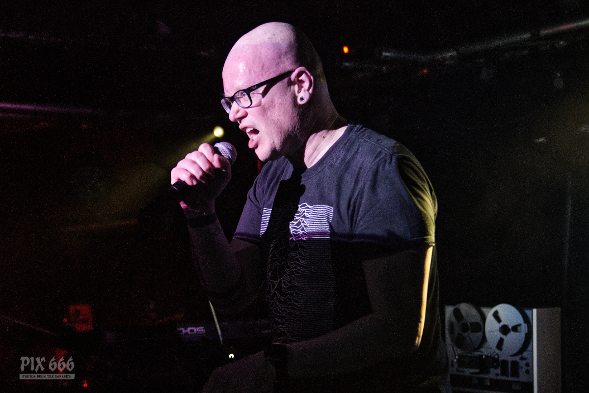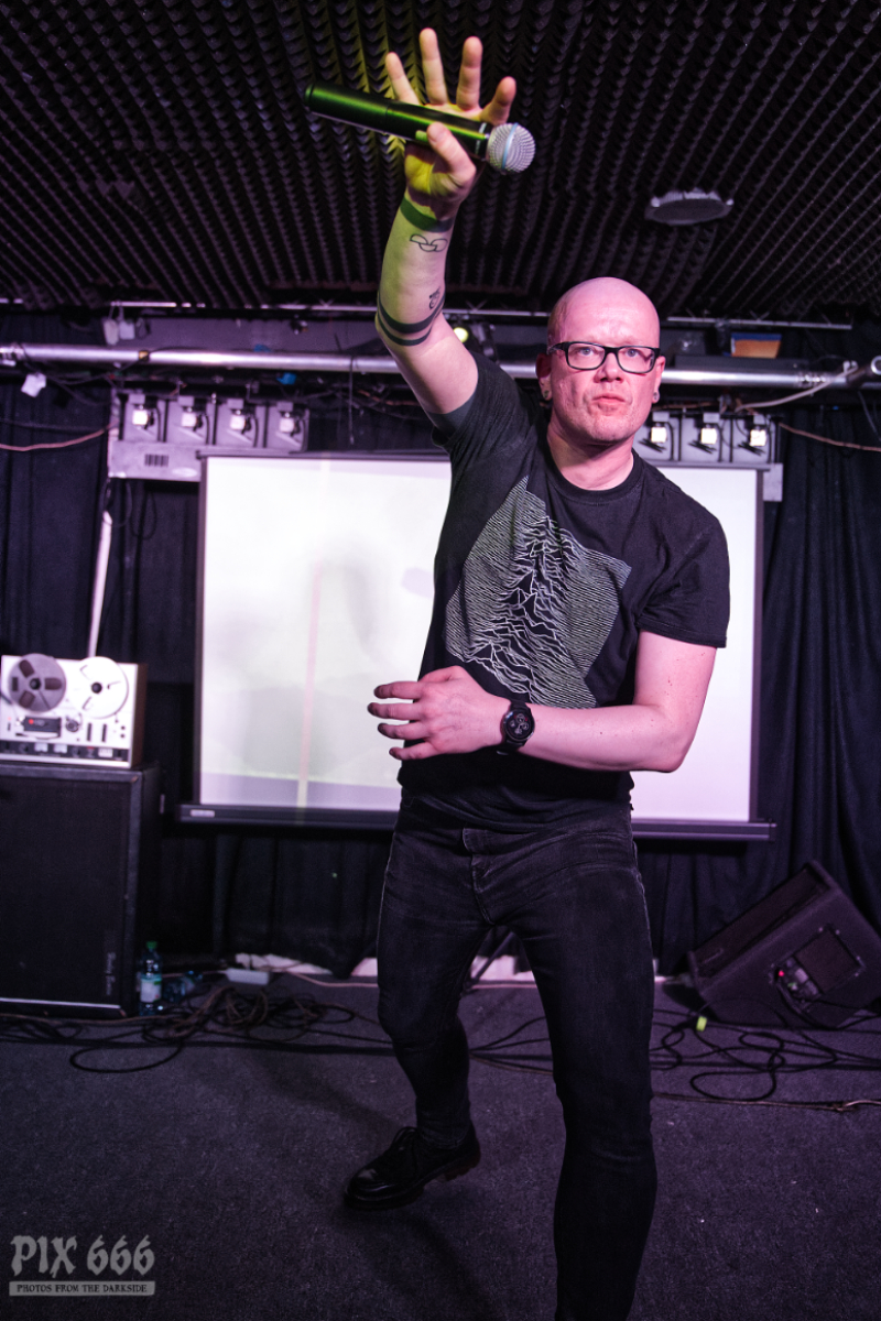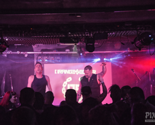 Nun war die Zeit für den Headliner gekommen – eines der EBM Urgesteine war nach Wien gekommen. Die deutsche Band Orange Sector, die die Geschichte des EBM seit über 30 Jahren selbst mitgeschrieben hat brauchte keine Anlaufzeit, um die Fans im Replugged auf Betriebstemperatur zu bringen. Nach wenigen Songs war das Publikum in den ersten Reihen dann sogar so wild, dass es zu einer Unterbrechung kommen musste. Keine Panik – verletzt wurde niemand, aber die Monitorbox wurde mitgerissen und der Stecker musste erst wieder fixiert werden. Nach der kurzen Pause ging es im gleichen Tempo weiter, die etwa 100 EBM Fans brachten die Location zum Wackeln und sorgten für eine einmalige Stimmung. Bei Orange Sector gab es quasi Tanzgarantie auf Rezept – da stand wirklich keiner mehr still und alle beteiligten sich an einer wahren Tanzorgie. Das war genau die Partystimmung, die das Festival zum Abschied verdient hatte. Und weiter ging es mit ‚Der Sturm‘ und es wurde fleißig weiter gestampft. ‚Tanzbefehl‘ hieß es als Nächstes – aber das mit dem Tanzen geschah hier in der Tat alles absolut freiwillig und mit totaler Hingabe. Dann verabschiedeten sich die Jungs: „Wien – Vielen Dank ,danke schön“. Aber nach dem die Fans noch Nachschlag wollten und lautstark nach einer Zugabe grölten, kam von der Bühne ein lässiges „Okay“ zurück. Und weiter ging der wilde Ritt mit Tempo und Energie. ‚Für immer‘ – dieser 30 Jahre alte Klassiker funktioniert einfach immer noch – und wird es wahrscheinlich ‚für immer‘ tun.
