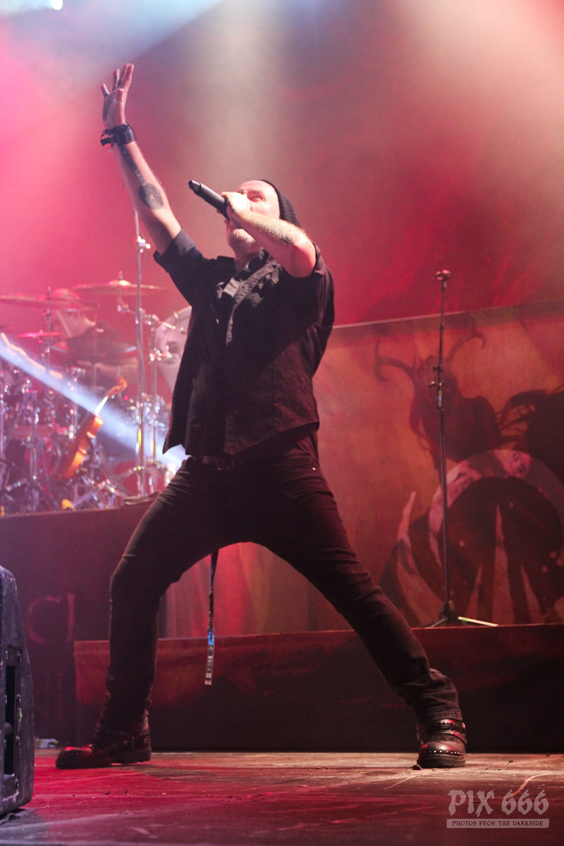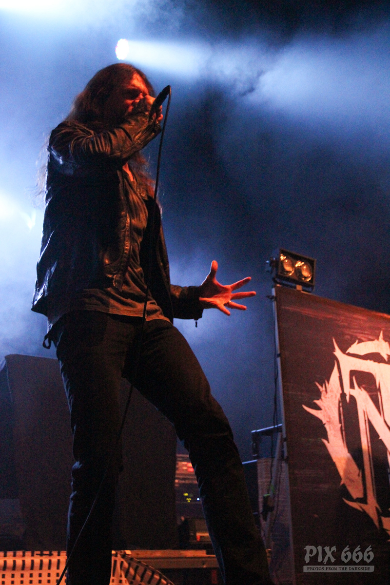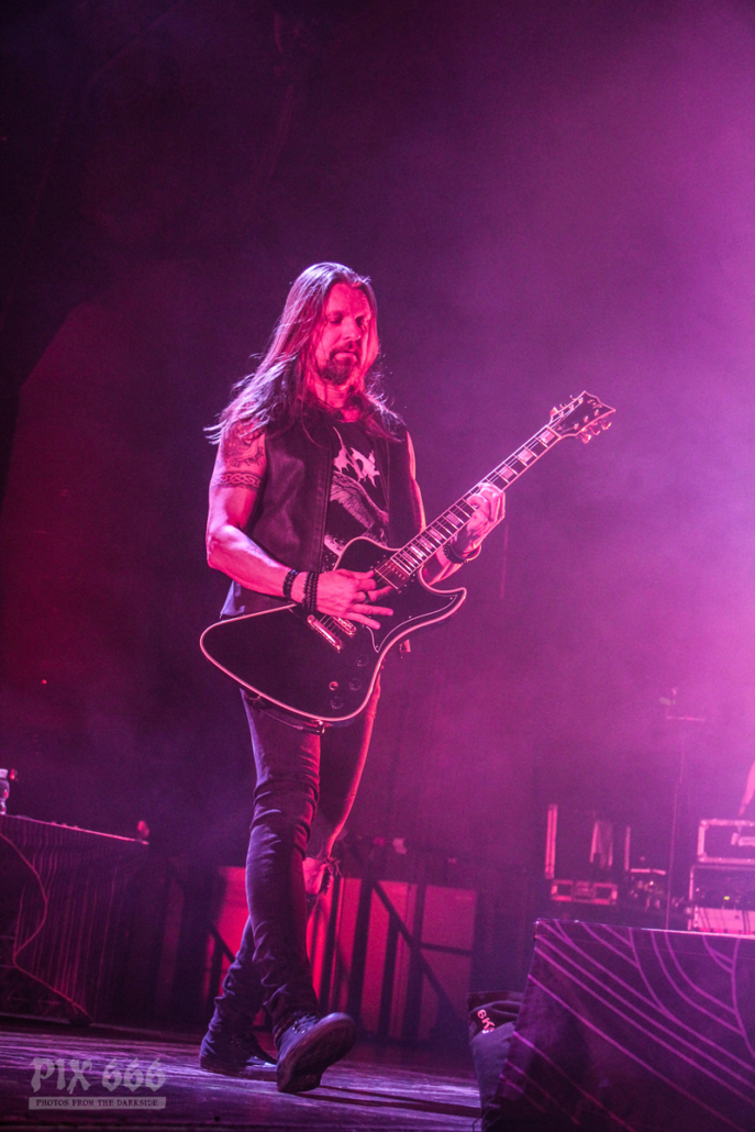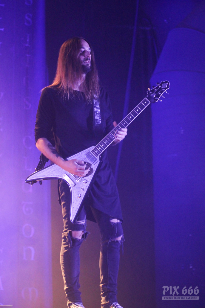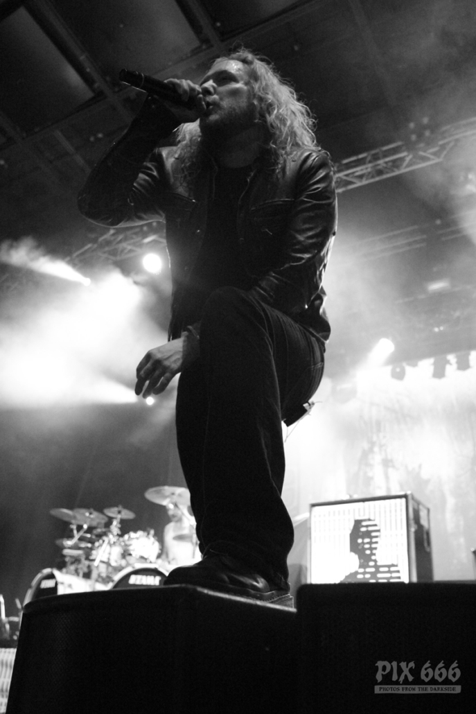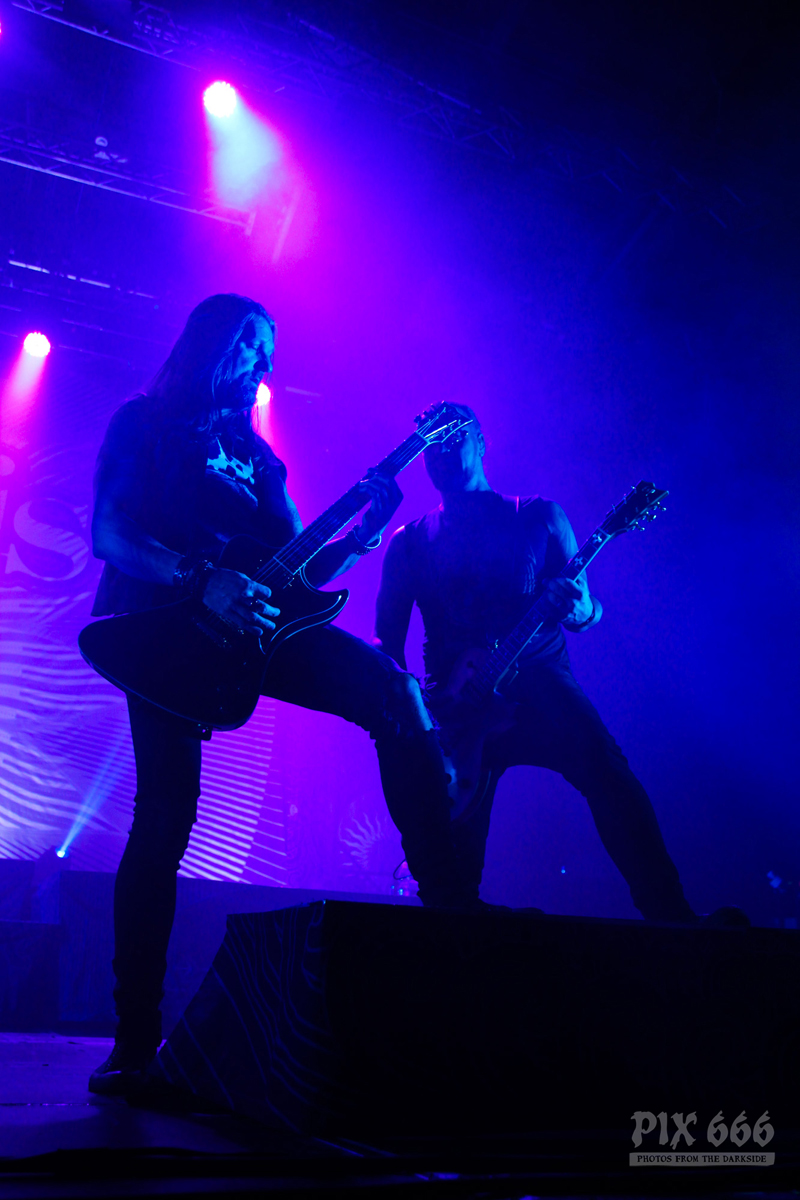 Dark Tranquillity spielten einen interessanten Mix aus alten Songs und aus Songs vom aktuellen Album ‚Moment‘. Sogar Songs, die die Band eher selten spielt, waren heute in der Setlist enthalten. Der Sound im Gasometer war heute bei allen Bands gut, manchmal kommt es ja vor, dass die Supportbands da etwas vernachlässigt werden. Nun waren auch nahezu alle Fans im Gasometer angekommen – die Halle war jetzt irgendwo zwischen zwei Drittel und drei Viertel gefüllt.