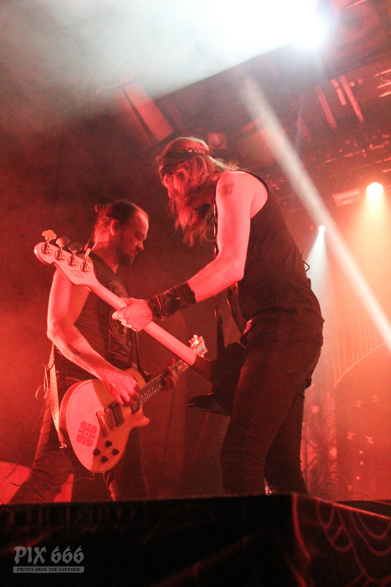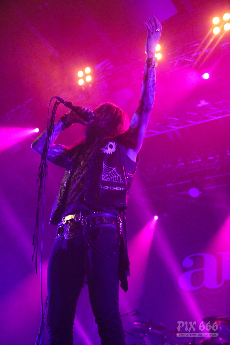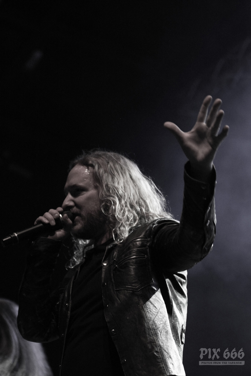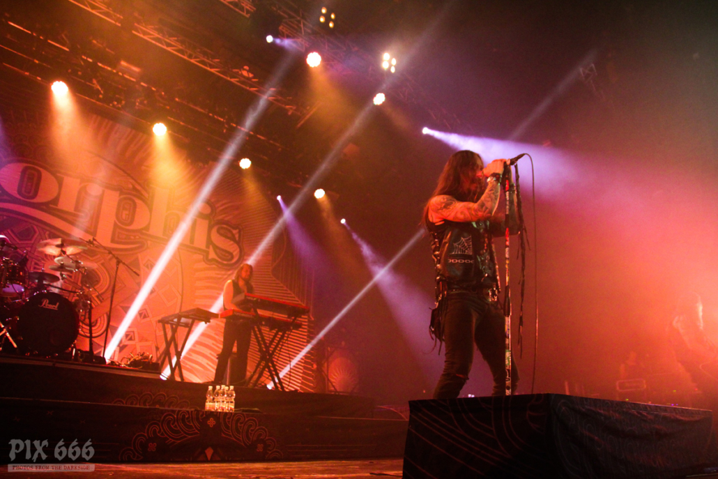 Die Jungs legten gleich mit zwei neuen Songs los – ‚Northwards‘ und ‚On the Dark Waters‘. „Danke meine Freunde – danke meine Brüder und Schwestern“. Als nächstes folgte mit ‚Death Of A King‘ ein Song aus dem Jahr 2015. „Der nächste Song heisst ‚Silver Bride‘ – macht ein bisschen Lärm Wien“, sagte Sänger Tomi und hob dabei seinen Mikrofonständer in die Höhe. „Hey hey hey“ schallte es nun während des Songs immer wieder durch die Halle. „Wir sind froh hier zu sein mit euch tollen Leuten. Der nächste Song heißt ‚Wrong Direction‘“. Donnernde Drums dröhnten nun durch das Gasometer – begleitet von rhythmischem Klatschen.