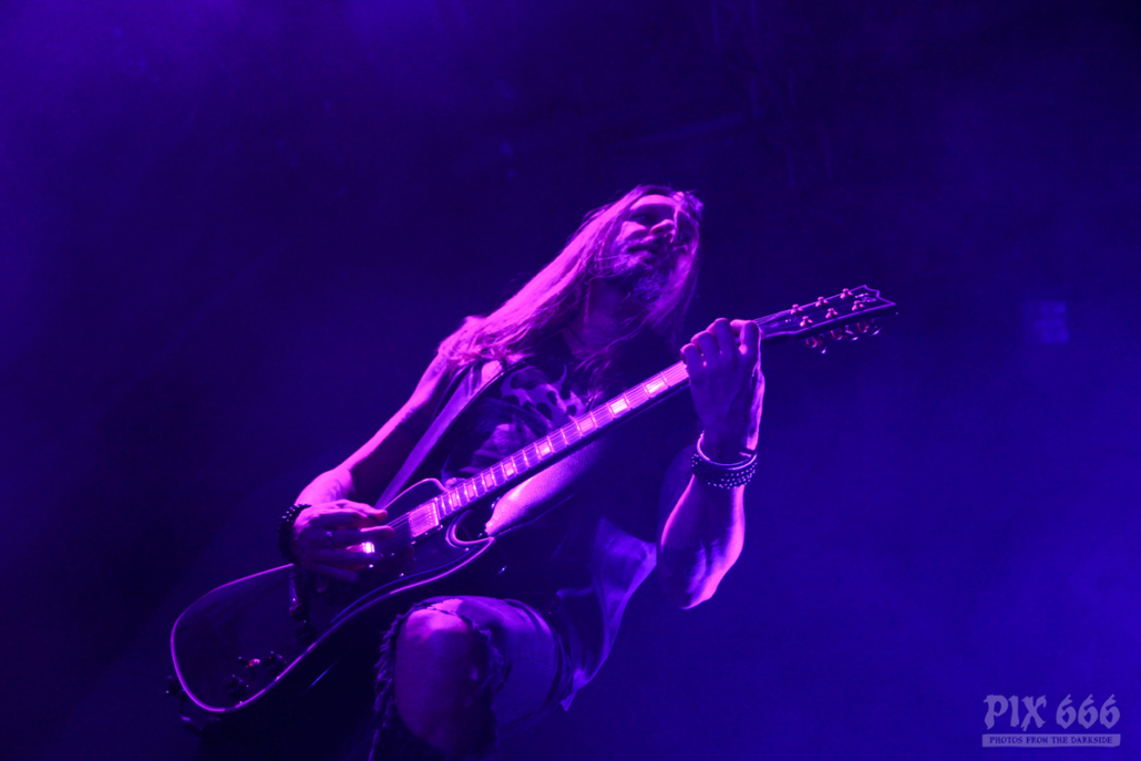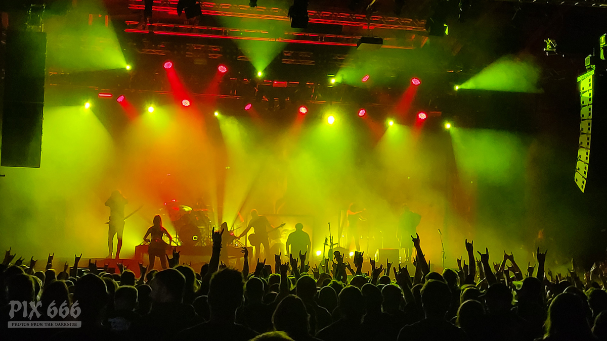 Seit über 30 Jahren ist Mikael Stanne mit seinen Jungs von Dark Tranqillity bereits unterwegs und hat die Band im Laufe der Jahrzehnte zu den führenden Melodic Death Metal Bands Schwedens gemacht. Im letzten Jahr gewann die Band sogar den schwedischen Grammi in der Kategorie Hardrock/Metal. Aber auch nach über drei Jahrzehnten auf Tour ist der Band kein Bisschen Müdigkeit anzumerken – Mikael war auf der Bühne unterwegs wie ein Wiesel und er steckte mit seiner Energie auch die Fans an – denn auch ins Publikum kam jetzt richtig Bewegung. Die Haare der Leute in den ersten Reihen wehten der Band entgegen.