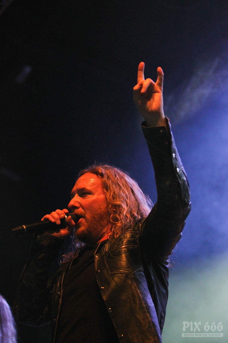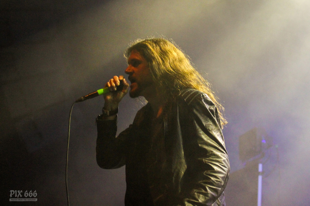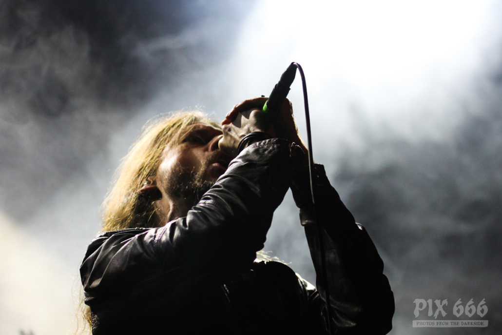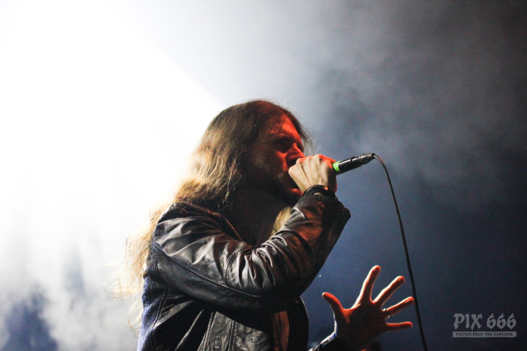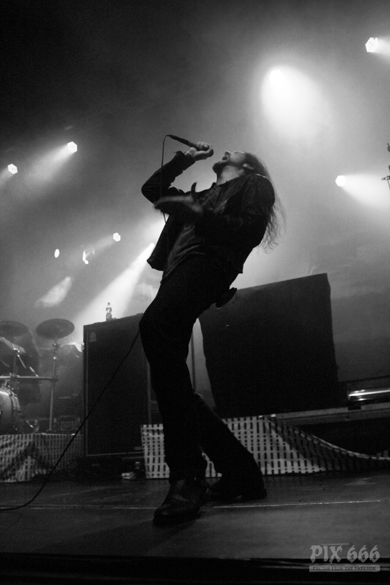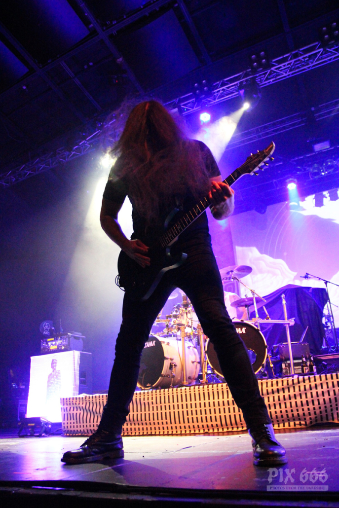 „Das Nächste ist ziemlich neu – vom letzten Album, etwa zwei Jahre alt – ‚The Dark Unbroken‘“. Nach dem Song gab es riesigen Jubel, eigentlich war es so laut, als wäre die Hütte voll. „Jetzt einer meiner Lieblingssongs, den wir seit 2005 nicht mehr gespielt haben, aber jetzt für die Tour wieder rausgekramt haben“ – mit diesen Worten sagte Mikael ‚Hours Passed In Exile‘ an. Beim nächsten Song, ‚Phantom Days‘, der auch auf dem letzten Album enthalten ist, kamen die Gitarren richtig gut zur Geltung, das hörte sich richtig stark an. Leider ging es nun schon wieder auf die Zielgerade der Show.