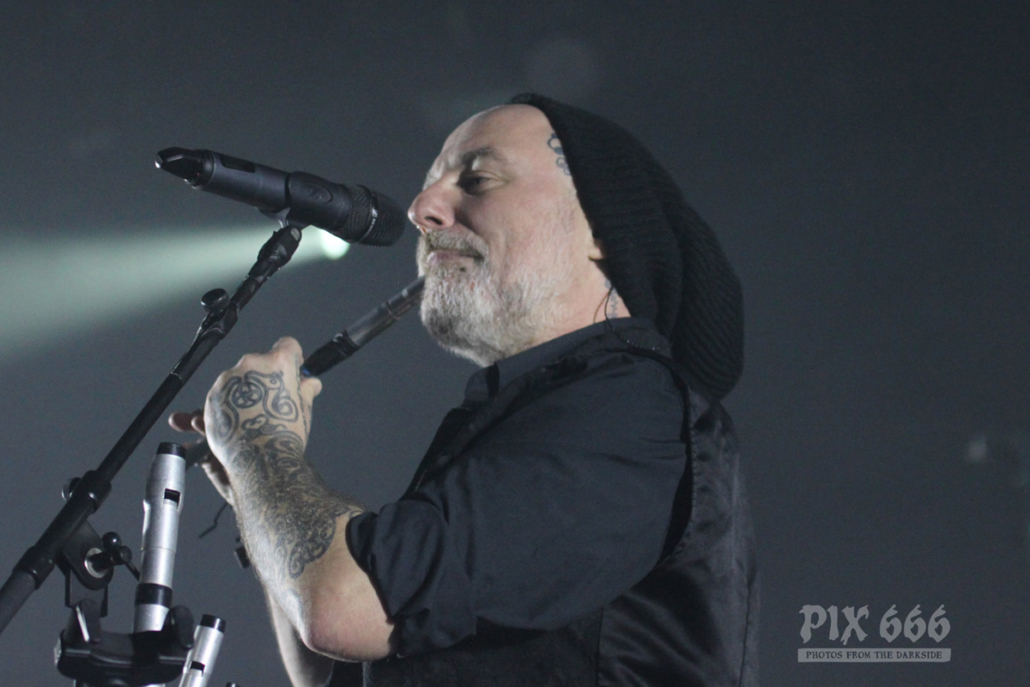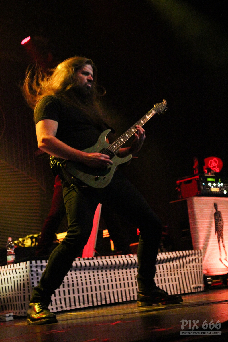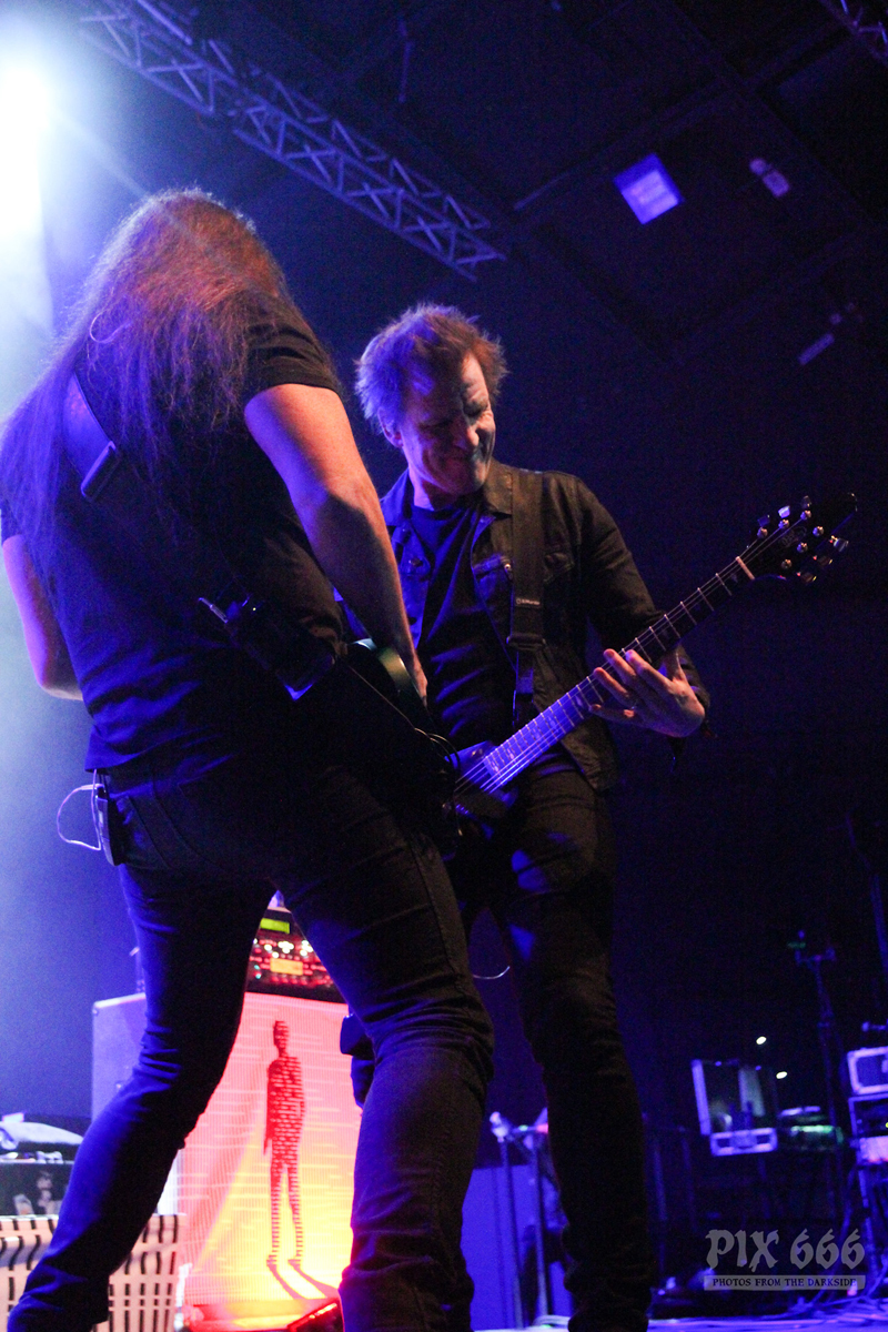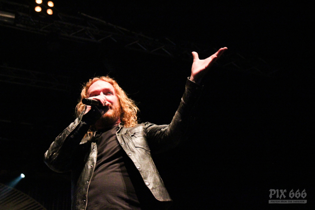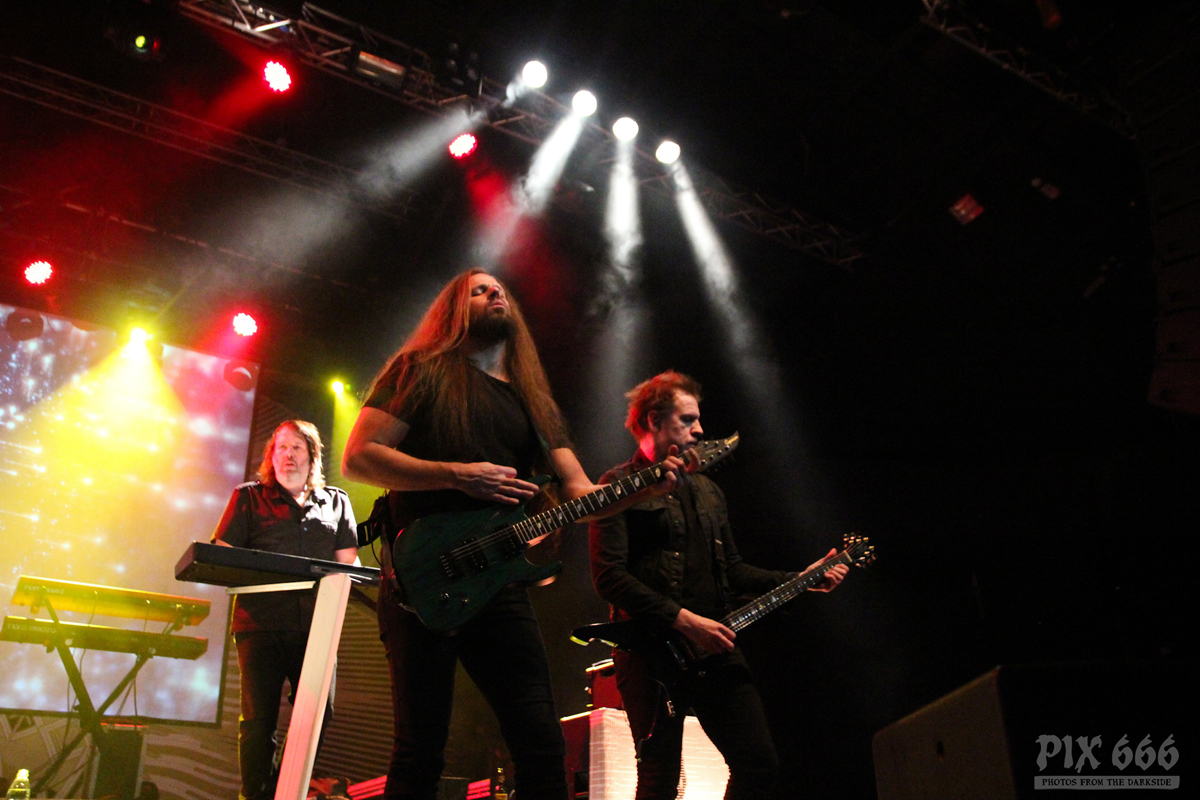 „Das Nächste ist ziemlich neu – vom letzten Album, etwa zwei Jahre alt – ‚The Dark Unbroken‘“. Nach dem Song gab es riesigen Jubel, eigentlich war es so laut, als wäre die Hütte voll. „Jetzt einer meiner Lieblingssongs, den wir seit 2005 nicht mehr gespielt haben, aber jetzt für die Tour wieder rausgekramt haben“ – mit diesen Worten sagte Mikael ‚Hours Passed In Exile‘ an. Beim nächsten Song, ‚Phantom Days‘, der auch auf dem letzten Album enthalten ist, kamen die Gitarren richtig gut zur Geltung, das hörte sich richtig stark an. Leider ging es nun schon wieder auf die Zielgerade der Show.
