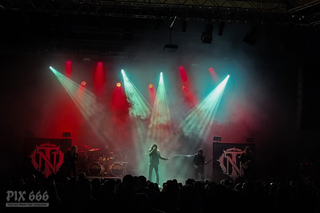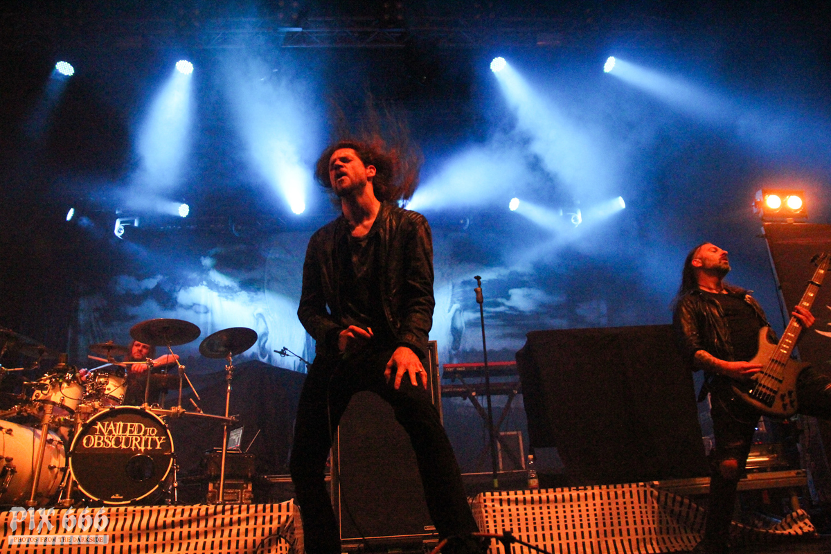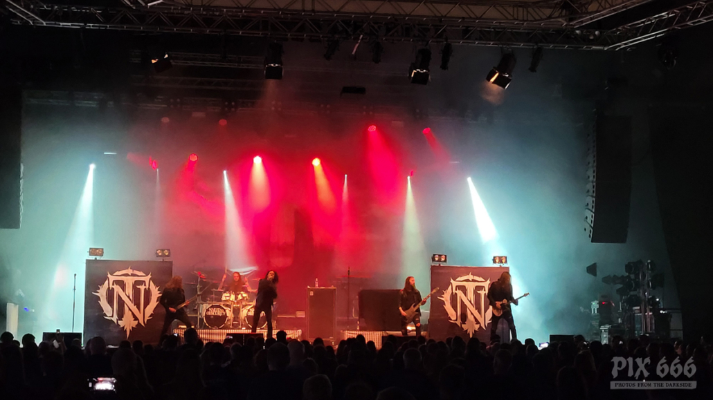 Den Anfang des langen Konzertabends machten Nailed To Obscurity aus Deutschland. Die Melodic Death Metal Band wurde 2005 gegründet und unterschrieb 2018 einen Vertrag beim bekannten Label Nuclear Blast. Das im Januar 2019 veröffentlichte fünfte Album der Band mit dem Titel ‚Black Forest‘ schaffte den Sprung in die Top40 der deutschen Albumcharts und ist bis dato das erfolgreichste Album der Band.