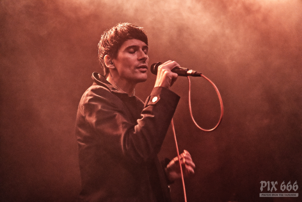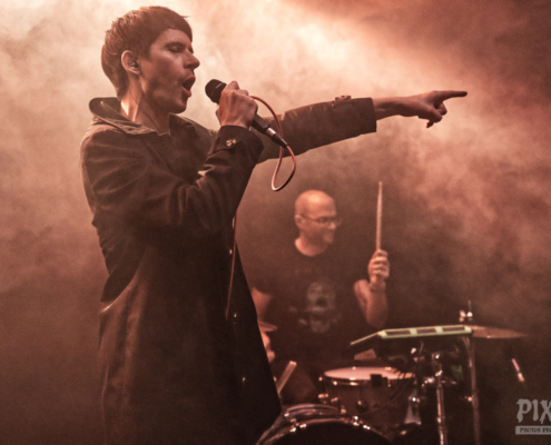 Gespannt wartete die Menge auf den Beginn der Show – doch dann endlich ertönten die donnernden Drums von ‚Monsters‘ und der eine oder andere hatte bestimmt gleich zu Beginn die erste Gänsehaut. Auch Empathy Test waren von der Kulisse beeindruckt und Isaac sagte, „…danke, dass so viele gekommen sind an einem Dienstag.“ Isaac war eh sehr gut drauf und in Erzähllaune – auch einige Anekdoten über den USA Trip wurden erzählt.
