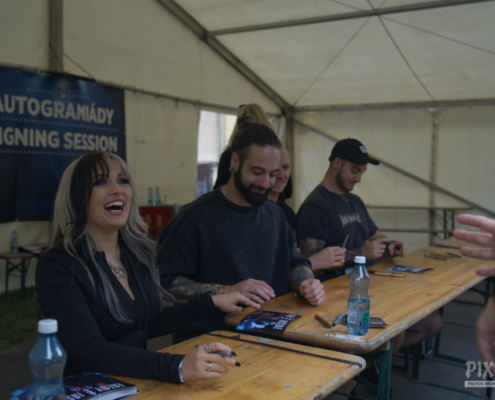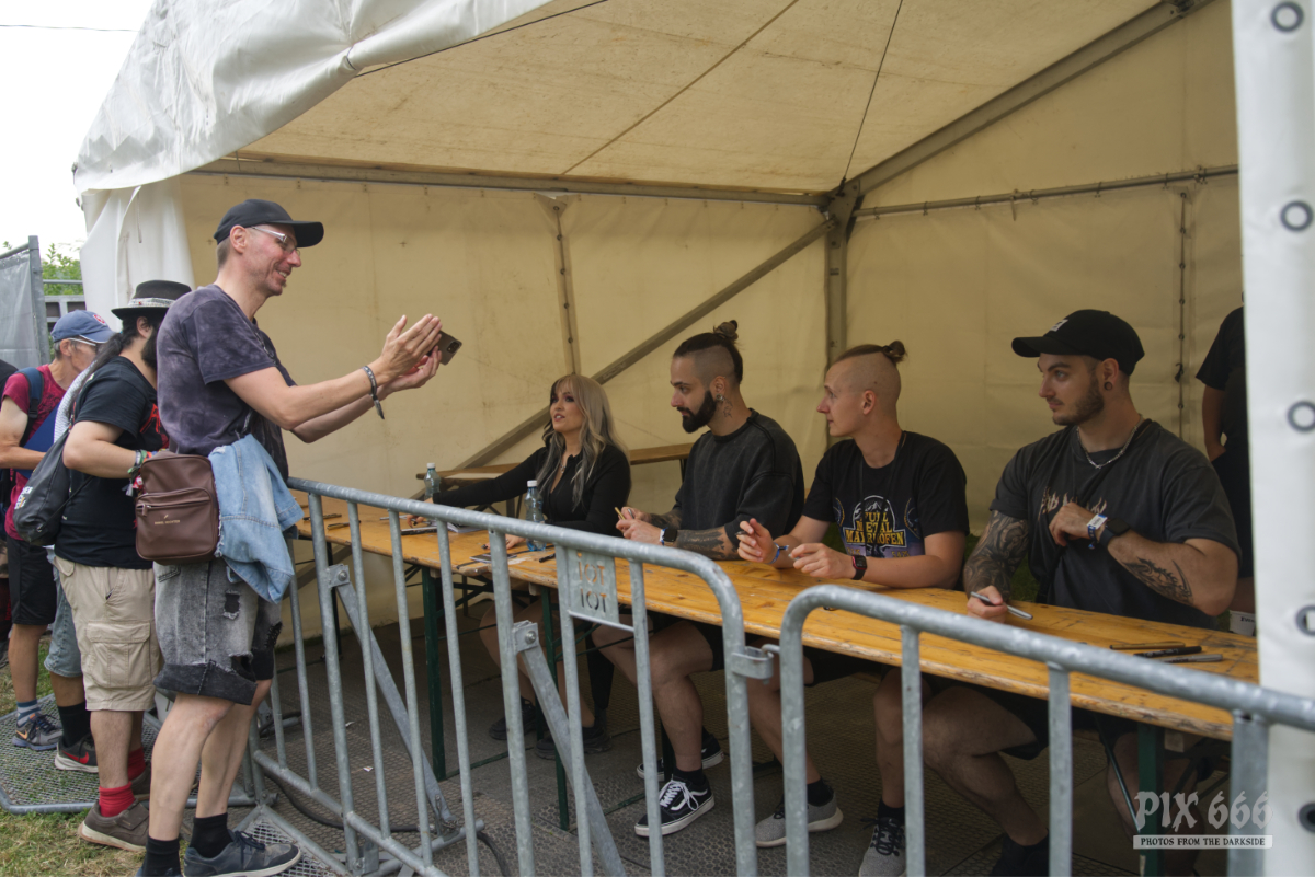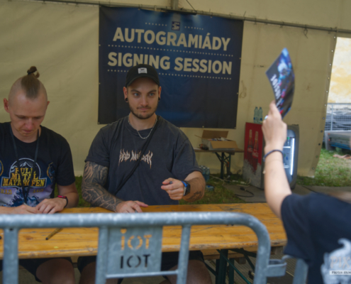 Einige Stunden nach der Show gab es dann für die Fans die Gelegenheit, Enemy Inside hautnah zu erleben. Die Autogrammstunde der Band war gut besucht und genügend Zeit für Autogramme, Fotos und kurze Gespräche vorhanden. Ganz beliebt waren natürlich Unterschriften auf dem brandneuen Album der Band. Wer ‚Venom‘ noch nicht hat, sollte es sich hier * bestellen, es lohnt sich wirklich.