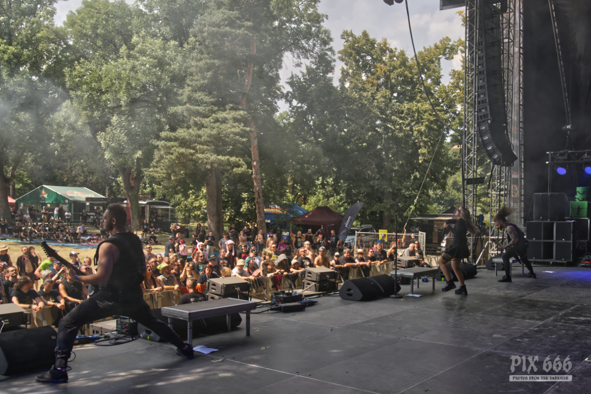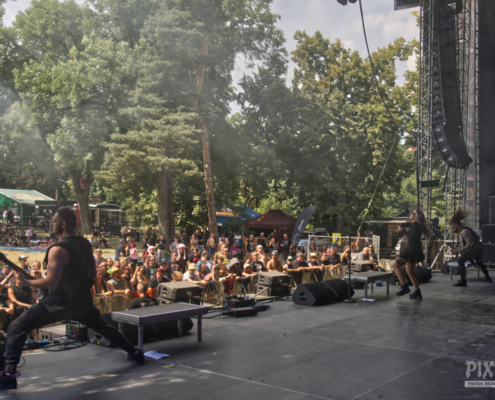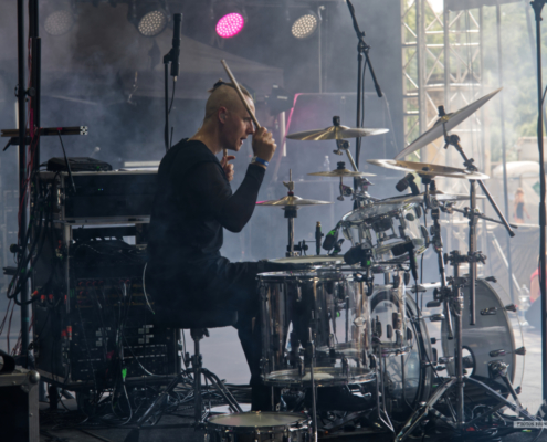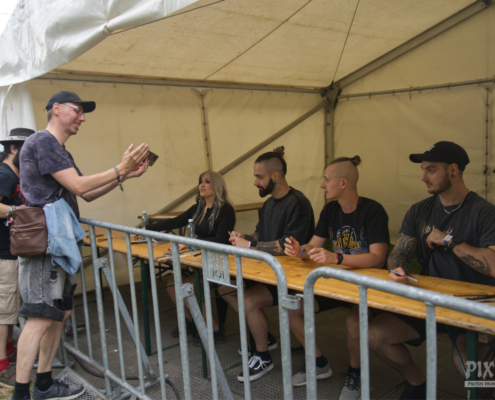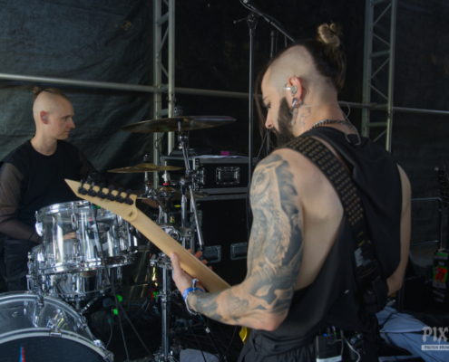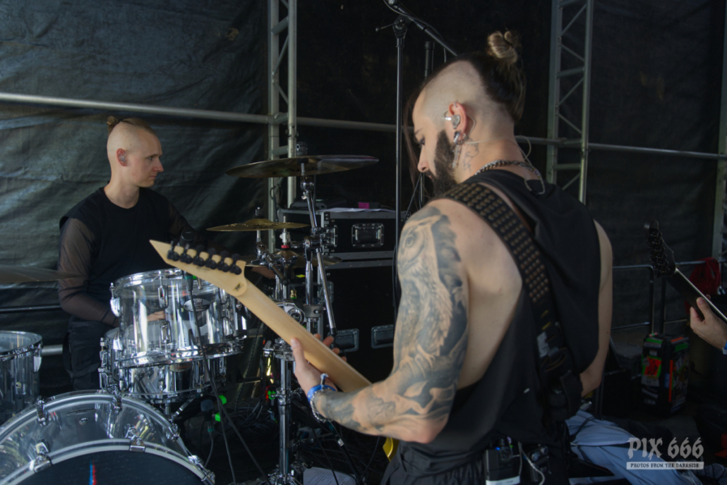 Im Juli beim legendären Wacken Open Air – im September bei der deutschen Kultsendung ZDF-Fernsehgarten. Diesen Spagat, den schon einige Rock- und Metalbands innerhalb eines Sommers geschafft haben, gehen nun auch die deutschen Alternative Metaller von Enemy Inside an. Bei den tollen Songs des neuen und bereits dritten Albums, die sowohl Moshpit- als auch Radiotauglich sind, dürfte das alles super funktionieren. Zeitlich genau zwischen diesen beiden Terminen waren Enemy Inside zu Gast beim 5. Jubiläum des Rock Castle Open Air in der tschechischen Republik – und wir waren für euch mit der Kamera dabei. Nach einer langen, fast 9 stündigen Reise bei hochsommerlichen Temperaturen bereiteten sich die Musiker bereits zur Mittagszeit auf ihre Show vor.