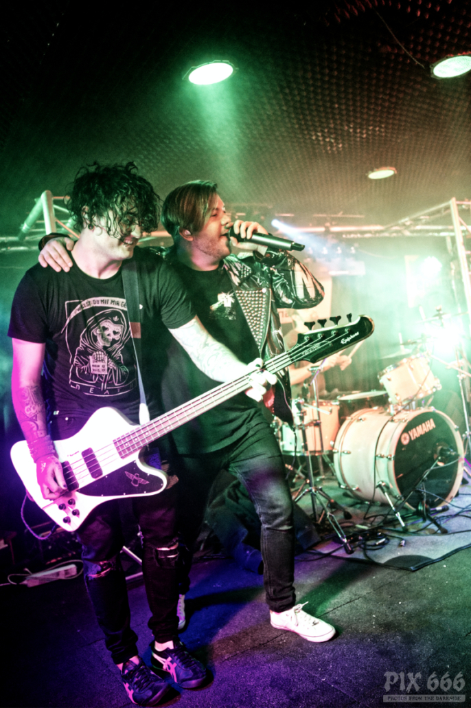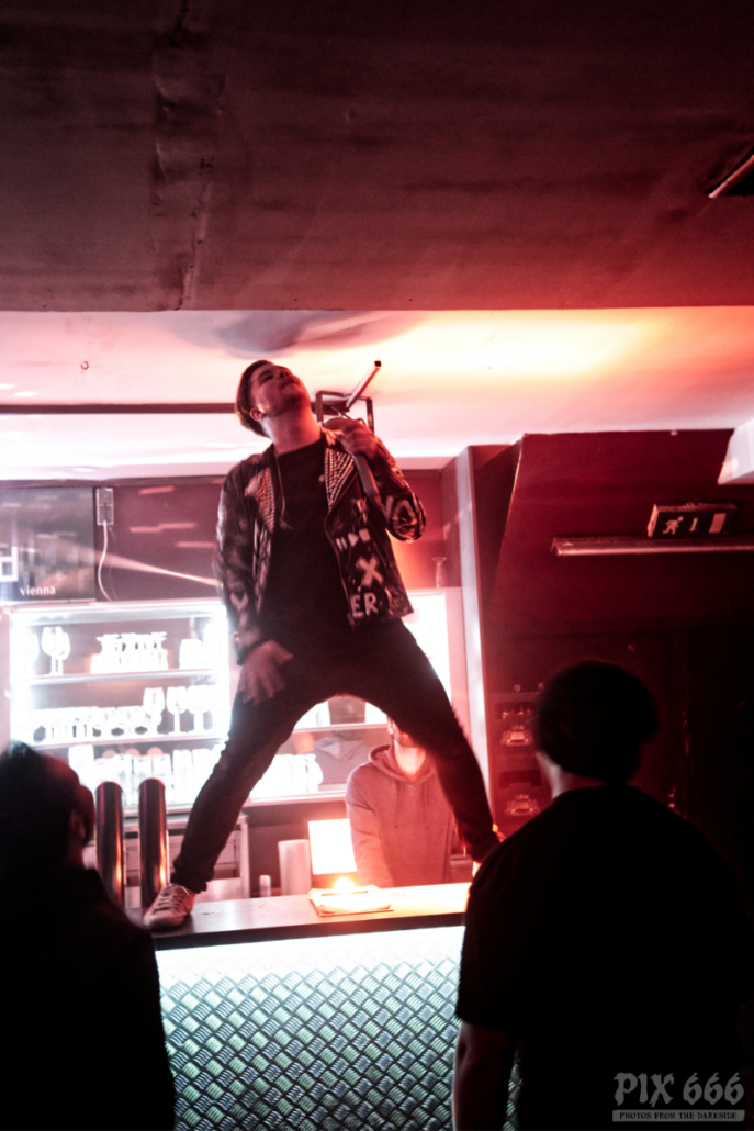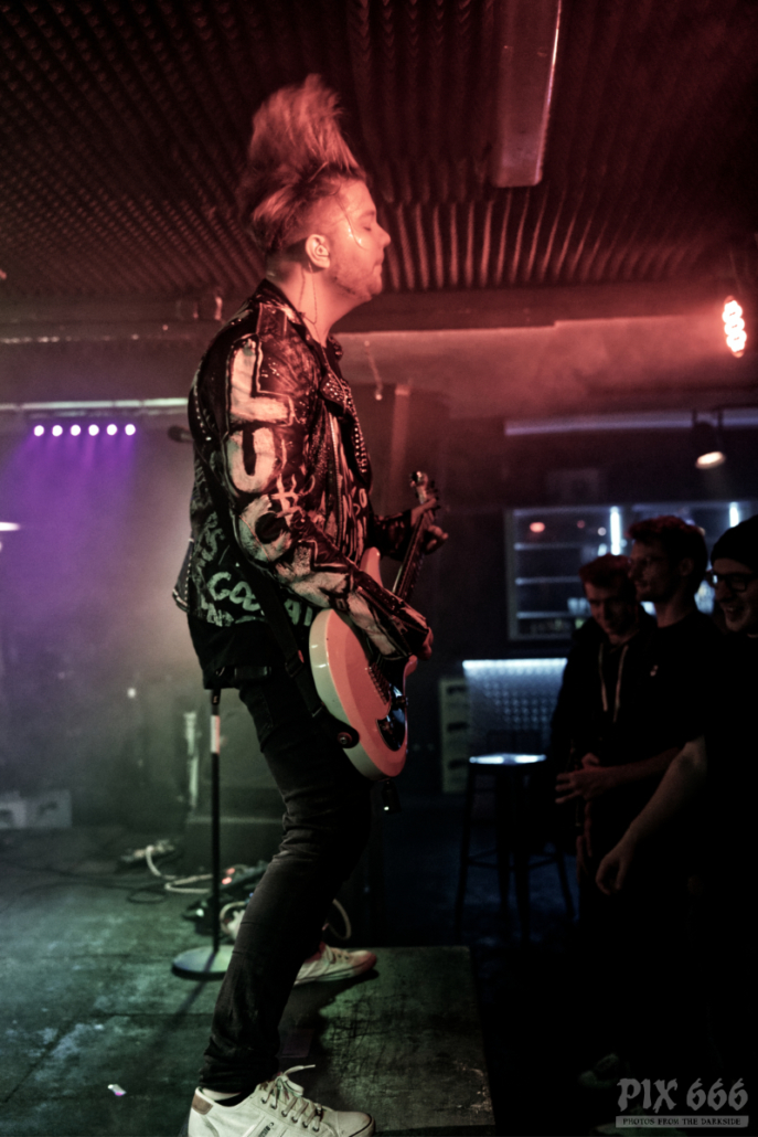 Sänger Daniel drehte auch wieder wie gewohnt seine Runde(n) durch den Club. Beim vorletzten Song kletterte er sogar auf den Tresen der Bar und sang von dort aus weiter. Beim letzten Song ‚Legendary‘ ging es dann mit dem Microständer mitten ins Publikum. Das waren kurzweilige und rockige 45 Minuten. Also checkt demnächst das Internet. Das neue Album soll im Sommer erscheinen, und coole Shirts und Hoodies haben die Jungs auch im Angebot.