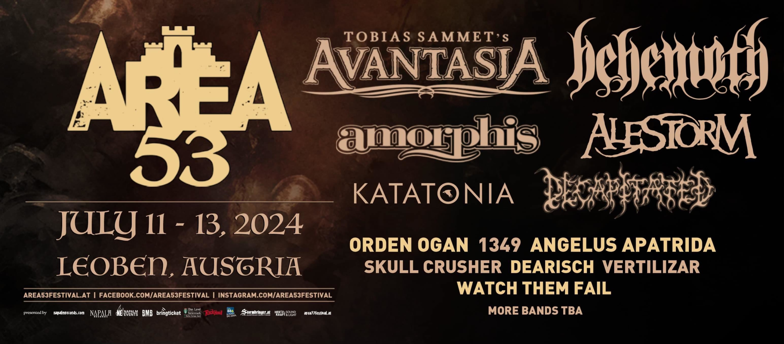 Der Termin, für den du dir Urlaub beantragen solltest, ist der 11.07. – 13.07.2024 – dann werden sich zum 7. Mal die Tore für das beliebte Metal Festival in der Steiermark öffnen. Für das Area 53 Festival 2024 stehen mit Behemoth, Avantasia, Katatonia und Amorphis bereits Bands mit Headlinerpotential fest.