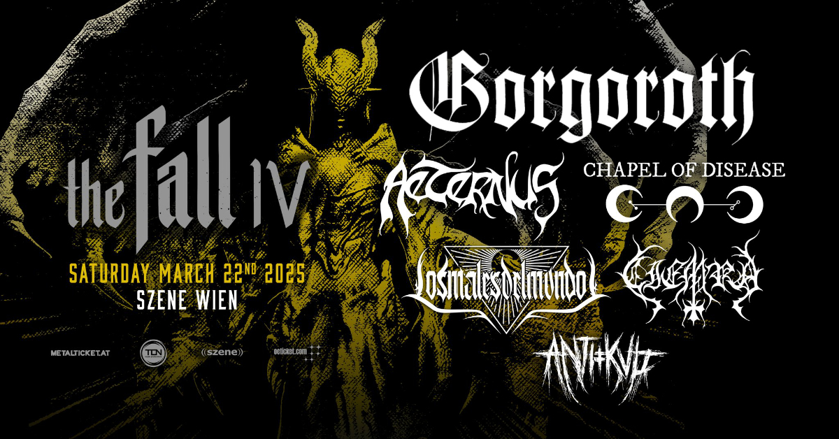Nach der Festivalpremiere im Jahr 2021 wird das beliebte The Fall Festival 2025 bereits zum vierten mal stattfinden. Wiederum ist es TON-Music Productions gelungen, ein erstklassiges Line-Up zusammenzustellen. Publikumsmagnet Gorgoroth aus Norwegen sind seit nunmehr über 30 Jahren aktiv und seit längerer Zeit schon eine der beliebtesten Bands des Black Metal Genres. Sie besuchen das The Fall IV im Rahmen ihrer ‚33 Year Anniversary Tour‘. Auch die anderen Bands aus Belarus, Deutschland und Argentinien werden die Herzen der Death- und Black-Metal Fans schneller schlagen lassen. Mit Spannung erwarten dürfen wir auch die Livepremiere der Newcomer Anticvlt aus Österreich. Insgesamt werden ab 17.00 Uhr sechs Bands auf der Bühne stehen. Sichert euch rechtzeitig ein Ticket für dieses grandiose Paket an Bands.
