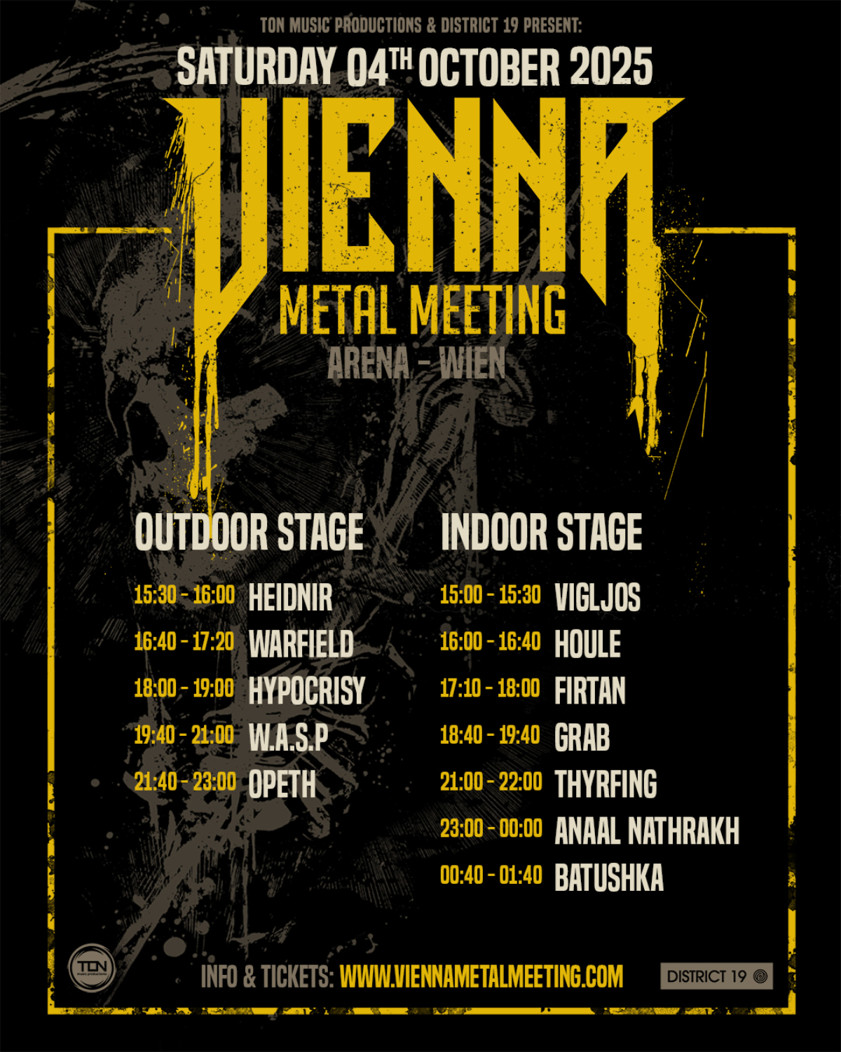 Das 7. Vienna Metal Meeting steht vor der Tür – in diesem Jahr mit 12 Bands auf 2 Bühnen. Das Festival hat sich seit 2017 als feste Größe etabliert und zieht regelmäßig große internationale Acts sowie jede Menge Metalfans nach Wien. Das Event punktet mit großer stilistischer Bandbreite: von atmosphärischem Black Metal über klassischen Heavy Metal bis hin zu melodisch-verspieltem Prog – hier kommen Fans vieler verschiedener Genres auf ihre Kosten. Die Arena Wien bietet dabei die ideale Location: eine Kombination aus Konzerthalle und Open-Air-Fläche mit gutem Sound, ausreichend Platz und der gewohnten Wiener Szene-Atmosphäre. Als Hauptacts stehen Opeth, die schwedischen Progressive-Death-Metal-Giganten, die 2024 mit ihrem Album ‚The Last Will and Testament‘ die Charts in ganz Europa gestürmt haben, sowie die Kultband W.A.S.P. mit ihrem klassischen Heavy- und Glam-Metal-Sound auf dem Programm. Die Band um Sänger Blackie Lawless hat erst Mitte Juli beim Area 53 Festival in der Steiermark beweisen können, welche Energie nach über 40 Jahren Bandgeschichte noch immer in ihnen steckt.