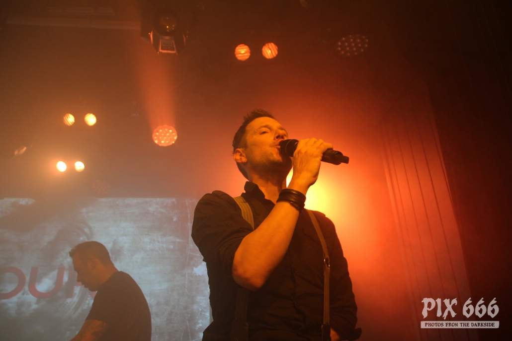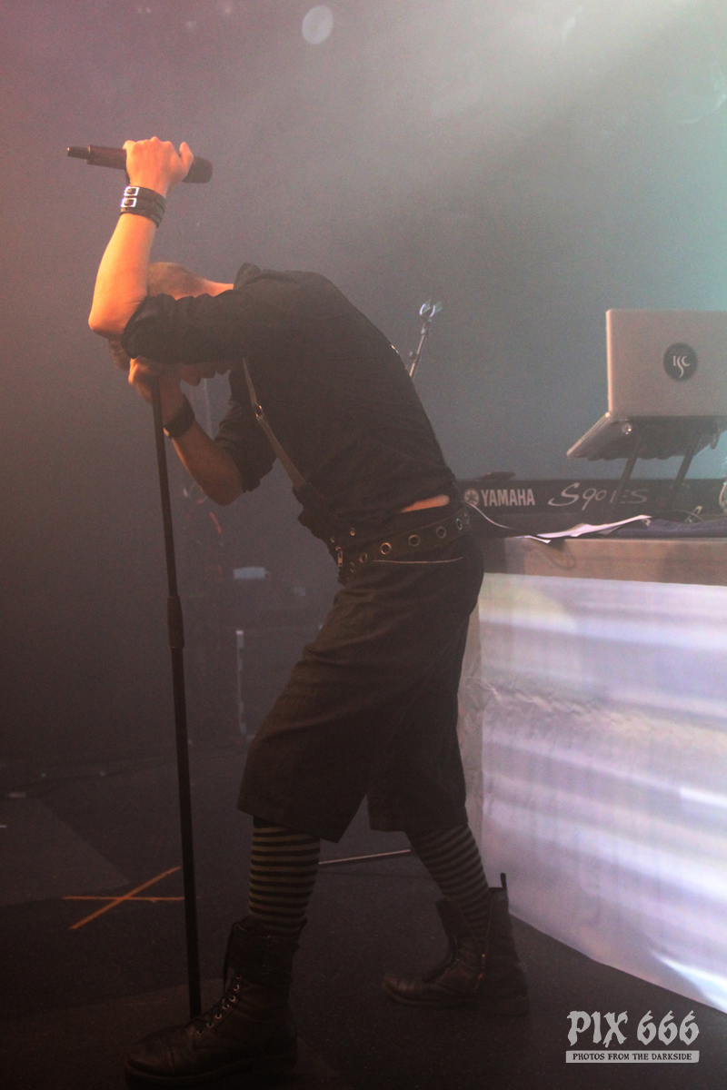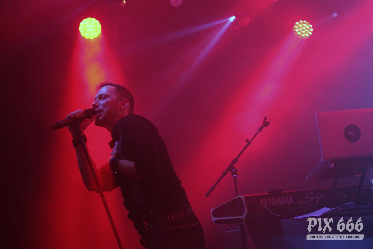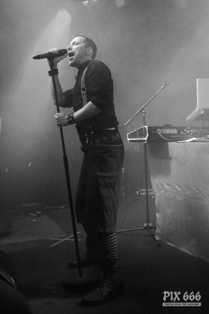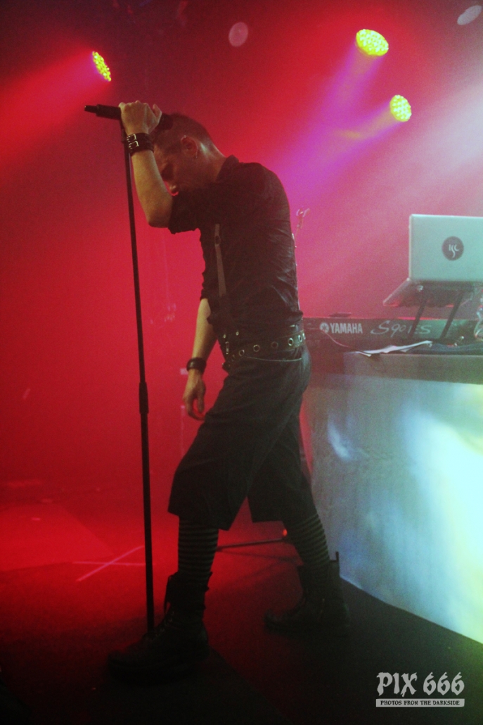 Der zweite Festivaltag wurde von der einheimischen Band Ten After Dawn eröffnet. Als die Band zu spielen begann, war der Club halbvoll. Bis zum Ende des Auftrittes war es dann richtig gut gefüllt. Ein würdiger Rahmen für die Dark Electro Formation aus Helsinki. Ten After Dawn sorgten für gute Stimmung und begeisterten die Anwesenden mit ihrem tollen, eingängigen Electropop. Neben Sänger Teemu, der zu Beginn mit einer coolen Lederjacke auf der Bühne stand, gehören zu der finnischen Band noch ein Keyboarder und ein Bassist. Die ersten Songs waren gleich relativ flott, als der Sound dann immer flotter wurde, und die Melodien eingängiger, tanzten nun nicht nur die Fans in den ersten Reihen. Teemu zog dann auch bald seine Jacke aus und spielte im schwarzen Hemd weiter – das war besser so, denn es wurde immer wärmer im Club. Ten After Dawn spielten natürlich auch ihre neue Single ‚Club‘, die vor ein paar Wochen erschienen ist. Die Ansagen von Teemu waren gemischt, teils Finnisch, teils Englisch.