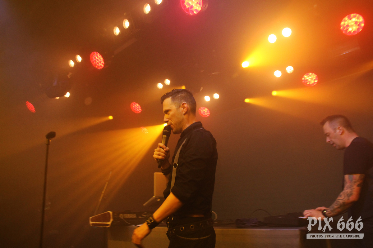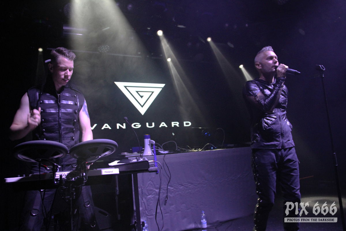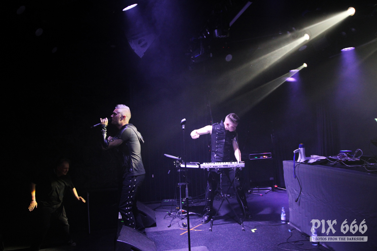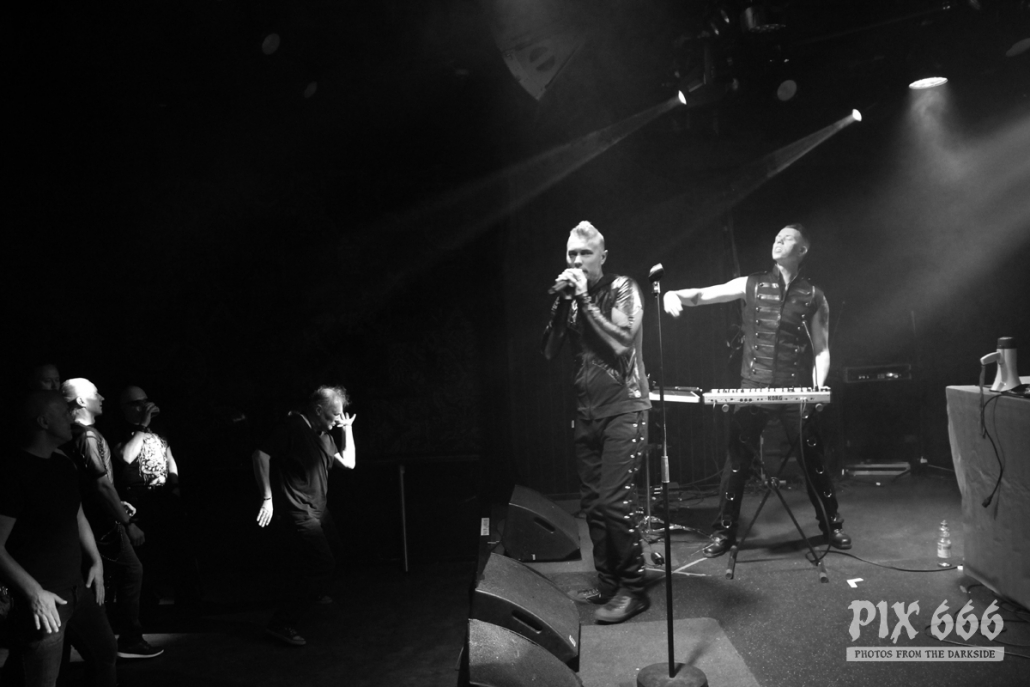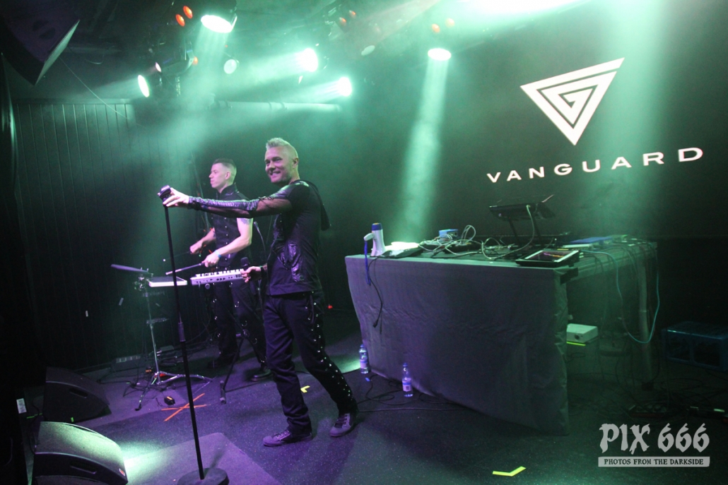 Pünktlich 20.10 Uhr standen die Jungs von Vanguard auf der Bühne. Die schwedische Electronic Band wurde 2008 gegründet und veröffentlichte 2012 das erste Album ‚Sanctuary‘. Im März 2019 erschien das vierte Album ‚Manifest‘ – mit diesem sind Jonas und Patrick seit einer Weile live unterwegs. Das Konzert wurde auch gleich mit dem Opener vom neuen Album eröffnet. Der Club war noch nicht ganz gefüllt, aber es kam schon ein bisschen Festivalstimmung auf. Der schöne Electro Pop kam bei den Fans gut an. „Jetzt wird es härter hier“ – sagte Patrick und ‚Hate‘ hatte es wirklich in sich. Das Publikum tanzte inzwischen schon und hatte richtig Spaß. Coole Strahler beleuchteten die ganze Zeit das Geschehen auf der Bühne – dann gab es mal blaues Licht und Nebel. Begleitet von rhythmischen Klatschen folgte ‚A Different Story‘ aus dem Jahr 2017. Die kurzhaarigen Schweden hatten coole Klamotten an und bedankten sich für den Applaus auf finnisch und sagten: „Kiitos“. „Habt ihr eine gute Zeit?“ ergänzte Patrick und die Band spielte mit ‚Save Me‘ einen weiteren Song vom aktuellen Album. „Ihr seid toll. Das ist der letzte Song, ‚Riot‘“ Die Fans gaben bei Tanzen nochmal alles und waren mit dem 35minütigen Auftritt von Vanguard mehr als zufrieden. Das war ein toller Start in das Festivalwochenende.