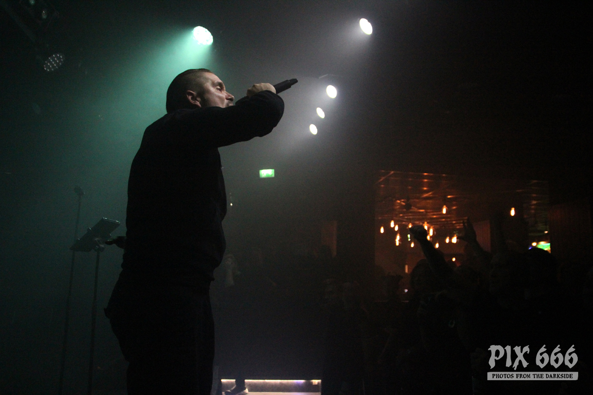Aber In Strict Confidence verstanden es auch zu zweit perfekt, die Menge in Bewegung zu bringen. Los ging es wie so oft nach einem Intro mit dem Song ‚My Despair‘. Aber ISC hatten mit ‚Used and abused‘ und ‚Mercy‘ auch Songs vom aktuellen Album ‚Hate2love‘ mit dabei. Nach ‚Set Me Free‘ sagte Dennis: „Danke Helsinki – ist alles ok?“ Oh ja, es war alles ok – und zwar sehr ok. Nicht nur die Musik, auch die Lichtshow war perfekt – wunderschöne Lichtstrahler in weiss oder gelb, bei anderen Songs wiederum in blau und rot. Dann sagte Dennis: „Lasst uns eine kleine Zeitreise machen zurück in das Jahr 1997 – das ist ‚Prediction‘. Nach diesem Song bedankte sich Dennis auf Russisch, da auch einige Fans aus dem finnischen Nachbarland angereist waren. Die Klassiker ‚Engelsstaub‘ und ‚Zauberschloss‘ brachten nochmal richtig Stimmung in den Club. Dann verschwanden die Musiker und es gab ‚Zugabe‘ Rufe auf Deutsch – das hatten die Finnen richtig gut geübt. Dennis entgegnete den Finnen mit den wichtigsten finnische Worten, die man kennen muss: „Hölleken kölleken“ – was umgangssprachlich ‚Prost‘ heisst. Zum Abschluss gab es eine stimmungsvolle Liveversion von ‚Herzattacke‘. Die Russen und Finnen kannten sogar teilweise den deutschen Text und die Stimmung war somit bis zum letzten Ton unbeschreiblich toll – aber die deutschen Fans halfen ebenfalls beim Singen mit. Die Band war von der tollen Stimmung genauso begeistert, wie das Publikum. Das fantastische Konzert endete kurz vor Mitternacht und ließ keine Wünsche offen. Danke, In Strict Confidence.