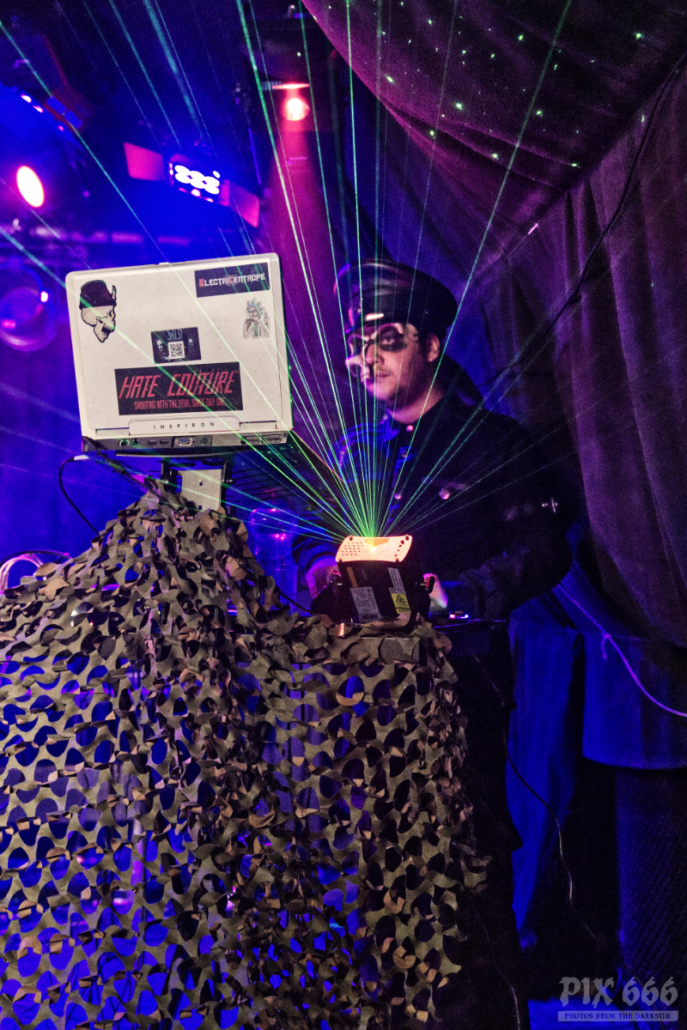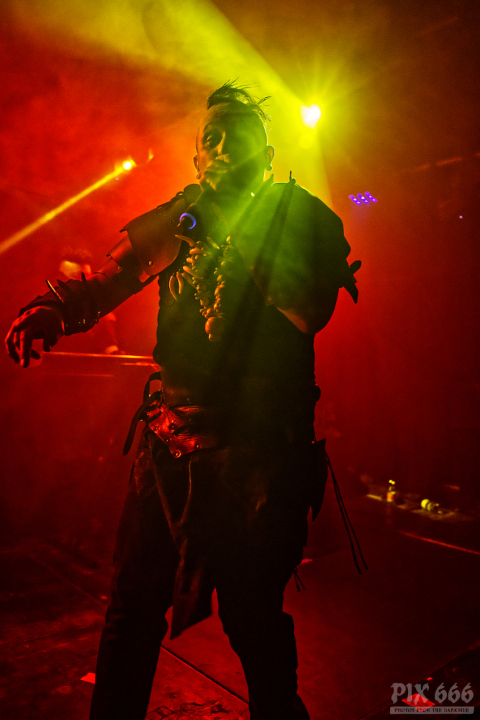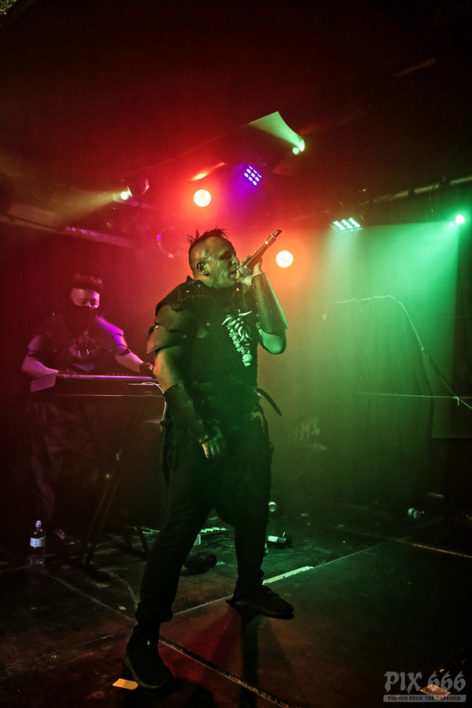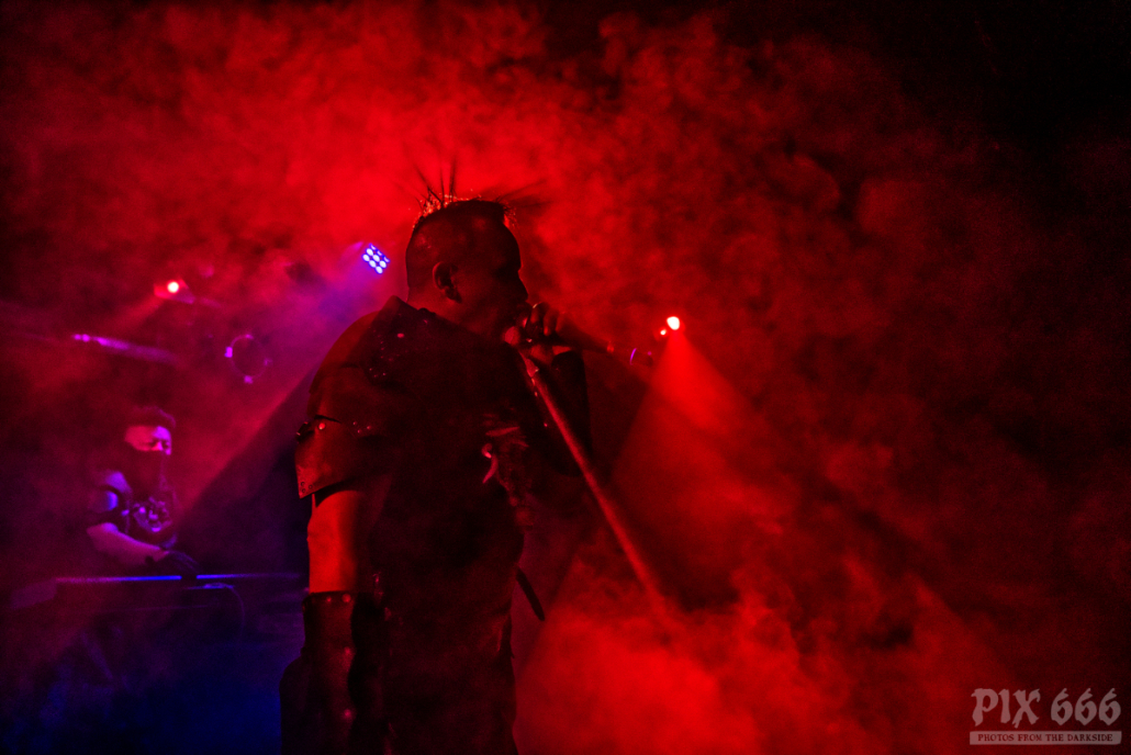 Der Headliner ließ die Fans relativ lange warten – fast eine Stunde verging zwischen den Auftritten der beiden Bands des Abends. Aber dann war es endlich soweit – Hocico baten zum Tanz. „Ihr werdet einen tollen Abend erleben“ sagte Sänger Erk, der die Band Hocico zusammen mit seinem Cousin Rasco vor fast exakt 30 Jahren gründetet hat. Aus diesem Grund fand auch im Rahmen der Tour die 30 Years Anniversary Live Show beim Out Of Line Weekender in Berlin statt. Beim deutschen Label Out Of Line sind Hocico seit der Veröffentlichung ihres ersten Albums 1997 unter Vertrag.