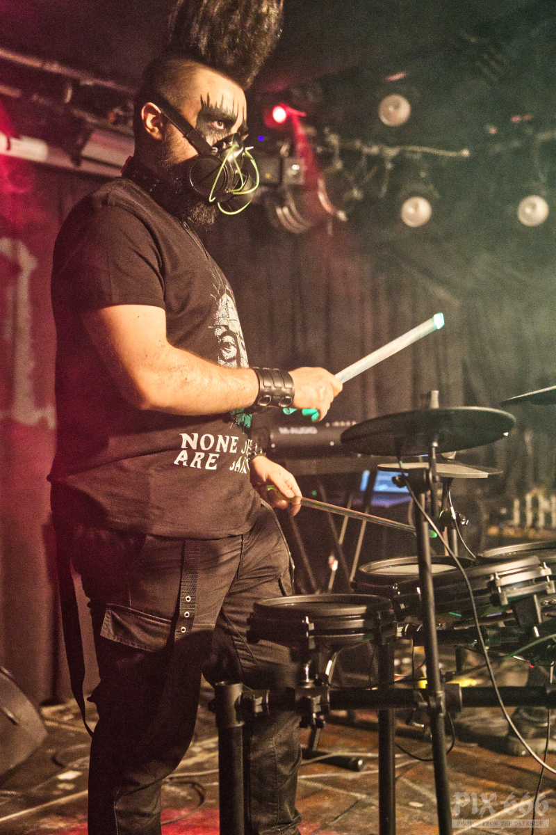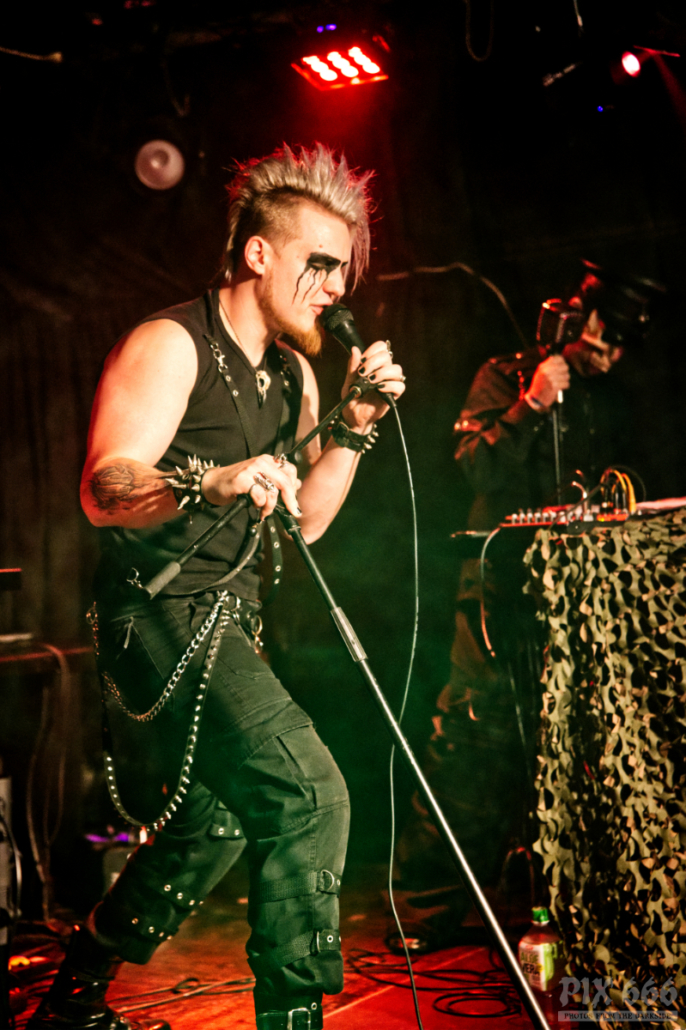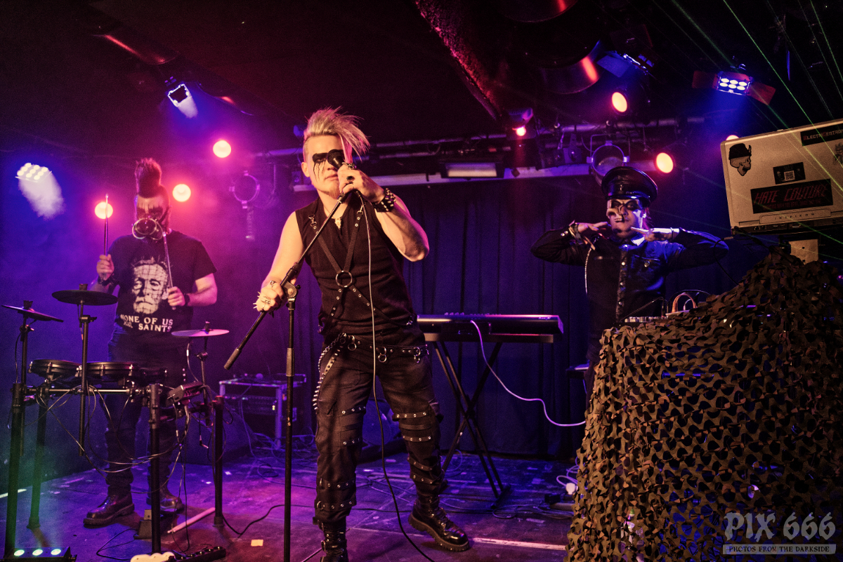 Hocico bestreiten ihre Tour nicht mit einem fixen Supportact, sondern in jedem Ort tritt als Opener eine lokale Band auf. Zu unserer Überraschung gab es im Viper Room aber keine österreichische Band – es begannen Ǝ.N.D aus Ungarn. Pünktlich um 20 Uhr ging es los. Und was soll man sagen, das EBM Trio aus unserem Nachbarland lieferte eine interessante Show ab. Die Jungs mit den coolen Frisuren hatten keine Mühe, das Publikum zum Tanzen zu bringen. Sie hatten auch reichlich Unterstützung aus der Heimat mit, die ersten Reihen waren während der Show fest in ungarischer Hand.