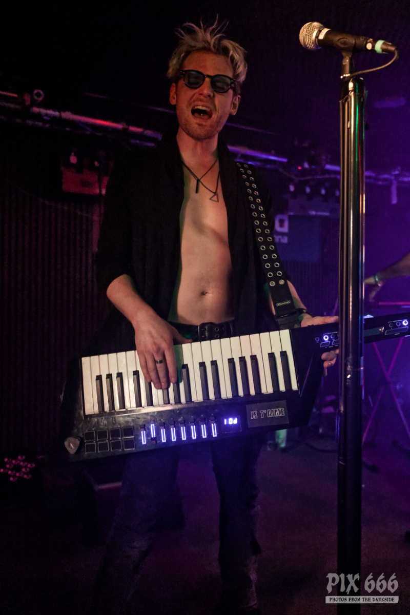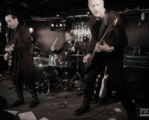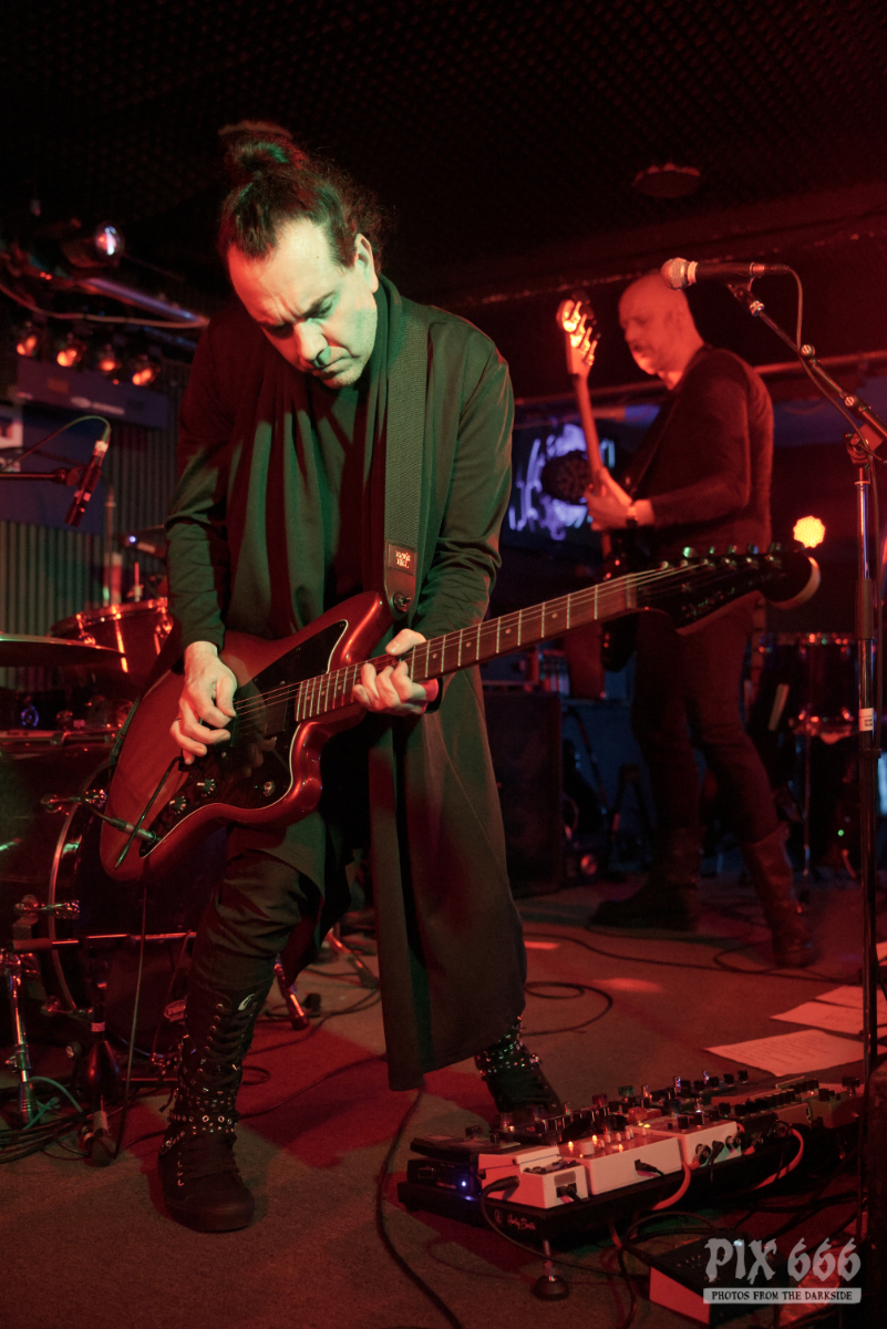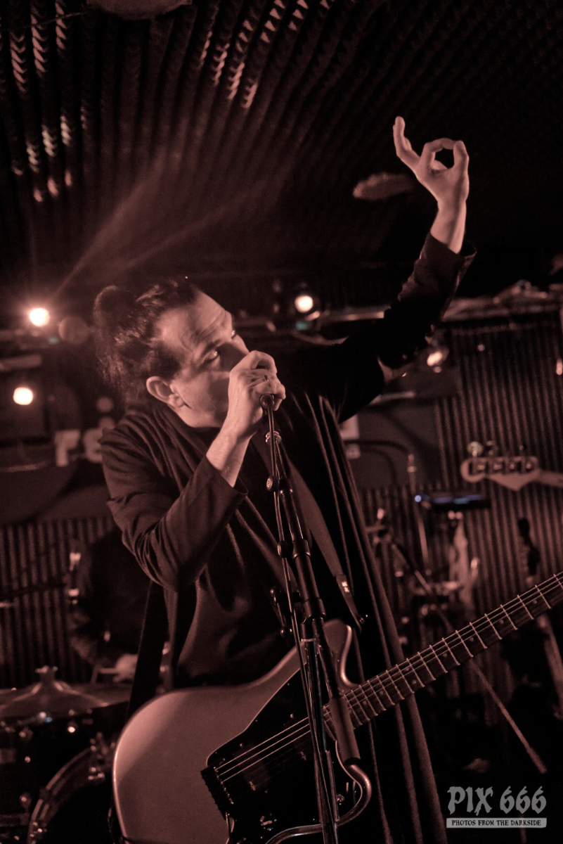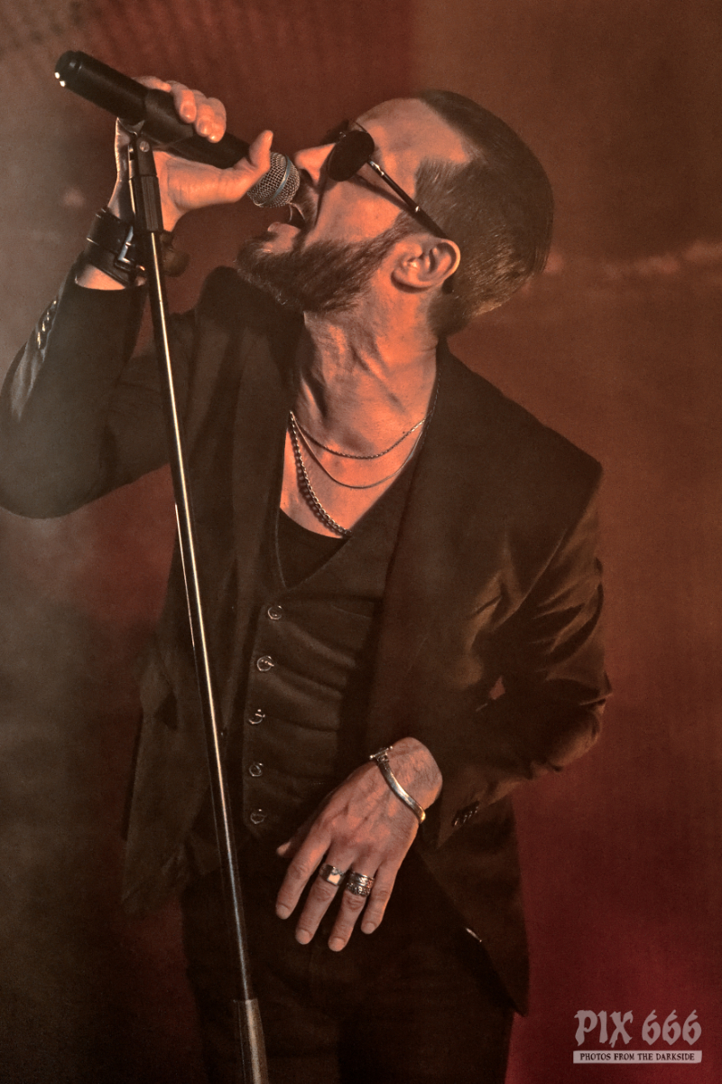 Die Dauerbrenner des Darkwave und Gothicrock standen zuletzt im Herbst des vergangenen Jahres in Wien auf der Bühne und bescherten den Fans im Viper Room mit ihrem hypnotischen Gitarrensound und der markanten Stimme von Sänger Ashley Dayour einen unvergesslichen Abend. Und genau so und nicht anders war es auch im Replugged etwa ein halbes Jahr später. Im Sommer 2023 erschien das bereits elfte Album ‚Ghost‘ von Whispers In The Shadow und die Jungs werden kein bisschen müde, denn die Arbeit am Nachfolger ‚Rapture‘ ist bereits in der finalen Phase. Die Band spielte heute Abend im Replugged neben den bekannten und live bewährten Songs auch schon zwei Stücke vom kommenden Album. Eines dieser beiden Songs war ‚Endure‘, mit dem Whispers In The Shadow ihre Show begannen um kurz vor 20 Uhr begannen. Die begeisterten Fans spendeten reichlich Applaus. Bei ‚Back To The Wound‘ rückte dann eine Standtrommel in den Mittelpunkt des Geschehens und bei ‚Lightbringer‘ wurde die Bühne zum ersten Mal so richtig eingenebelt. „Danke fürs zeitige Kommen – ist ja fast wie eine Frühstücksshow“ sagte Sänger Ashley etwa zur Mitte der Show. Mit ‚Illusions Of Grandeur‘ gab es dann noch einen brandneuen Song zu hören. Weiter ging es dann mit ‚Damned Nation‘ – das Tempo wurde nun wieder ein Bisschen erhöht und die Fans wackelten und tanzten mit. Dann wurde der letzte Song des Abends angesagt. Mit ‚Babylon Rising 1 & 2‘ aus dem Jahr 2008 beendeten Whispers In The Shadow ihren tollen Auftritt und sie waren mit ihrer Klasse und über sechzig minütigen Show definitiv mehr als nur ein ‚normaler‘ Support Act bzw. Special Guest.