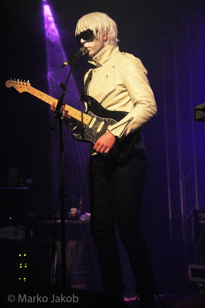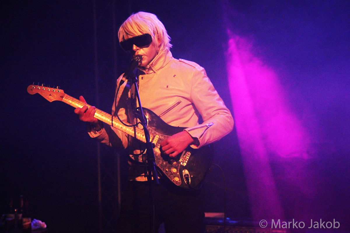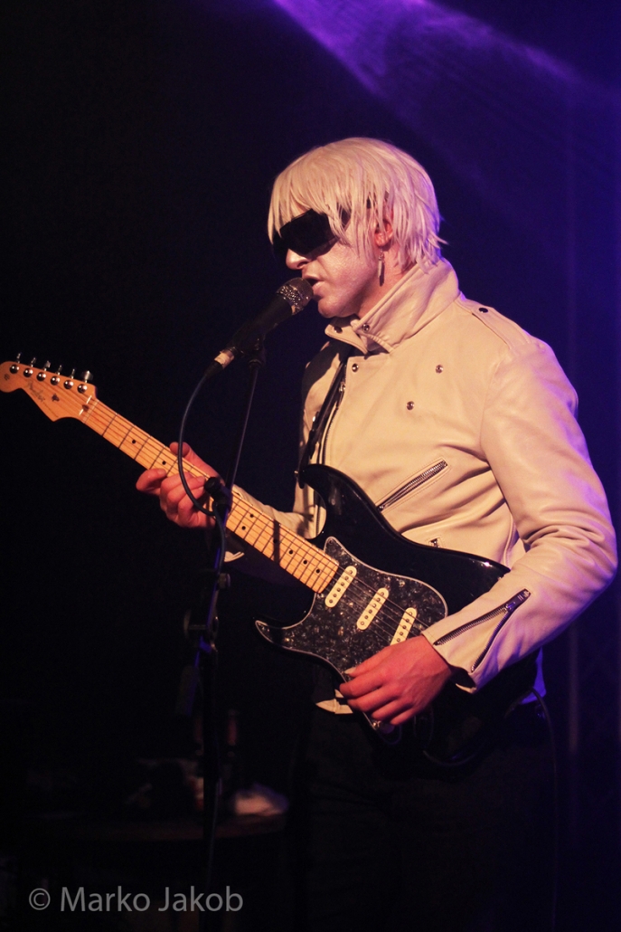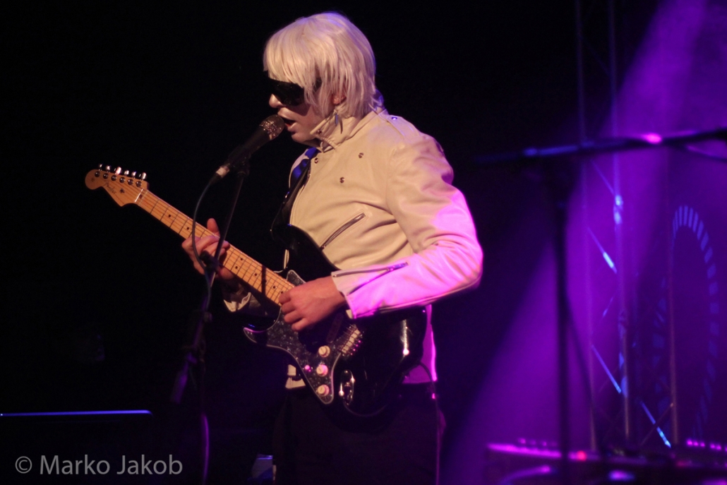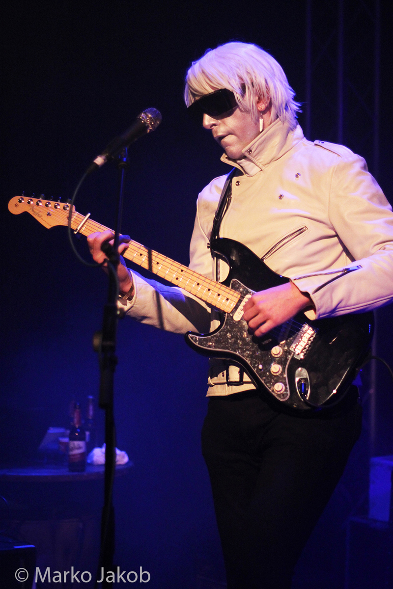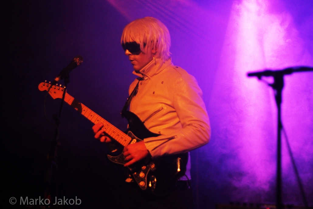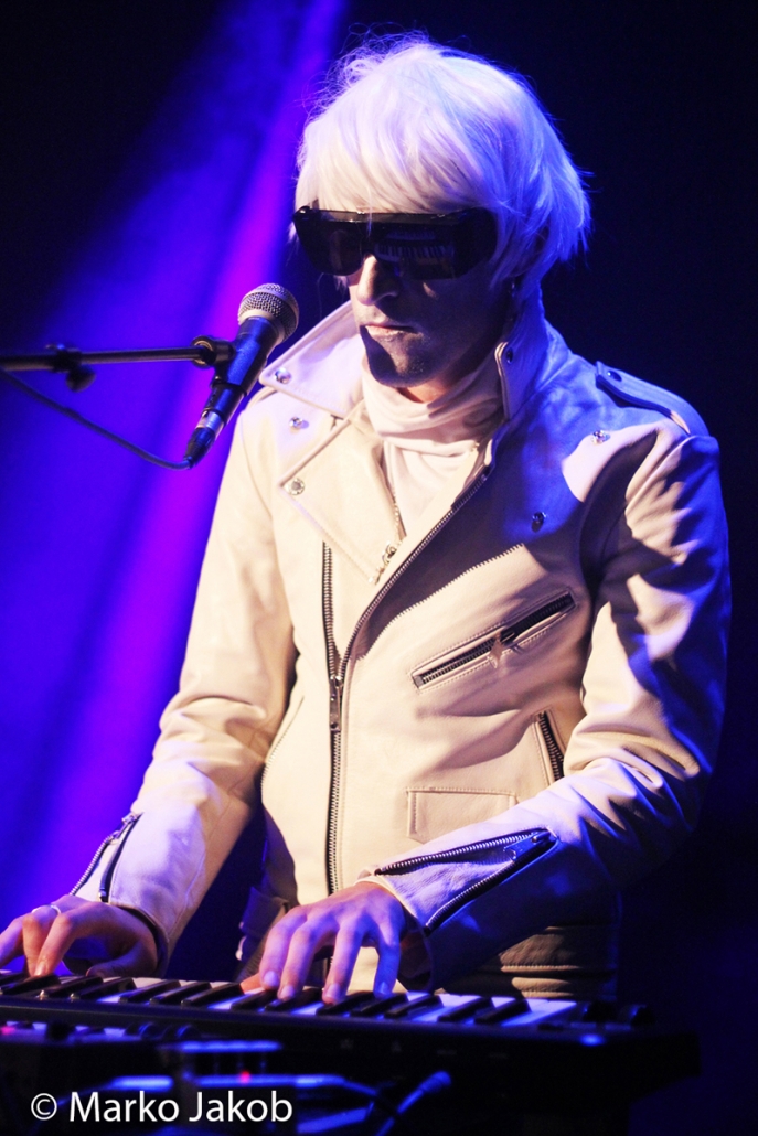 Genau um 22 Uhr war es, als sich die Bühne in Nebel tauchte. Kurz darauf wurden die beiden Musiker allmählich sichtbar. Bereits optisch zeigt sich, was das Publikum erwarten wird: Silbern geschminkt, mit weißen Lederjacken und mit hellen Perücken ausgestattet, wird das Outfit von überdimensionalen schwarzen Sonnenbrillen, die wie aus einem Science Fiction Film aussahen, komplettiert. Durch diese markante Optik sahen Deb DeMure (voc/Gitarre) und Mona D (back voc/Synth) von weitem fast wie Zwillinge aus dem nächsten Jahrtausend aus.