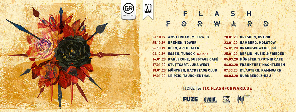 Die Band Flash Forward wurde 2010 gegründet. Zunächst als Pop-Punk Band gestartet, kann man sie heute eher dem Alternative Rock zuordnen. Die Band, die 2019 ihr fünftes Album ‚Golden Rust‘ veröffentlicht hat, ist inzwischen erwachsen geworden.