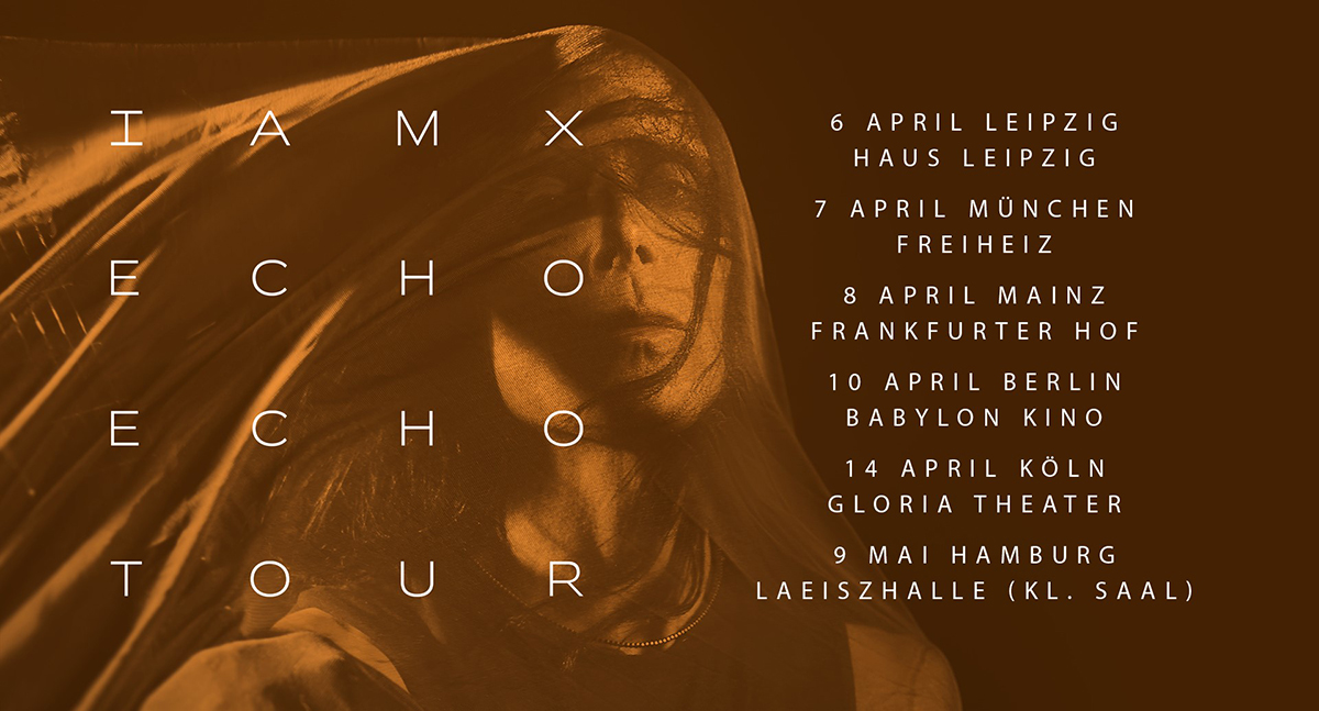 Sein neues Akustikalbum „Echo Echo“ wird am 13. März, einige Wochen vor seiner Deutschlandtour erscheinen. In Hamburg wird IAMX sein neues Album in der Laeiszhalle präsentieren. Weitere Shows in Deutschland finden in Berlin, Leipzig, Frankfurt, München und Köln statt.