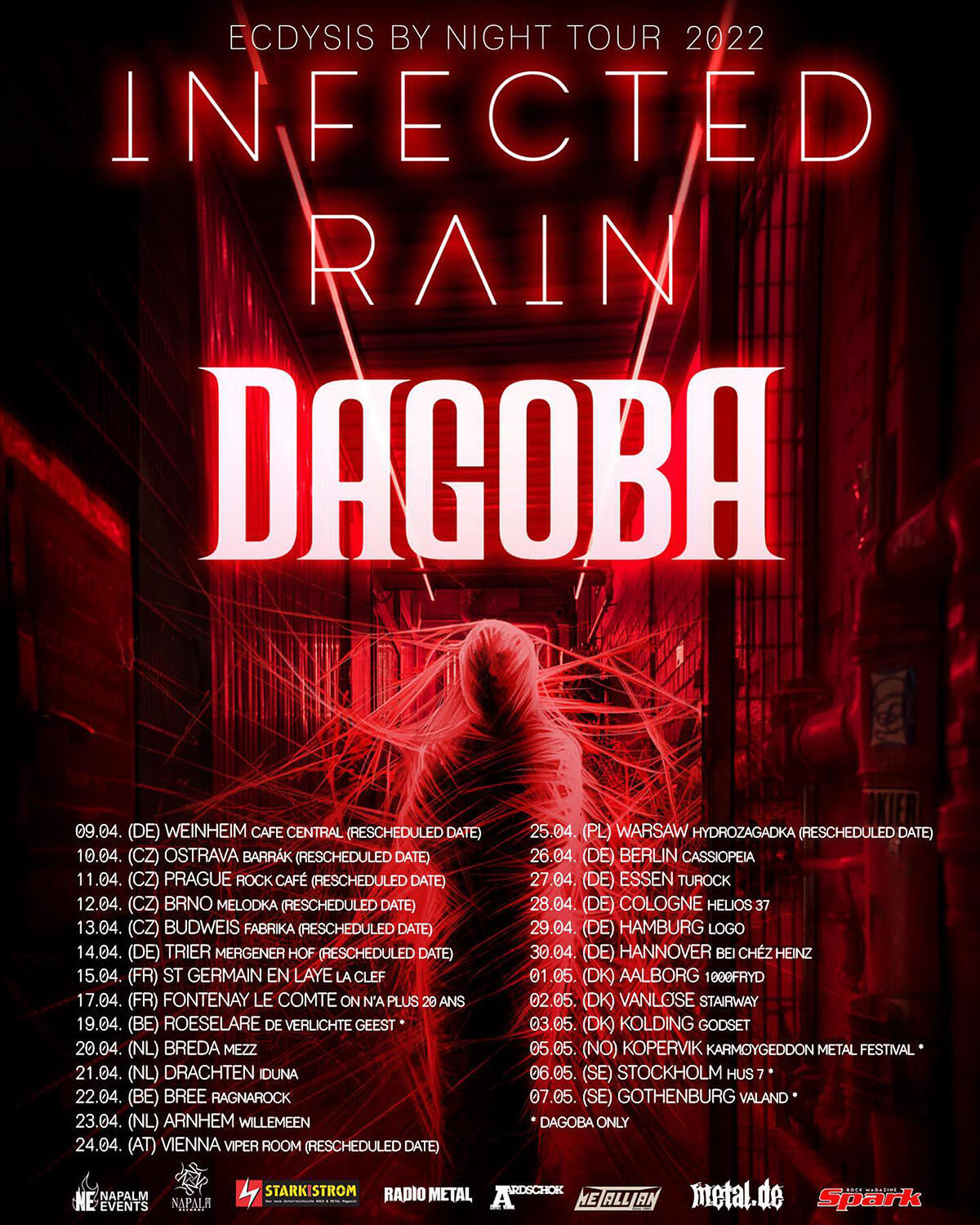 Die neu angesetzte Europatour beginnt nun am 08.04.2022 und dauert 4 Wochen. Während dieser Zeit werden Infected Rain 23 Konzerte spielen. Das Konzert in Wien findet am 24.4.2022 im Viper Room Vienna statt.