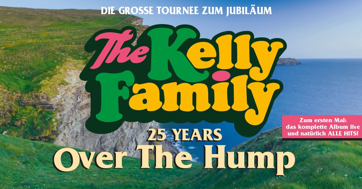 Der Winter 2019/2020 gehört der Kelly Family. Erstmals werden sie ihr Erfolgsalbum ‚Over The Hump‘ komplett live auf der Bühne performen! Das Album hat das Leben der Kultfamilie vor 25 Jahren komplett auf den Kopf gestellt und ihnen den großen Durchbruch beschert.