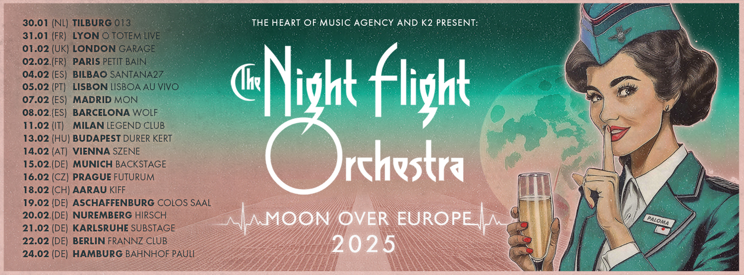 KONZERTVORSCHAU: THE NIGHTFLIGHT ORCHESTRA – live in der ((Szene)) Wien 14.02.2025 | MOON OVER EUROPE TOUR |