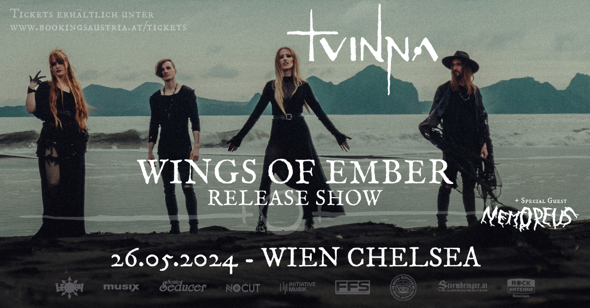 Am 23. Februar 2024 wird das zweite Tvinna Album „Two – Wings Of Ember“ erscheinen. Zu diesem Anlass wird es Ende Mai vier exklusive Release Shows geben – drei davon finden in Deutschland statt und die vierte Show gibt es am 26.05.2026 hier bei uns im Chelsea Wien – präsentiert von Bookingsaustria. Das Album kannst du übrigens im By Norse Store schon vorbestellen – es gibt unter anderem auch eine tolle Limited Edition auf Vinyl.