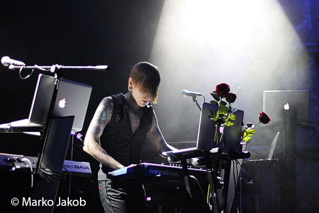 The first Friday in February in the Berlin Kesselhaus was marked by the electronic sounds of three bands – and all from German-speaking countries. Headlining this special evening was the Austrian cult band L’ÂME IMMORTELLE. Accompanying them on tour are DUNKELSUCHT from Switzerland and VERSUS from Germany. The audience was international too; there were excited fans from as far away as Chile and Finland who had booked vacations to Germany to coincide with concerts of this “Schattenwelt Tour”.