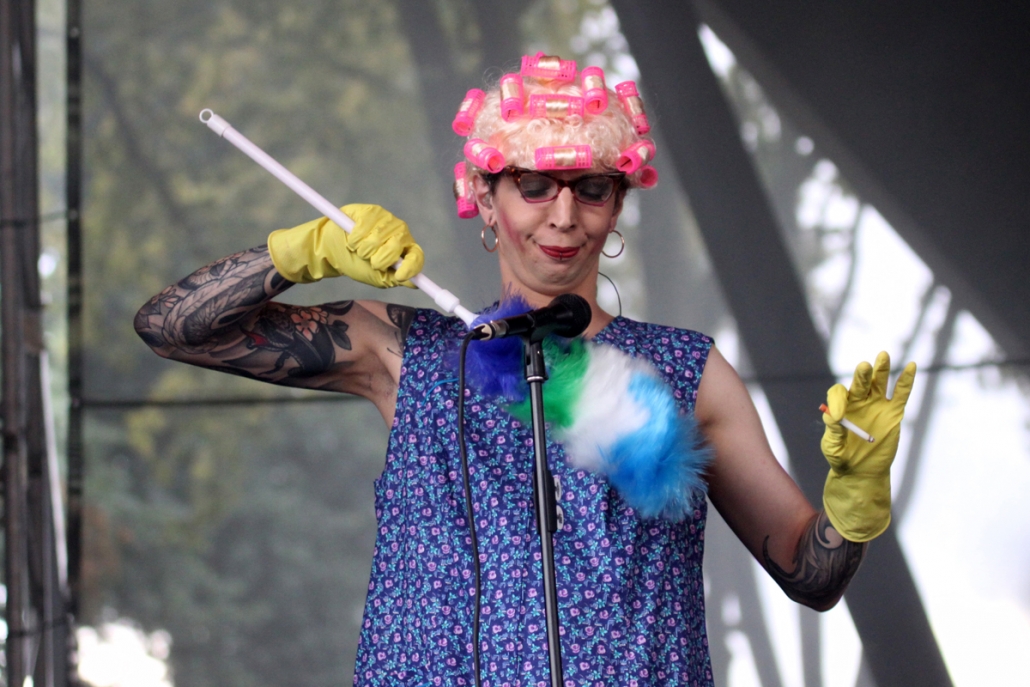 Die Band war bei dem Regen auf der Bühne auch geschützt und wurde nicht nass – und selbst wenn – da war ja noch Reinigungsfachkraft Gared, der für Ordnung und Sauberkeit hätte sorgen können.