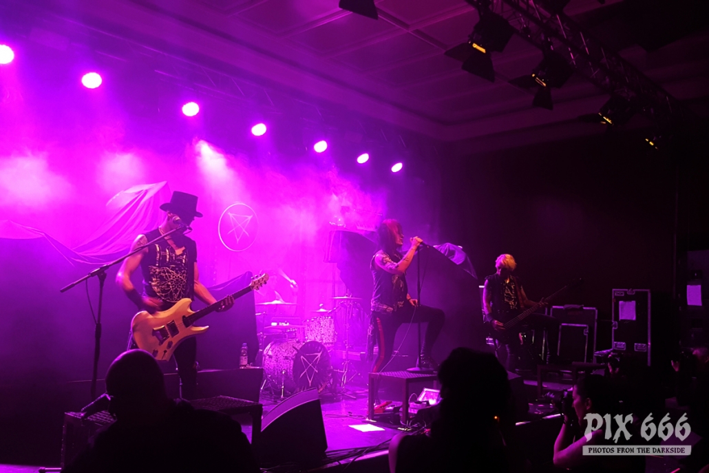 Hell Boulevard betraten 20 Uhr die Bühne und legten mit ‚As Above So Below‘ gleich los wie die Feuerwehr. Die Location in Erfurt war gut gefüllt, aber nicht ausverkauft – die Stimmung war trotzdem total gut.