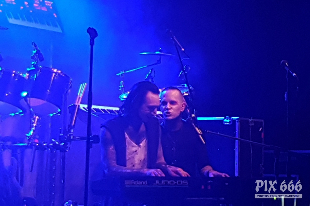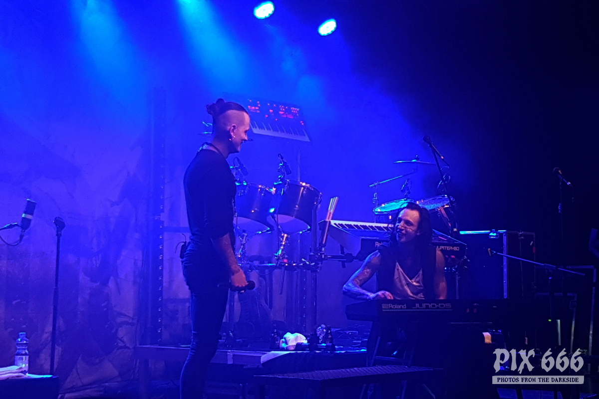 Eines der Highlights der Show war definitiv die Piano Version von ‚Sooner Or Later‘ / ‚Credo‘. Zuerst spielte Chris alleine und streifte dabei in Elton John Manier über das E-Piano. Etwa Minute später setze sich Gared mit dazu und Chris stellte fest, dass Gared riecht – und zwar gut. Bei ‚Credo‘ saß Gared dann alleine an den Tasten und Chris sang zusammen mit den Erfurtern „We give our hearts to the Lord Of The Lost“.