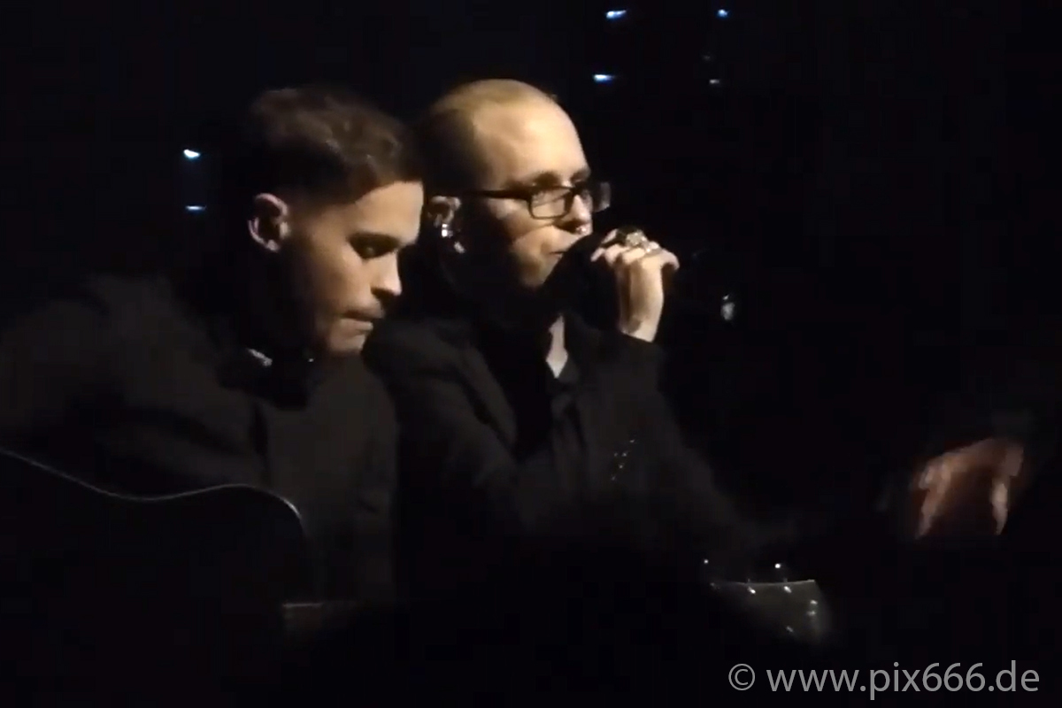 Nach der Pause betrat Chris Harms die Bühne mit einer anderen Brille – es gab wohl in der Pause ein ‚Beratungsgespräch‘ mit seiner Ehefrau. Da man Chris‘ Augen durch die dunkelrosa gefärbten Gläser kaum sehen konnte, gab es nun im zweiten Teil der Show komplett durchsichtiges transparente Gläser.