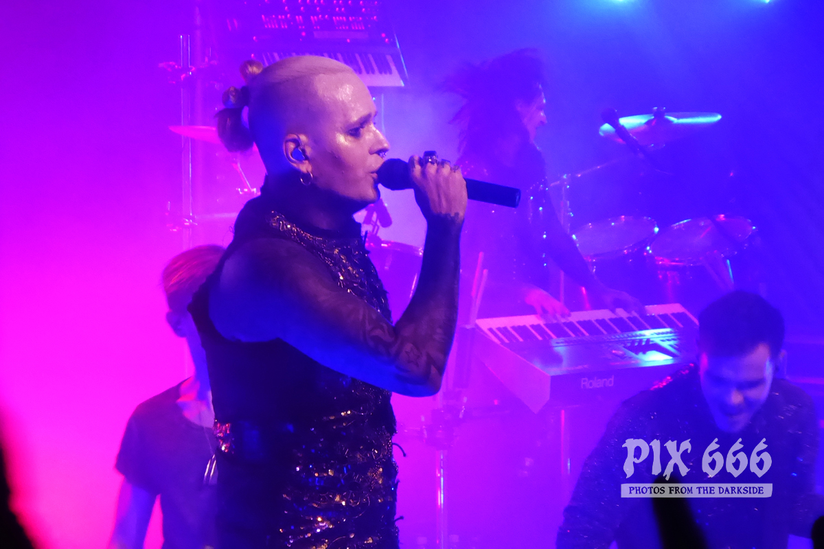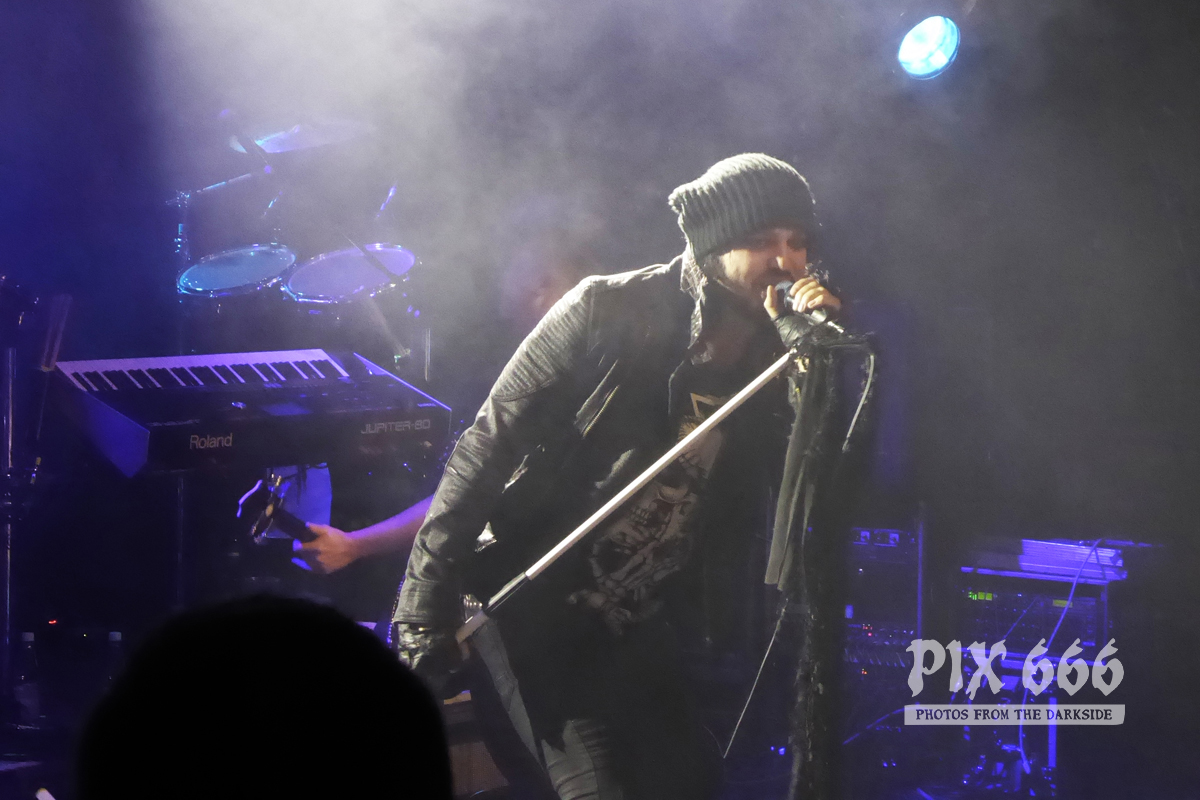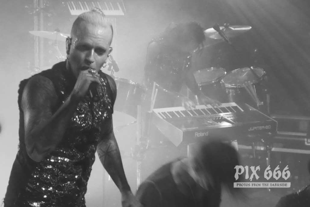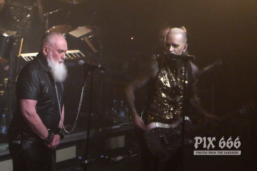 Besonders cool war dann im Anschluss der Auftritt von Dero Goi von der Band Oomph! Zwei Songs sangen die beiden Herren zusammen, wobei das Lied ‚Europa‘, dass Chris auch auf dem Oomph! Album ‚Ritual‘ zusammen mit Dero singt, einer der absoluten Kracher des Abends war.