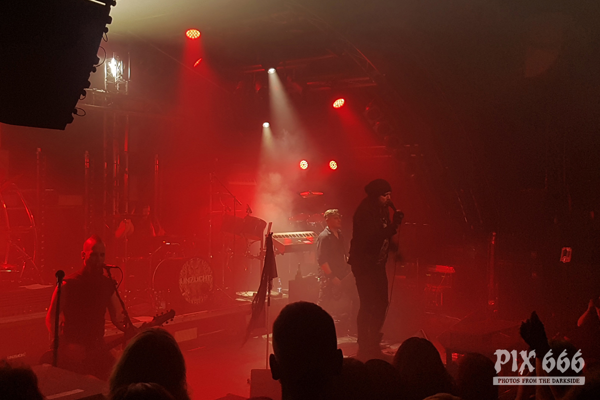 Unzucht begannen überpünktlich, um kurz vor 19 Uhr ihren Auftritt. Die Markthalle war gleich zu Beginn komplett voll und so entwickelte sich ein stimmungsvoller Auftritt der sympathischen Band.