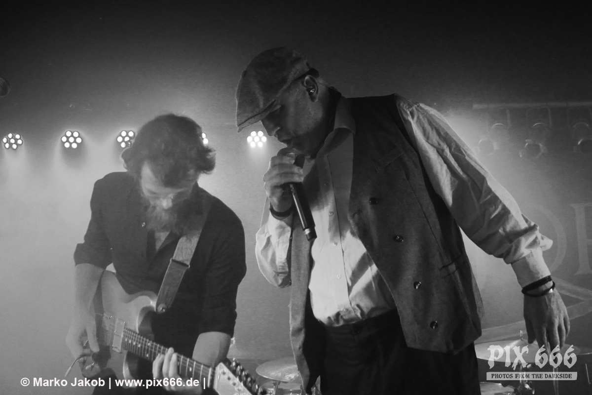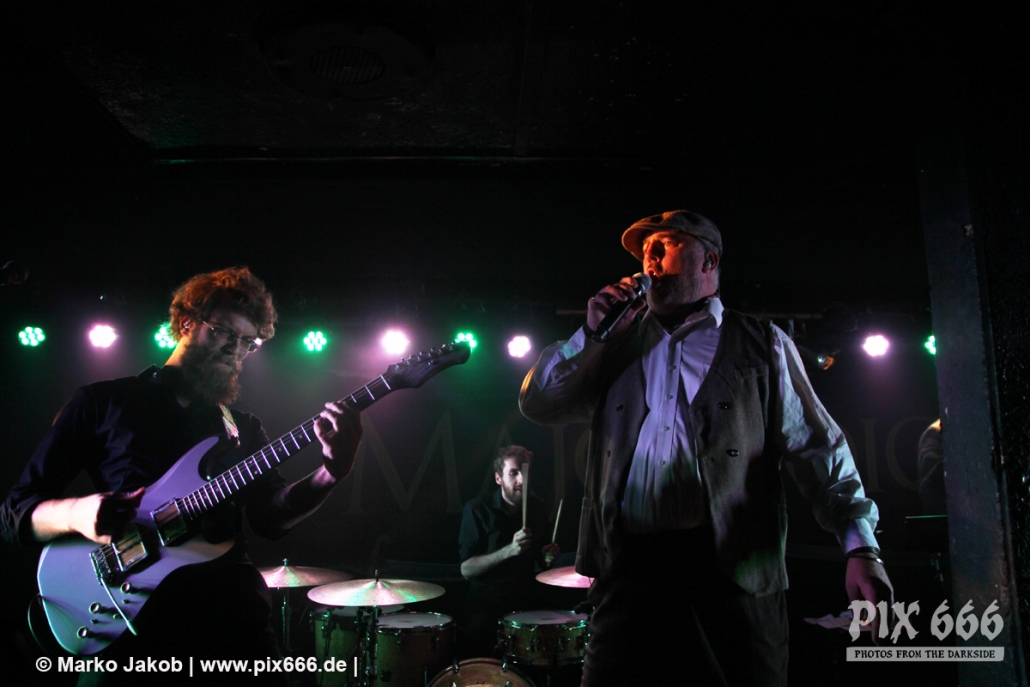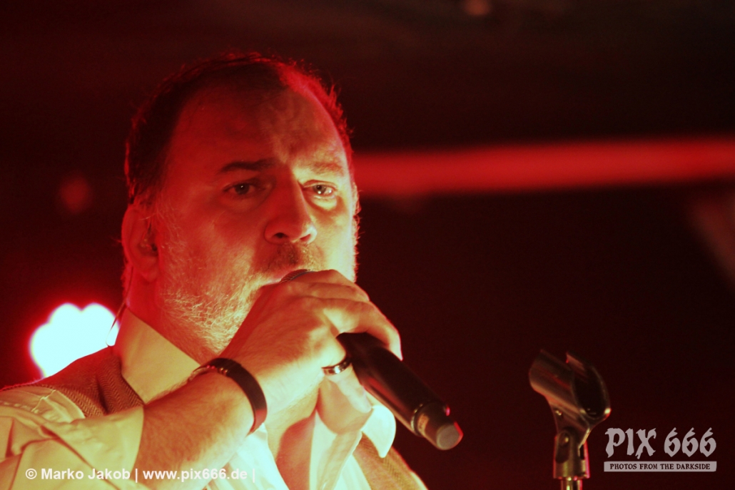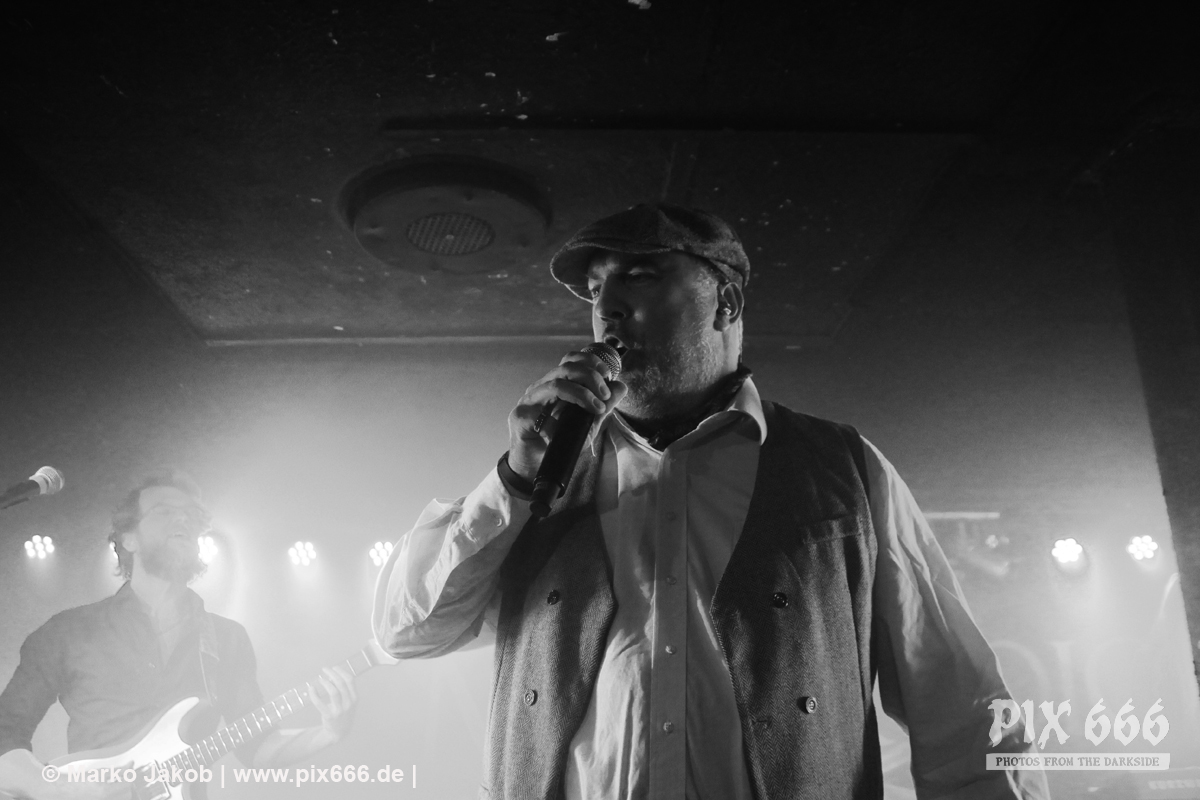 Nach einem kurzen Umbau auf der Bühne ging es pünktlich 21.00 Uhr los. Das Konzert begann mit ‚Butterflies In Dawn‘ vom brandneuen Album ‚This Lonely Ark‘. … und es funktionierte wirklich perfekt, die großartige, tiefe Opernstimme im Zusammenspiel mit Rockinstrumenten. Major Voice hatte sich hinter dem berühmten Pfeiler seine Flasche Bier hingestellt, aber nach nur wenigen Songs hatte er das gute Bier verschüttet und musste erstmal den nassen Fleck wegwischen. Später hatte die Nebelmaschine einen Defekt und die Männer spielten fast 3 Songs lang für die Fans fast unsichtbar – so zum Beispiel auch beim Chris Isaak Cover ‚Wicked Game‘. Rechtzeitig für das Duett mit Celine Hakelberg verzog sich der Nebel wieder etwas. Danach hatte Celine sogar die Chance, dem Publikum ihren eigenen Song ‚Looking For A Lighthouse‘ zu präsentieren. Major Voice sagte: „bevor ich jetzt hier vier Minuten blöd rumstehe, gehe ich mal kurz hinter die Bühne“. Und so hatte Celine die Aufmerksamkeit ganz für sich alleine – und ihr Auftritt wurde mit viel Beifall belohnt.
