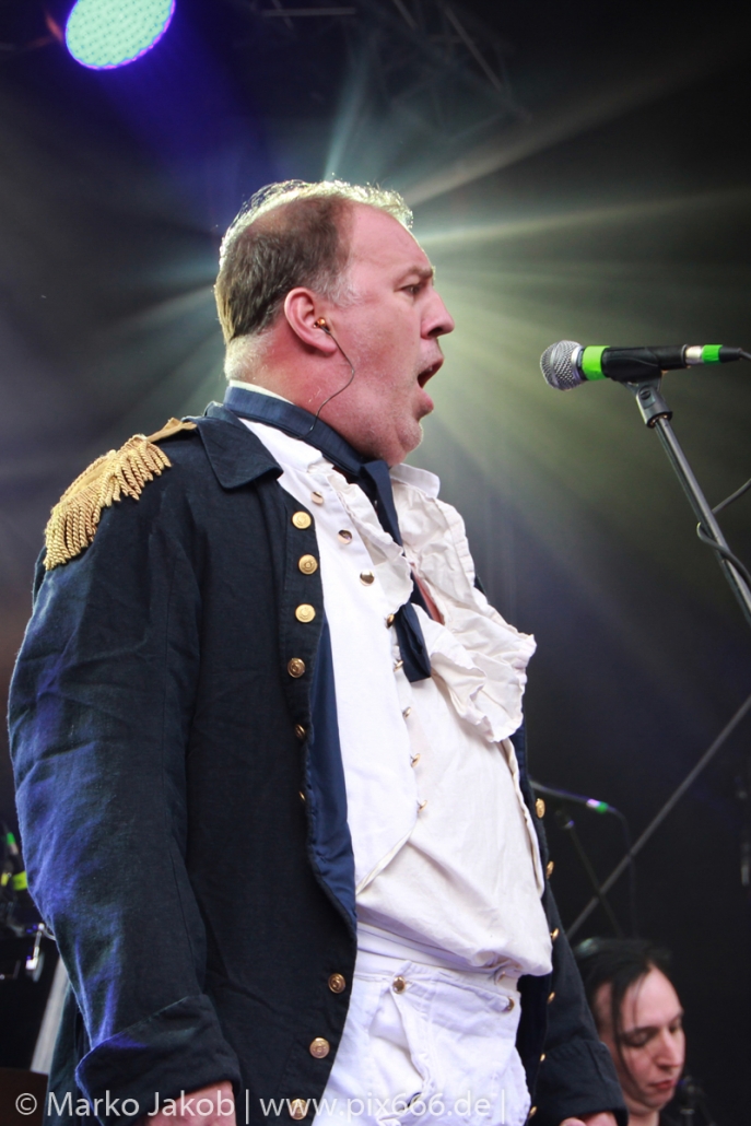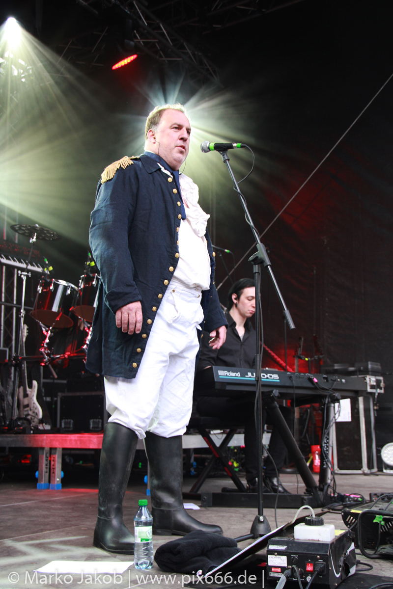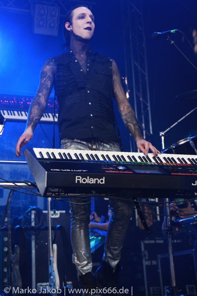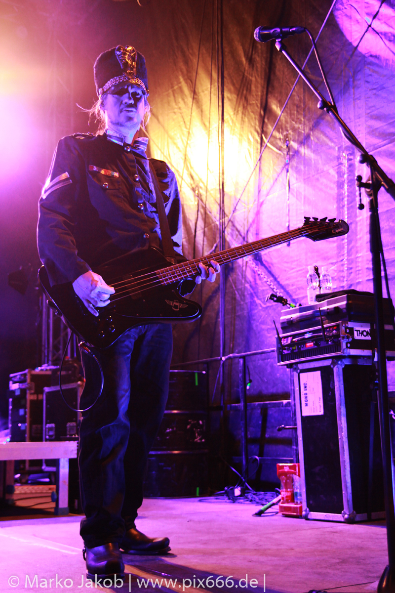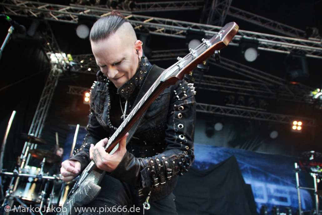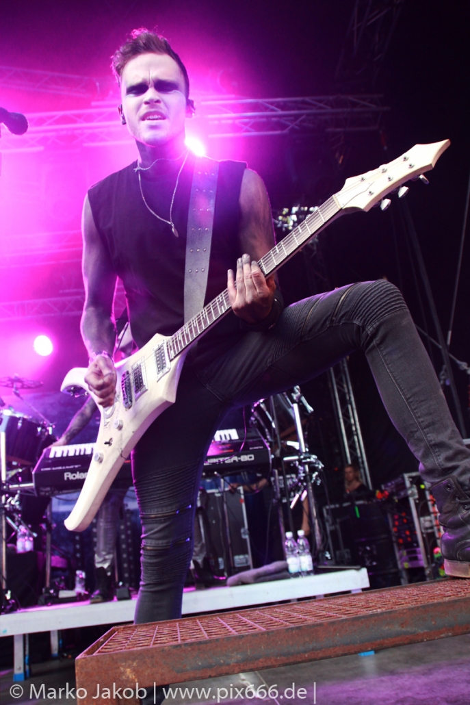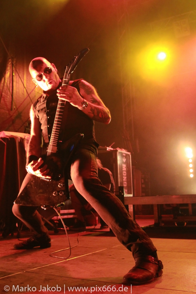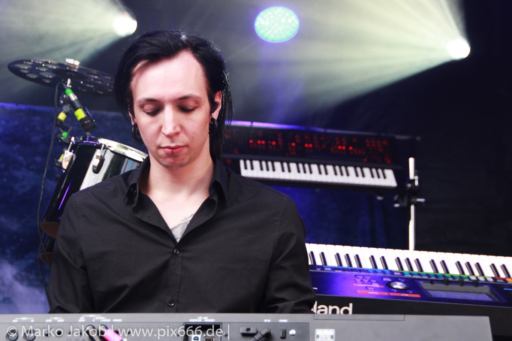 Lord Of The Lost sprühten an diesem Abend nur so vor Spielfreude. Die Jungs legten mit ‚Drag Me To Hell‘ und ‚Miss Machine‘ los wie die Feuerwehr und die Stimmung übertrug sich von Beginn an auf die Fans. Selbst der neue Song ‚Morgana‘ wurde schon von vielen Fans mitgesungen. Bei den Songs ‚Prison‘ und ‚Blood For Blood‘ taten das dann fast alle. Wow – was für eine tolle Konzert Atmosphäre. Open Air, aber doch intim. Etwa 1000 Besucher passen auf das Gelände zwischen den Mauern der Festung.