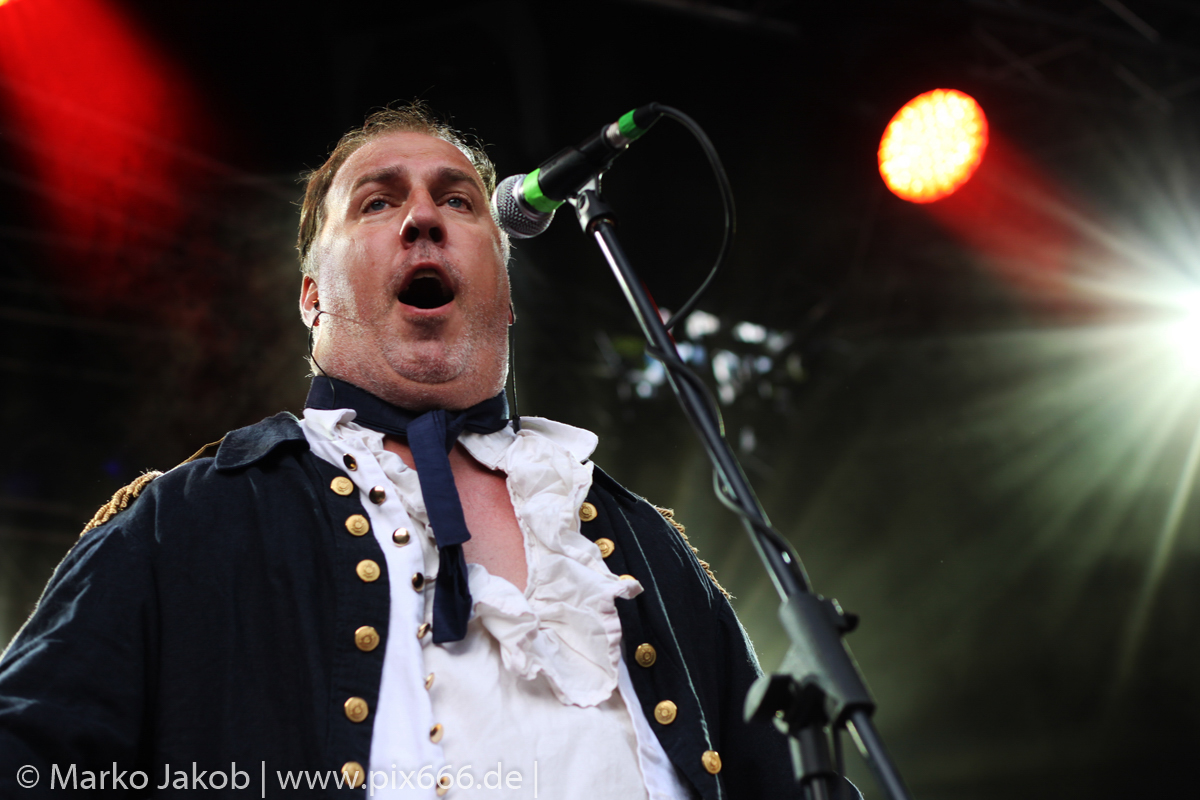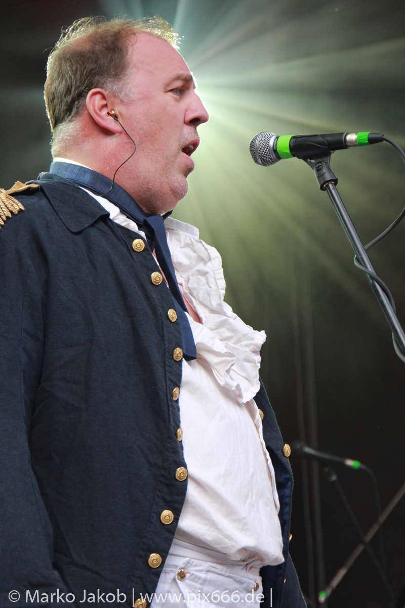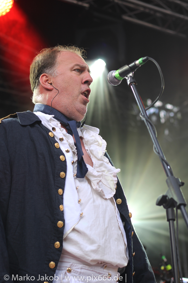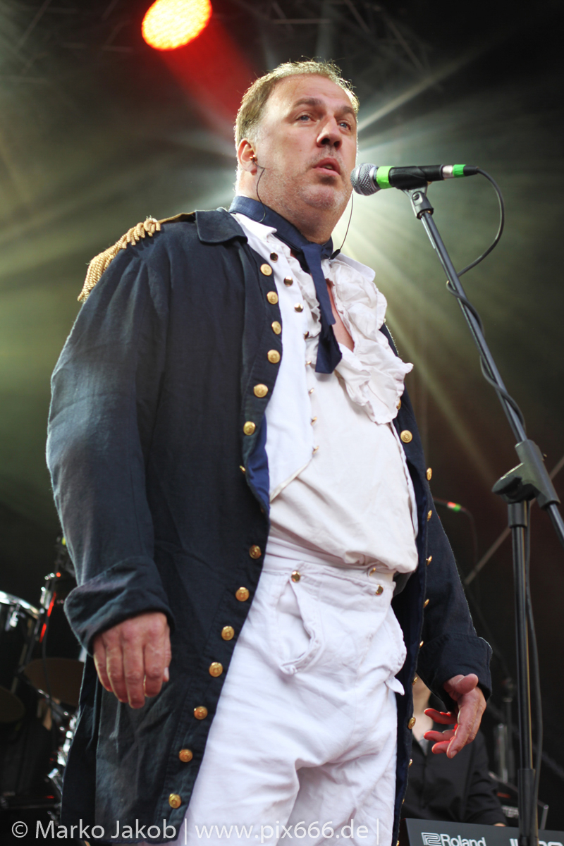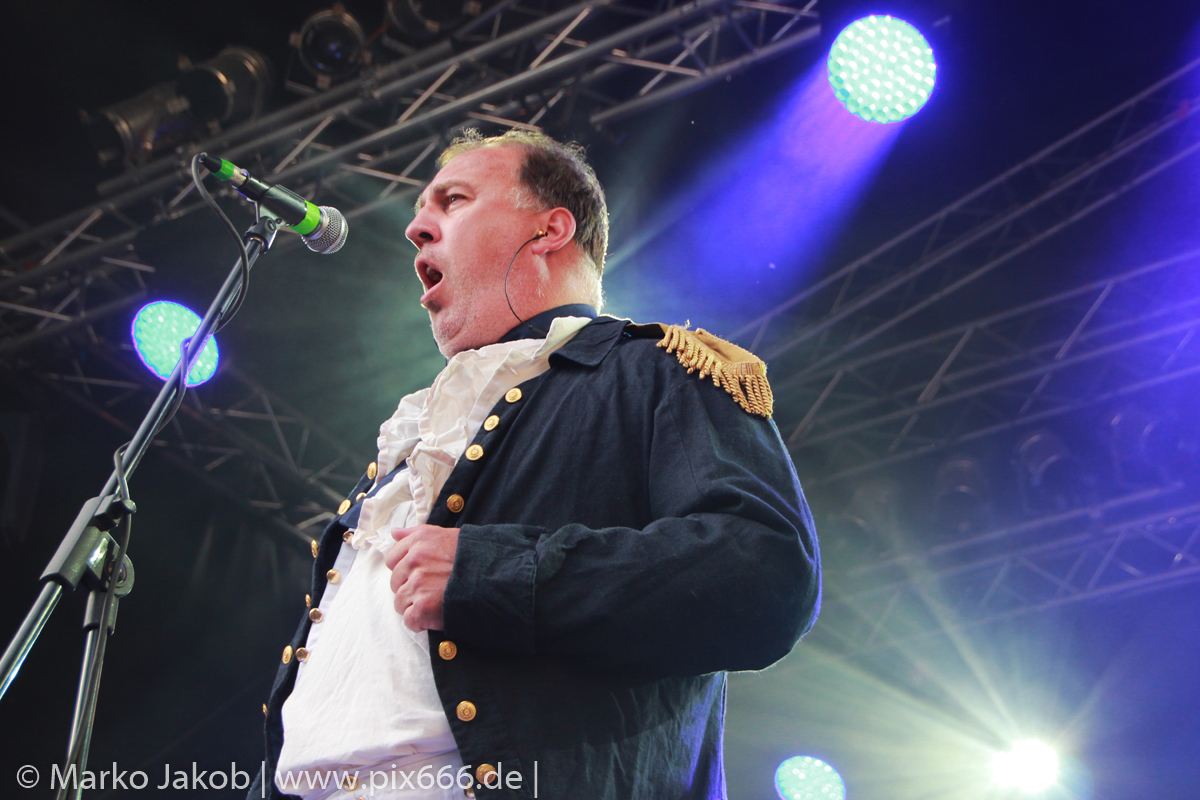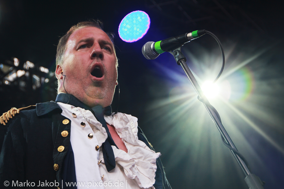 Lord Of The Lost sprühten an diesem Abend nur so vor Spielfreude. Die Jungs legten mit ‚Drag Me To Hell‘ und ‚Miss Machine‘ los wie die Feuerwehr und die Stimmung übertrug sich von Beginn an auf die Fans. Selbst der neue Song ‚Morgana‘ wurde schon von vielen Fans mitgesungen. Bei den Songs ‚Prison‘ und ‚Blood For Blood‘ taten das dann fast alle. Wow – was für eine tolle Konzert Atmosphäre. Open Air, aber doch intim. Etwa 1000 Besucher passen auf das Gelände zwischen den Mauern der Festung.