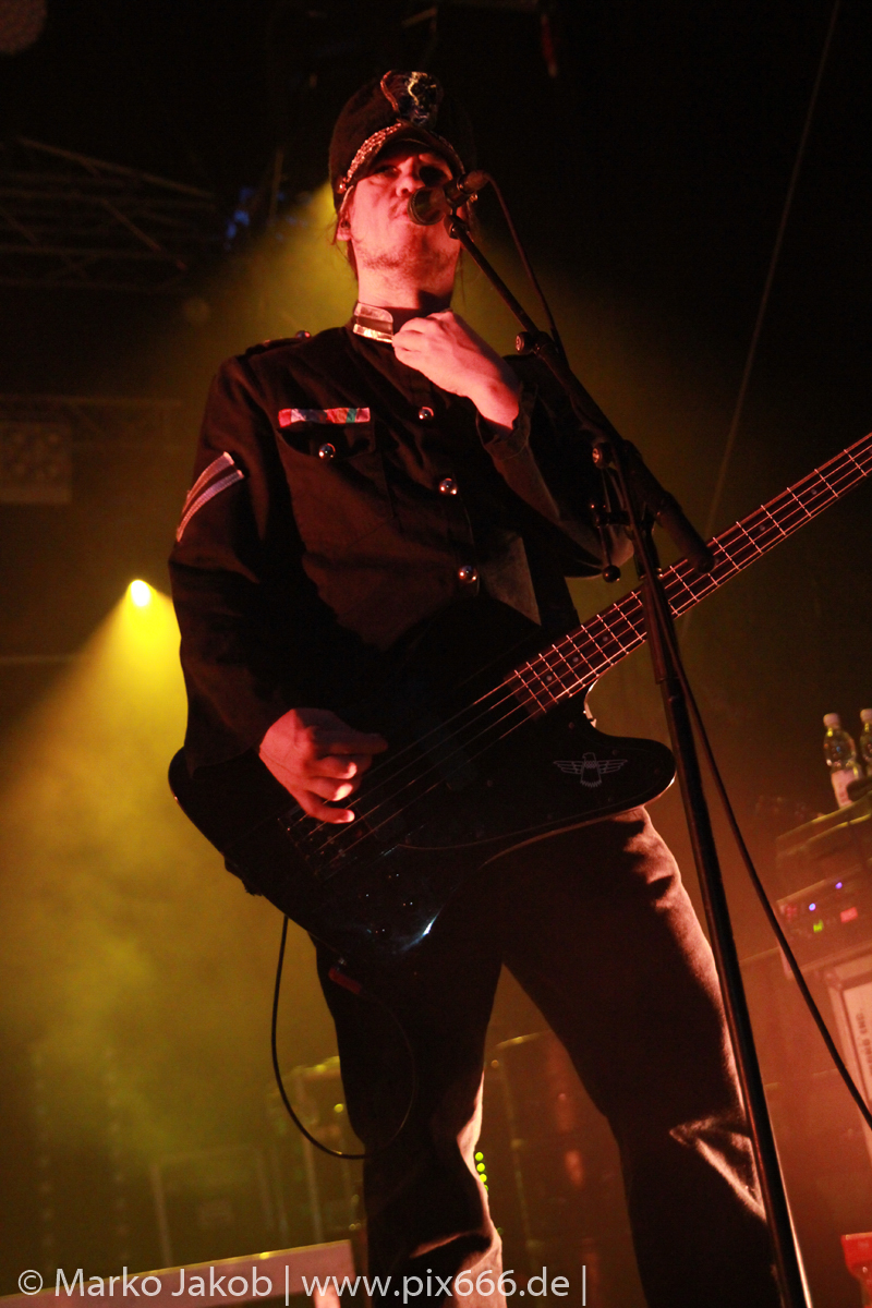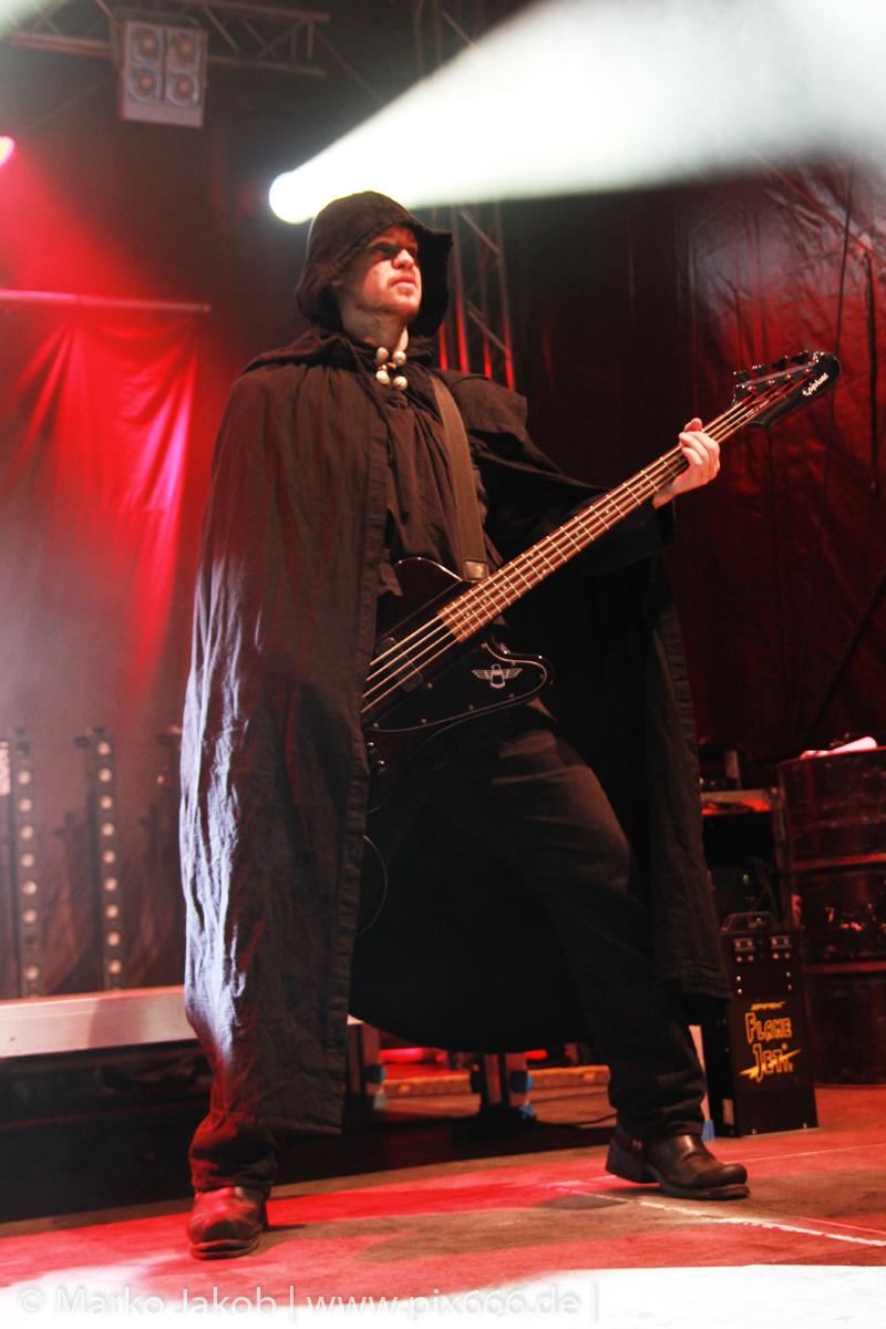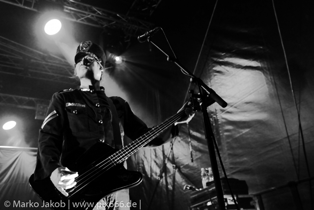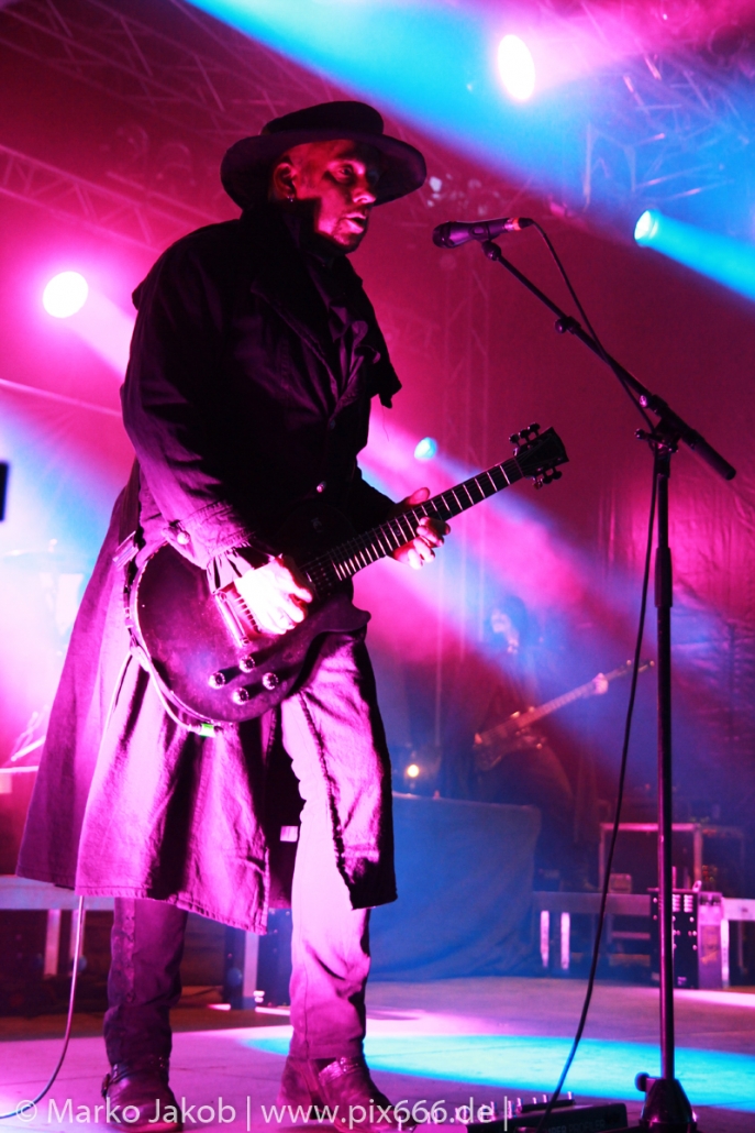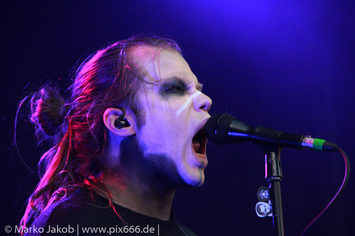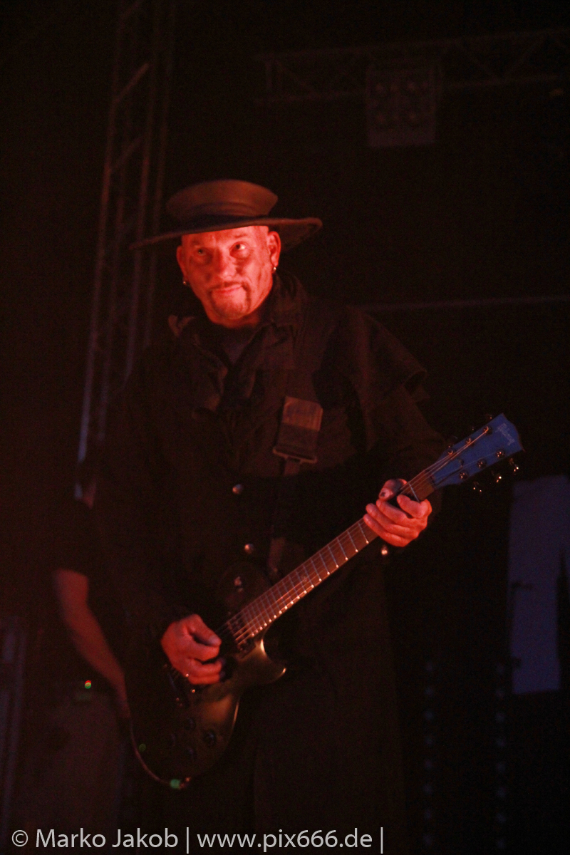 Als letzte Band des Festivalabends betrat der Headliner Mono Inc. gegen 21.30 Uhr die Bühne. Mono Inc. wurden im Jahr 2000 gegründet und sind seit vielen Jahren Stammgast auf den großen Gothic Festivals des Landes. Die Hamburger stehen kurz vor der Veröffentlich ihres 10. Studioalbums. Es trägt den Titel ‚Welcome To Hell‘. Auf dem Album ist Sänger Martin mit einer Pestmaske und einem Pesthut zu sehen. Das ist auch das Thema des Konzeptalbums – der letzte Pestausbruch in Hamburg vor etwa 300 Jahren.