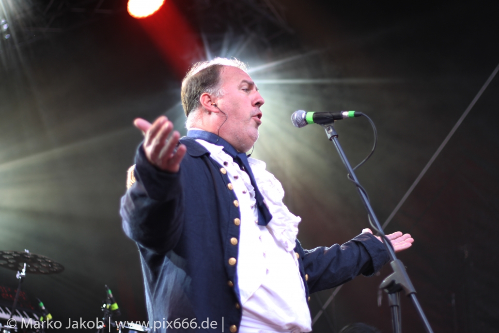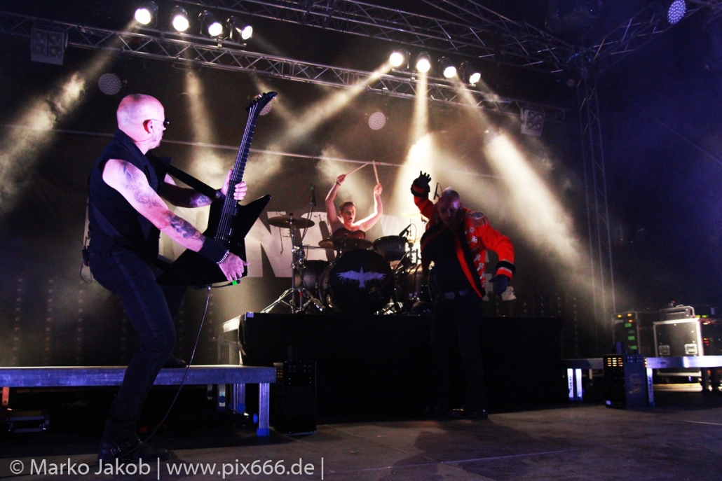 Nun setzte langsam die Dunkelheit über der Festung ein. Beim Song ‚Arabia‘ stiegen immer wieder Feuersäulen auf, die kamen natürlich in der Dämmerung richtig gut zur Wirkung.