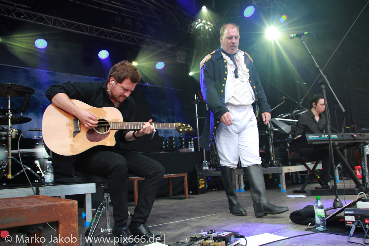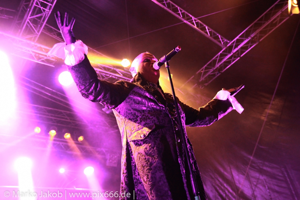 Alle, die es rechtzeitig geschafft hatten, erlebten eine grandiose Show in einer perfekten Location. Ronald Zeidler alias Major Voice wurde bei seinem Auftritt von Tim Steiner an der Gitarre und Gared Dirge von Lord Of The Lost am Piano begleitet. Mit seiner außergewöhnlich tollen Opernstimme hatte er von Beginn an die volle Aufmerksamkeit aller Anwesenden. Major Voice präsentierte Songs von seinem Debutalbum ‚A New Chapter‘, welches im November 2017 erschienen ist. Darunter waren unter anderem absolut gelungene Coverversionen der bekannten 80er Jahre Hits ‚Wicked Game‘ und ‚Wonderful Life‘.