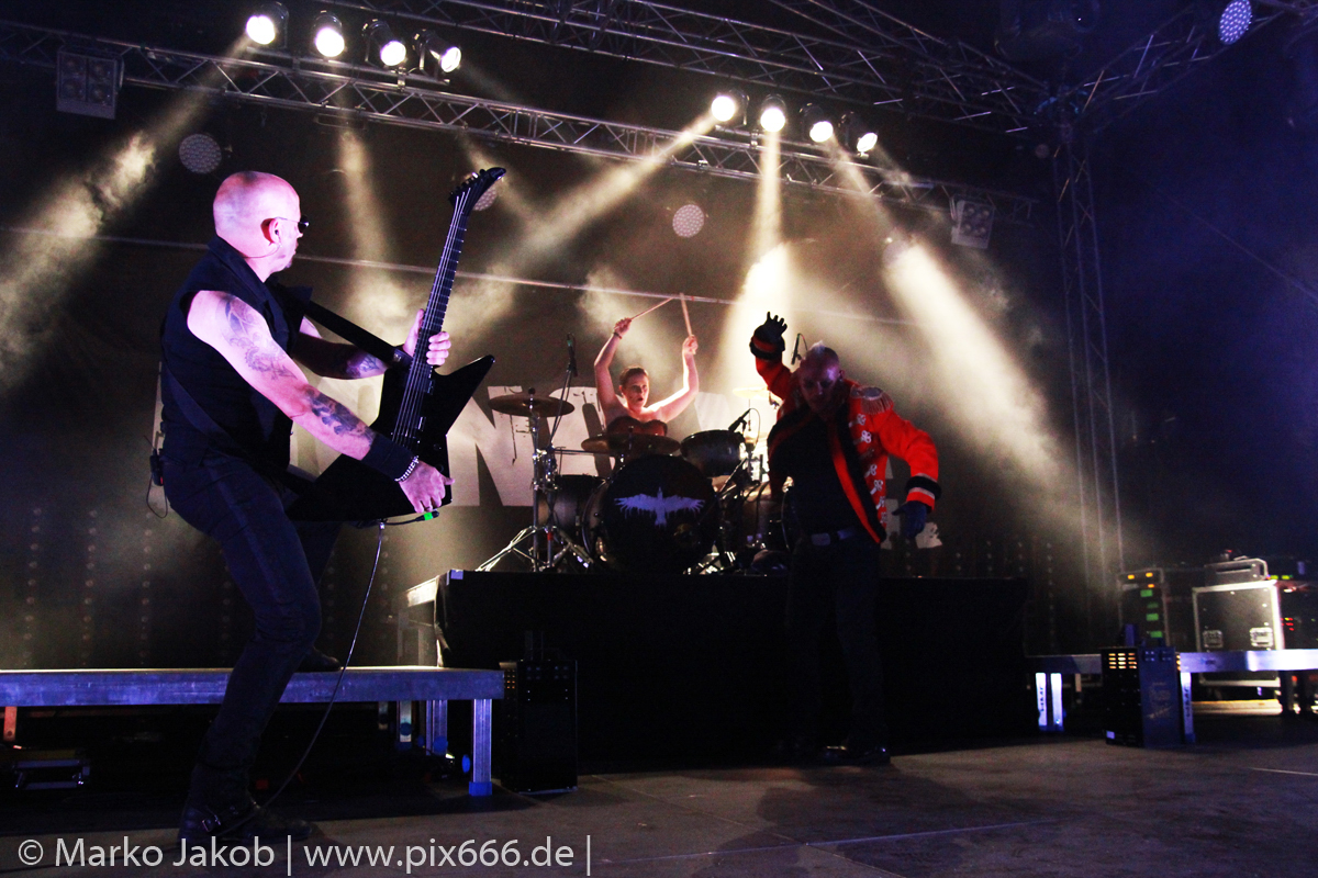 Zu Beginn des Konzertes kam die Band mit den neuen, coolen Outfits auf die Bühne, die sie auch im aktuellen Videoclip tragen. Sie eröffneten das Set unter großem Jubel mit dem Titel ‚Voices Of Doom‘. Die Band hatte vor dem Konzert einige Zeit überlegt, ob sie tatsächlich schon einen neuen Song spielen sollten, bevor das Album erscheint. Sie haben sich dafür entschieden, aber Martin hat die Fans gebeten, ausnahmsweise mal nicht zu filmen. So folgte als nächstes die gleichnamige Single des neuen Albums. Musikalisch knüpft diese an die zahlreichen erfolgreichen Singles der Vergangenheit nahtlos an.